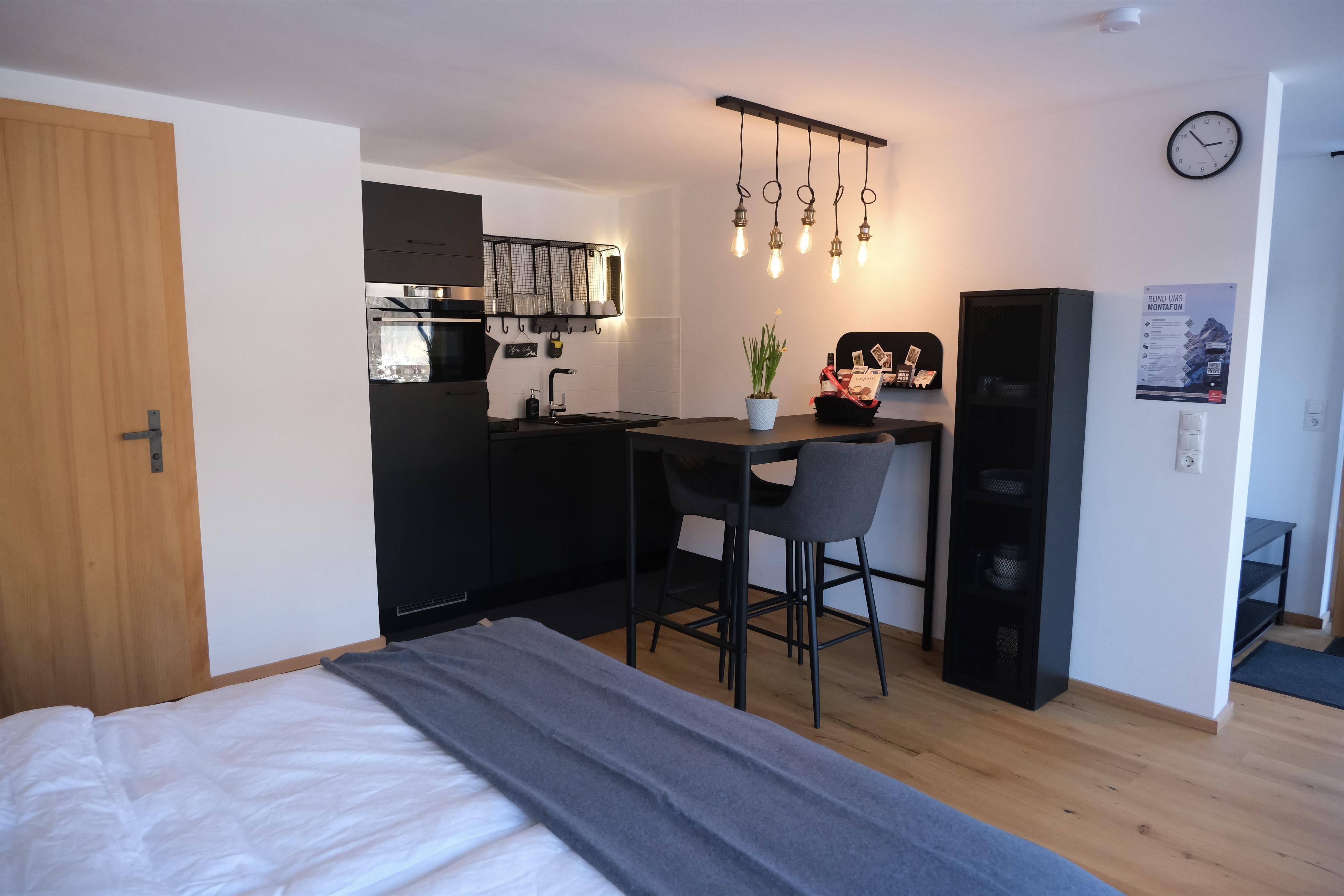Modernes 30m² Neubau-Apartment, mit Panoramablick direkt vom Bett aus. Ausstattung: Vollküche (Induktion, Backofen, Spülmaschine, Gefrierfach), eigenes Bad mit Dusche & Waschmaschine. Highlight: Eigene sonnige Panoramaterrasse für Frühstück und Entspannung. Bewusst TV-frei für echte Erholung (Digital Detox), WLAN vorhanden. Ausgeführt als eigenständige Wohneinheit.