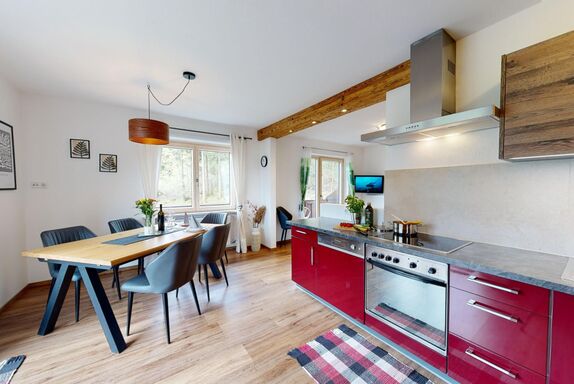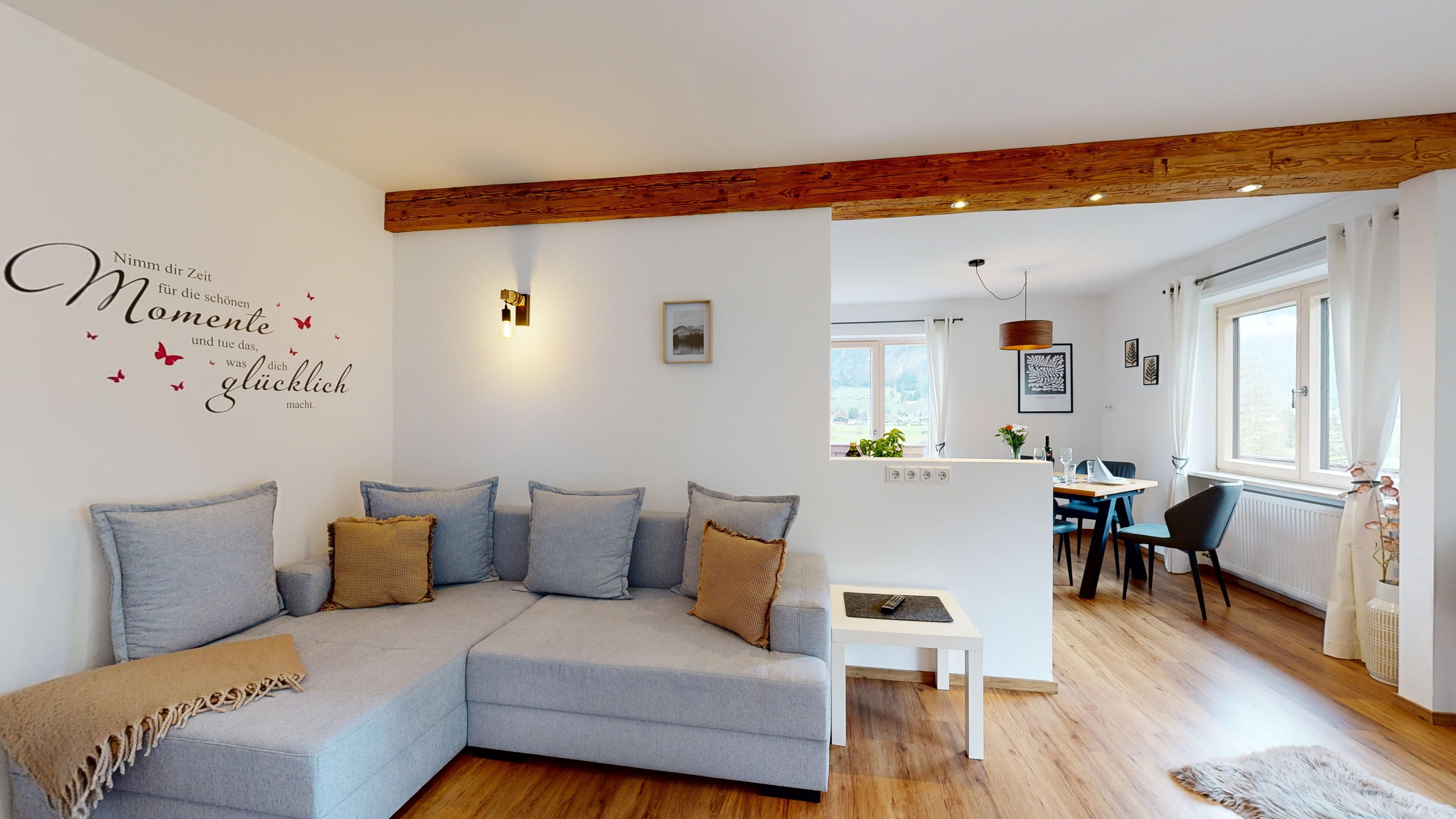 Die Ferienwohnung Saalachtal bietet Euch auf ca. 65m² Platz zum Erholen und Relaxen. Von der Küche und vom Wohnzimmer aus habt Ihr direkten Blick auf die Reiter und Loferer Steinberge (Reifhorn) - Ihr könnt in vollen Zügen die unmittelbare Natur genießen.