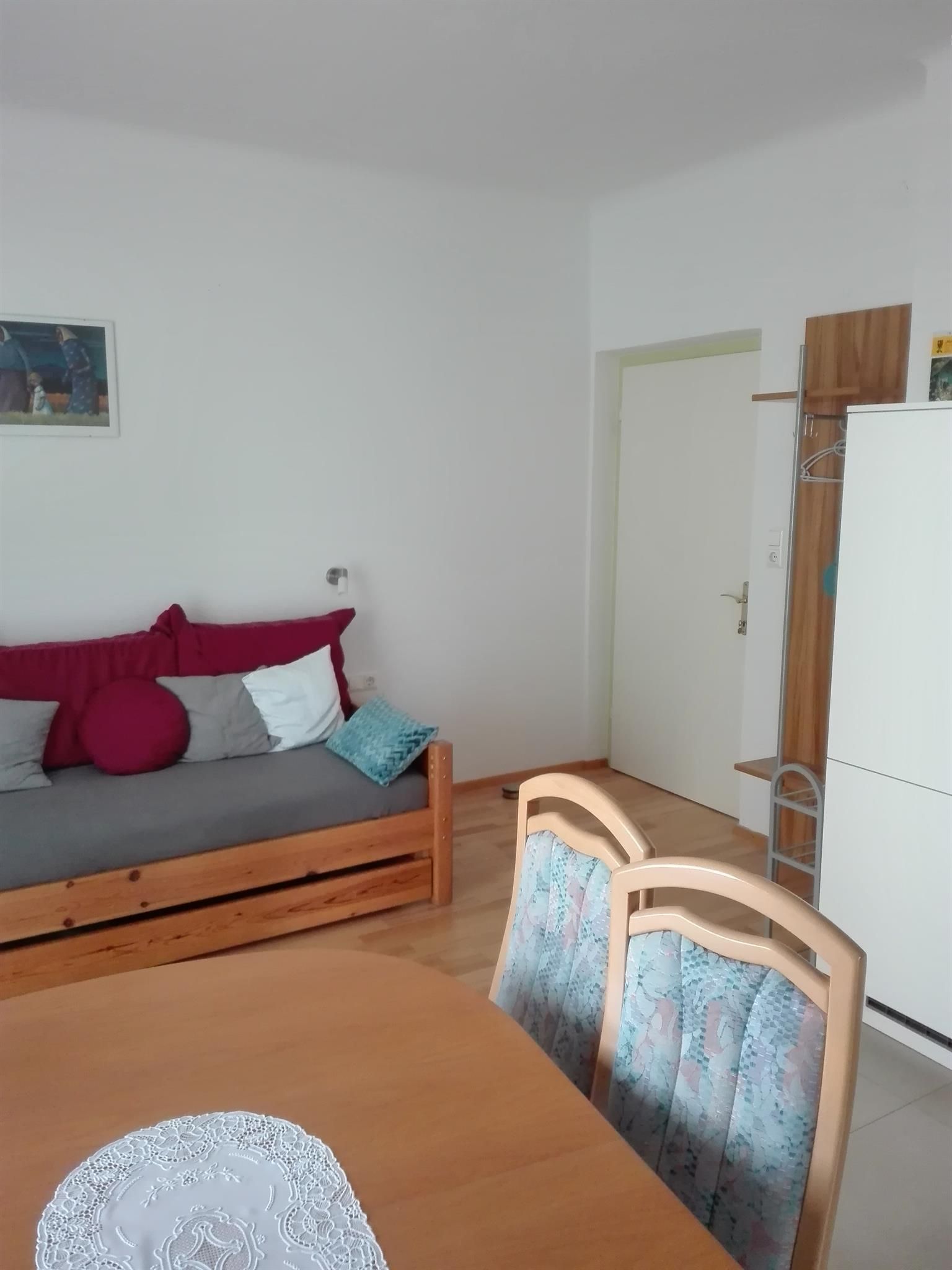 Bei der Buchung der Ferienwohnung Klein steht Ihnen die Wohnung mit einer Wohnküche und einem Doppelbettzimmer zur Verfügung.