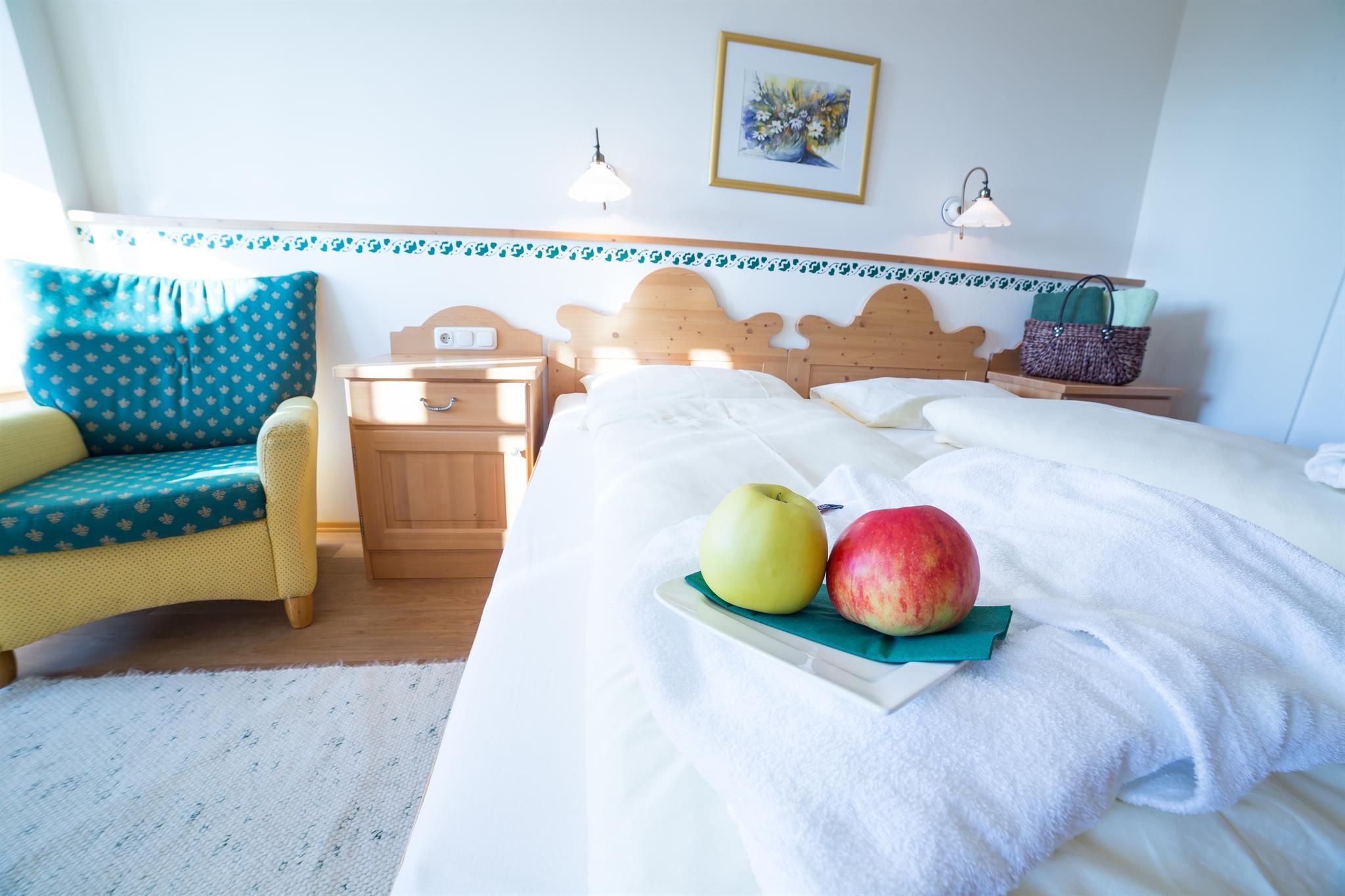 Alle Zimmer sind mit Vollholzmöbeln aus der heimischen Fichte ausgestattet. Außerdem findet man zusätzlich viel Liebe im Detail: traditionelle Dekorationen, Almenland-Kräuter-Duftsackerl und Almenland-Duschbäder, hochwertige Textilien, energetisch beste Bettenstandorte und vieles mehr!