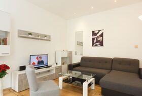 Ferienwohnung, zentral gelegen, befindet sich im 2. Stock (hofseitig) eines Mehrparteienhauses im 15ten Wiener Gemeinde-Bezirk. Diese Wohnung liegt im zweiten Stockwerk und bietet auf 45 m² Platz für zwei Personen. Die mit einem Laminatboden ausgelegte Wohnung ist aufgeteilt in einen Eingangsbereich, ein Badezimmer mit Toilette, einer Wohnküche und einem Schlafzimmer. Der Wohnraum bietet eine Couch, Couchtisch, einen Wohnzimmerschrank sowie einen Essbereich mit Tisch und zwei Stühlen. Die Küche besteht aus einem Herd, Kapsel Kaffeemaschine, Mikrowelle, Kühlschrank, Spüle und Wasserkocher. Im Badezimmer haben Sie eine Dusche, ein WC und ein Waschbecken zu Ihrer Verfügung, Das Schlafzimmer besteht aus einem Boxspringbett mit Nachttisch und einen geräumigen Kleiderschrank. Achtung, Wien befindet sich in einer Kurzparkzone!Während der zeitlich definierten Dauer sind Parkgebühren durch Auslegen von Parktickets zu entrichten. Außerhalb der zeitlich begrenzten Kurzparkzone, wie an Wochenenden (Samstag und Sonntag) und Feiertagen kann man kostenfrei direkt an der Straße vor der Haustüre parken. In der Nähe befindet sich auch Park&Ride Anlagen, die für längere Abstelldauer genutzt werden können. Naheliegend und günstig ist das Parkhaus U4-Center - Wien | APCOA. Anreise ab 14:00 Abreise bis spätestens 11:00 Unser Check in/out ist mittels Code-Schloss, kontaktlos und total unkompliziert.Unser Check in/out ist mittels persönlichen Code kontaktlos und total unkompliziert. Dieser ermöglicht den Zugang zum Gebäude und Ihrem Apartment. Der Code kann nach Aktivieren des Touchfeldes (berühren des schwarzen Feldes im Bereich des Kartensymbols) eingegeben werden. Alles notwendige, wie Supermärkte, Apotheke und öffentliche Verkehrsmittel befinden sich in unmittelbarer Nähe.In ca. 10 Minuten zu Fuß erreicht man das Schloss Schönbrunn mit Tierpark. Die Metro U4/U6 Station Längenfeldgasse liegt ca. 5 und die Westbahn City mit mehreren Zugverbindungen liegt ca. 10 Gehminuten entfernt. Metro U3/U6, sowie diverse Straßenbahnlinien sind in unmittelbarer Nähe.Waschsalon: Wash & Dry Waschsalon BetriebsgmbH Basisinformationen - Erlaubte Haustiere: keins - befindet sich in: Wohnsiedlung - Art d. Wohnung: Einliegerwohnung - Art d. Gebäudes: Mehrparteienhaus - Etage, auf der sich das Objekt befindet: OG2 - Gesamtanzahl d. Stockwerke im Gebäude über EG: 2 - Baujahr: 1900 - letzte umfassende Renovierung: 2015 - Nichtraucherunterkunft - Schlafzimmeranzahl: 1 - Badezimmeranzahl: 1 Top Merkmale - WLAN - Heizung: überall - Garten: zur gemeinschaftlichen Nutzung Schlafen Schlafzimmer 1 - Doppelbett (1,80m Breite) Badezimmer Badezimmer 1 - Dusche - Waschbecken - Toilette Kochen/Wohnen - Kaffeemaschine: Kapsel-Kaffeemaschine - Kühl-/Gefrierschrank: Kühlschrank - Herd: Zwei-Platten-Herd - Toaster - Mikrowelle - Wasserkocher - Spülmaschine - Anzahl Esstische: 1 - Gesamtzahl Sitzplätze: 2 - Anzahl Wohnzimmer: 1 Entertainment - Fernseher: Antenne/DVBT-TV Hauswirtschaft - Bügeleisen Außenbereich - Grillen nicht zulässig Umgebung - nächstgelegene Ortsmitte: 4,3 km - Lebensmittelhandel: 100 m - Bars/Clubs/Ausgehen: 500 m - Cafés/Restaurants: 100 m - Bahnhof: 1,3 km - Flughafen: 18,0 km - Autobahn: 5,0 km - nächste Haltestelle ÖPNV: 70 m