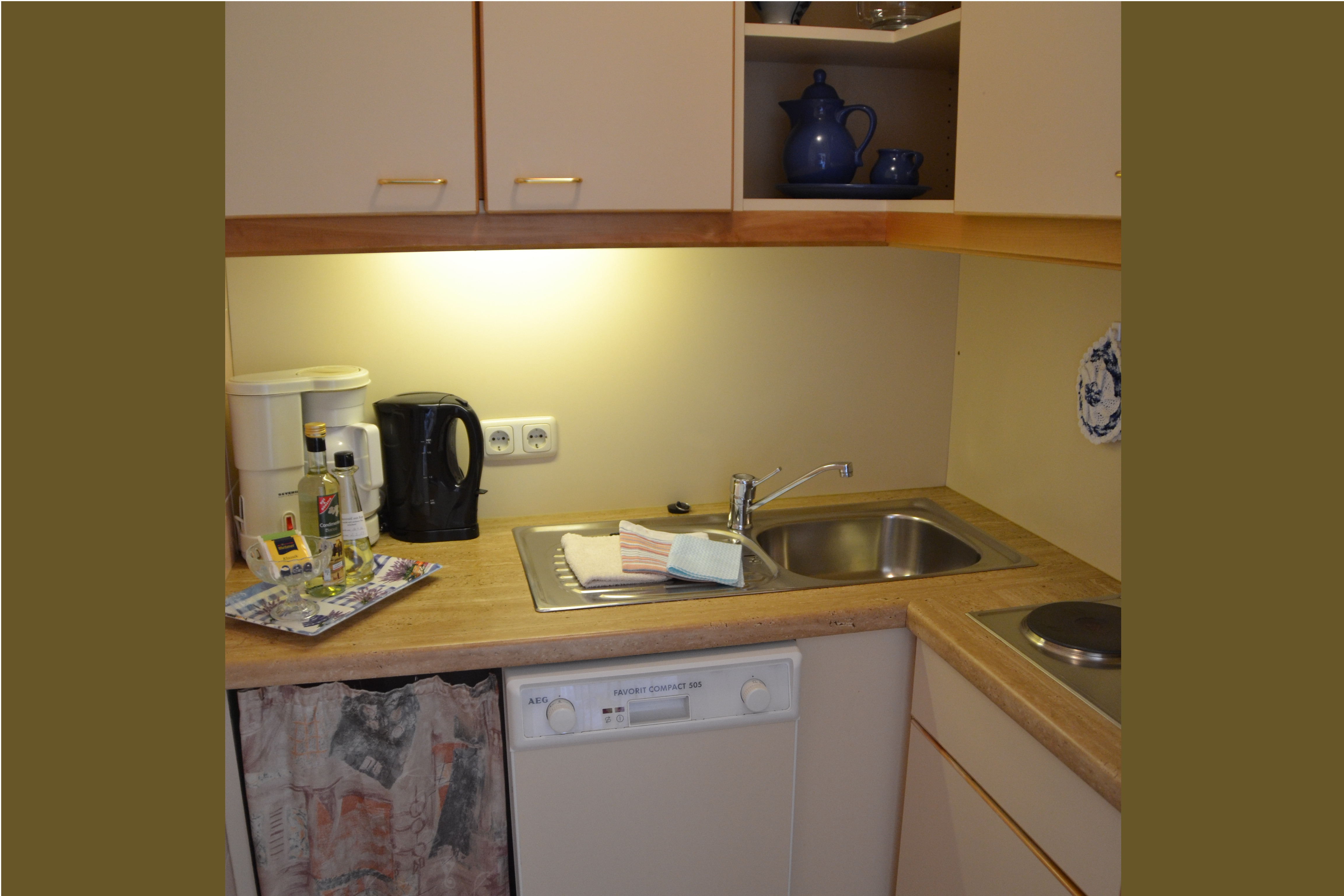 Die komplett eingerichteten Küchen bieten Ihnen noch weitere Extras, wie Geschirrspüler, Kühlschrank, Mikrowelle, Kaffeemaschine, Wasserkocher, Eierkocher und Toaster.