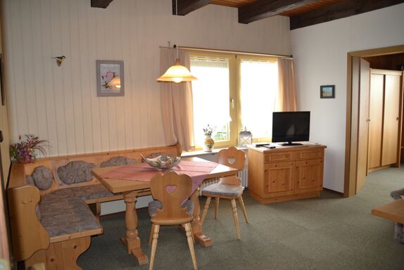 Von den familienfreundlichen Ferienwohnungen haben Sie einen herrlichen Panorama-Blick auf die Berge und in das Tal. An manchen Abenden kommen Rehe bis an das Haus heran.