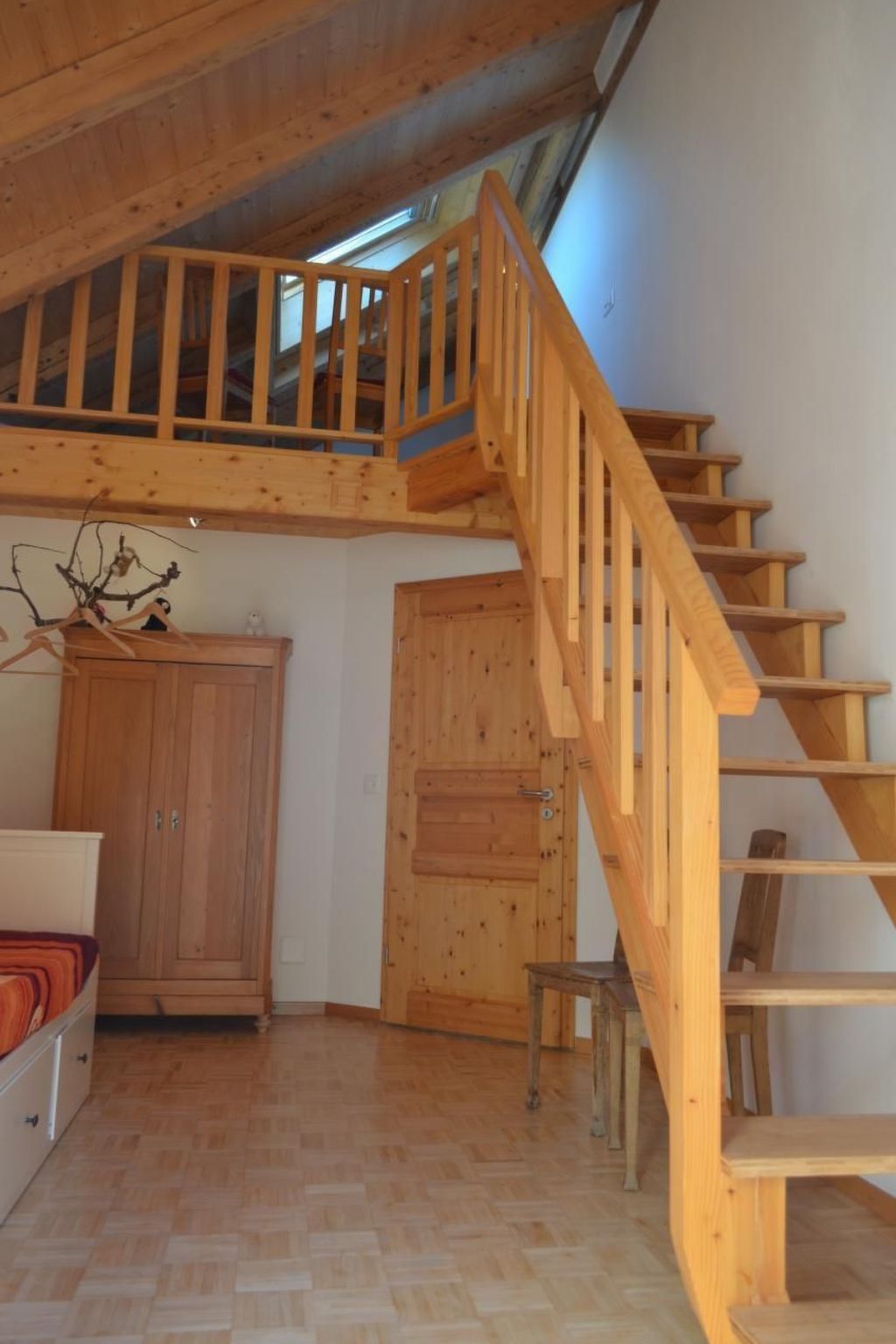Tauchen Sie ein in das Herz der Schweizer Alpen mit einem Aufenthalt in unserer charmanten 3 1/2 Zimmerwohnung, am ruhigen Stadtrand von Meiringen gelegen. Der ideale Zufluchtsort für Familien und Naturliebhaber, die Entspannung in einer atemberaubenden Bergkulisse suchen. Genießen Sie die herrliche Aussicht und die friedliche Atmosphäre, die dieses einzigartige Urlaubsziel bietet. Die Wohnung ist liebevoll eingerichtet, um Ihnen einen angenehmen Aufenthalt zu gewährleisten. Im gemütlichen Wohnzimmer finden Sie Sat-TV und Radio sowie einen Schwedenofen und kostenloses WLAN. Es gibt ein Schlafzimmer mit einem Doppelbett und ein weiteres Schlafzimmer mit einem Einzelbett und einem Doppelbett (unter Dachschräge) auf der offenen Galerie über eine Treppe, ein Zustellbett ist vorhanden. Die Küche lässt keine Wünsche offen - von Backofen, Geschirrspüler und Kühlschrank mit Gefrierfach über Filterkaffeemaschine und Nespresso-Kapselmaschine bis hin zu Wasserkocher, Toaster, Stabmixer, Mikrowelle, Raclettemaschine und Käsefonduegeschirr. Kohlenmonoxidmelder im Wohnzimmer und Rauchmelder in beiden Schlafzimmern sind vorhanden. Im Außenbereich können Sie den großen Garten mitnutzen, der sowohl offene als auch gedeckte Sitzplätze, einen Gartengrill, Gartenmöbel und einen Kinderspielplatz bietet. Der Balkon der Wohnung ermöglicht es Ihnen, die spektakuläre Bergsicht in vollen Zügen zu genießen. Ein Privatparkplatz steht kostenfrei zur Verfügung, ebenso wie eine Waschküche mit Waschmaschine und Wäschetrockner, ein Bügelbrett und ein Bügeleisen. Die Umgebung von Meiringen bietet vielfältige Möglichkeiten für Sport- und Freizeitaktivitäten in der Natur. Wandern, Bergsteigen, Eislaufen, Klettern, Mountainbiking, Radfahren, Skifahren (alpin) und Tennis – hier findet jeder sein persönliches Abenteuer. Die einzigartige Lage ermöglicht es Ihnen, die Schönheit der Schweizer Alpen direkt vor Ihrer Haustür zu erleben. Verbringen Sie unvergessliche Tage in unserer Ferienwohnung. Erleben Sie die Schönheit der Schweizer Alpen, während Sie in einer gemütlichen und gut ausgestatteten Unterkunft wohnen. Ihre ideale Basis für Erkundungen, Abenteuer und entspannte Stunden inmitten der Natur. Lassen Sie den Alltag hinter sich und genießen Sie Ihren Urlaub in vollen Zügen – willkommen in Meiringen. Basisinformationen - Erlaubte Haustiere: keins - Etage, auf der sich das Objekt befindet: OG1 - Grundstücksfläche: 850 m² - letzte umfassende Renovierung: 2019 - Nichtraucherunterkunft - Schlafzimmeranzahl: 2 - Badezimmeranzahl: 1 Top Merkmale - WLAN - Klimaanlage: keine - Heizung: überall - Balkon - Garten: zur gemeinschaftlichen Nutzung - Private PKW-Stellplätze insgesamt für diese Unterkunft: 1 - ㄴ davon private Außenstellplätze: 1 Schlafen Schlafzimmer 1 - Doppelbett (von 1,51 m bis 1,79 m Breite) Schlafzimmer 3 - Doppelbett (von 1,51 m bis 1,79 m Breite) - Zustellbett - Kinder-/Babybett - Schlafzimmer abdunkelbar Badezimmer Badezimmer 1 - Dusche - Badewanne - Waschbecken - Toilette - Föhn Kochen/Wohnen - Kaffeemaschine: Kaffeemaschine - Kühl-/Gefrierschrank: Kühlschrank - Herd: Herd - Dunstabzugshaube - Backofen - Toaster - Mikrowelle - Wasserkocher - Spülmaschine - Größe der Küche: 21 m² - Anzahl Esstische: 1 - Gesamtzahl Sitzplätze: 6 - Anzahl Wohnzimmer: 1 - Ofen Entertainment - Fernseher: TV, Sat.-TV - Radio Hauswirtschaft - Waschmaschine: zur gemeinschaftlichen Nutzung im Gebäude - Wäschetrockner: zur gemeinschaftlichen Nutzung im Gebäude Außenbereich - Outdoormöbel - Grill: Grill Umgebung - Aussicht: Berg, Garten, Wald, Wiese - nächstgelegene Ortsmitte: 28,0 km - Lebensmittelhandel: 600 m - Cafés/Restaurants: 500 m - Bahnhof: 500 m - Flughafen: 115,0 km - Autobahn: 35,0 km.