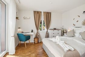 Willkommen bei «Relaxed – Modern Apartments» in Brugg, einem bezaubernden Städtchen im Herzen des Kantons Aargau, nur 30 km von Zürich entfernt. Gelegen am Zusammenfluss der drei Flüsse Reuss, Limmat und Aare, bieten wir frisch möblierte Apartments in einer bevorzugten ruhigen Wohnlage an. Perfekt für kurze Städtetrips, Geschäftsreisen oder längere Aufenthalte. Lass dich von der Liebe zum Detail in unserem Interieur begeistern und genieße optimalen Komfort während deines Aufenthalts. Unsere Apartments sind mit viel Liebe und Aufmerksamkeit eingerichtet. Das Herzstück bildet ein Arbeitsplatz mit kostenlosem 450 Mbit WLAN für deine Kreativität und Arbeit. Eine voll ausgestattete hochmoderne Küche mit Induktionsherd und NESPRESSO-Kaffeemaschine lässt keine Wünsche offen. Der Wohnbereich mit Schlafsofa bietet Platz für bis zu 4 Personen und garantiert durch einen Raumtrenner zum Schlafbereich mit Queen-Size-Boxspringbett ruhige Nächte. Hotelniveau Bettwaren und eine Heimkino Ausstattung sorgen für erstklassigen Wohnkomfort. Dein persönlich gekennzeichneter Parkplatz direkt vor dem Haus erleichtert deine Ankunft. Ein entspannter Check-in via Schlüsselsafe ermöglicht dir Zutritt über den Terrasseneingang zur Wohnung, von wo aus du die wunderschöne Aussicht auf die Aare genießen kannst. Der Gartenbereich lockt mit einer Terrasse und einem Lounge-Bereich inklusive Gasgrill – ideal für gemütliche Stunden im Freien. Brugg und seine Umgebung bieten eine Vielzahl an Freizeitmöglichkeiten. Tauche ein in die Welt des römischen Legionslagers auf dem Legionärspfad Vindonissa, erkunde den Jurapark Aargau oder das Schloss Habsburg. Die Altstadt von Brugg liegt weniger als 15 Minuten zu Fuß entfernt, sämtliche Sehenswürdigkeiten sind mit öffentlichen Verkehrsmitteln rasch erreichbar. Die Gegend ist ideal für Liebhaber von Radtouren und Mountainbiking. Erlebe einen unvergesslichen Aufenthalt in einem unserer «Relaxed – Modern Apartments». Ein Begrüßungsset mit Kaffee, Tee sowie Schwiizer Schoggi wartet schon auf dich. Egal, ob du alleine reist, mit Familie oder mit Freunden, wir garantieren Komfort und Qualität. Familien mit Kindern sowie Vierbeiner sind herzlich willkommen. Robert & Marieke freuen sich, dich bald in Brugg begrüßen zu dürfen und werden alles tun, um deinen Aufenthalt so angenehm und erinnerungswürdig wie möglich zu gestalten. Basisinformationen - Erlaubte Haustiere: 4 - erlaubte Hundegröße: groß (über 60 cm) - Unterkunftstyp: Ferienwohnung - befindet sich in: Anlage - Art d. Wohnung: Einliegerwohnung - Art d. Gebäudes: Mehrparteienhaus - Etage, auf der sich das Objekt befindet: EG - Gesamtanzahl d. Stockwerke im Gebäude über EG: 2 - letzte umfassende Renovierung: 2024 - kontaktloser Check-in/out - Nichtraucherunterkunft - Schlafzimmeranzahl: Studio (kein separates Schlafzimmer) - Badezimmeranzahl: 1 Top Merkmale - WLAN - Klimaanlage: keine - Heizung: überall - Fußbodenheizung: überall - Terrasse - Private PKW-Stellplätze insgesamt für diese Unterkunft: 1 - ㄴ davon private Außenstellplätze: 1 - Entfernung kostenfreie Gemeinschaftsparkplätze oder Parken an der Straße: 20 m Schlafen im Wohnbereich - Doppelbett (von 1,51 m bis 1,79 m Breite) - Schlafsofa 2 Personen - Kinder-/Babybett - Schlafzimmer abdunkelbar Badezimmer Badezimmer 1 - Dusche - Waschbecken - Toilette - Beheizbarer Handtuchhalter - Föhn Kochen/Wohnen - Kaffeemaschine: Espressokanne, Filter-Kaffeemaschine, Kaffeemaschine, Kapsel-Kaffeemaschine - Kühl-/Gefrierschrank: Gefrierfach, Tiefkühlschrank, Kühlschrank - Herd: Herd, Induktionsherd - Dunstabzugshaube - Backofen - Toaster - Wasserkocher - Spülmaschine - Geschirrtücher - Anzahl Esstische: 1 - Gesamtzahl Sitzplätze: 4 - Anzahl Wohnzimmer: 1 - Wohnzimmer abdunkelbar Entertainment - Fernseher: TV, Kabel-TV - Smart-TV - Gesellschaftsspiele für Erwachsene Für Kinder - Kinderstuhl - Gesellschaftsspiele für Kinder Hauswirtschaft - Bügeleisen - Reinigungsprodukte - Ventilator: keinen - Standventilator - Rauchmelder - Erste Hilfe Set Nachhaltigkeit - Abfallrecycling - Bioabfall verfügbar Außenbereich - Veranda - Outdoormöbel - Grill: Grill Umgebung - nächstgelegene Ortsmitte: 2,6 km - Lebensmittelhandel: 1,6 km - Cafés/Restaurants: 900 m - Bahnhof: 1,0 km - Flughafen: 40,0 km - Autobahn: 14,0 km - Fluss: 150 m