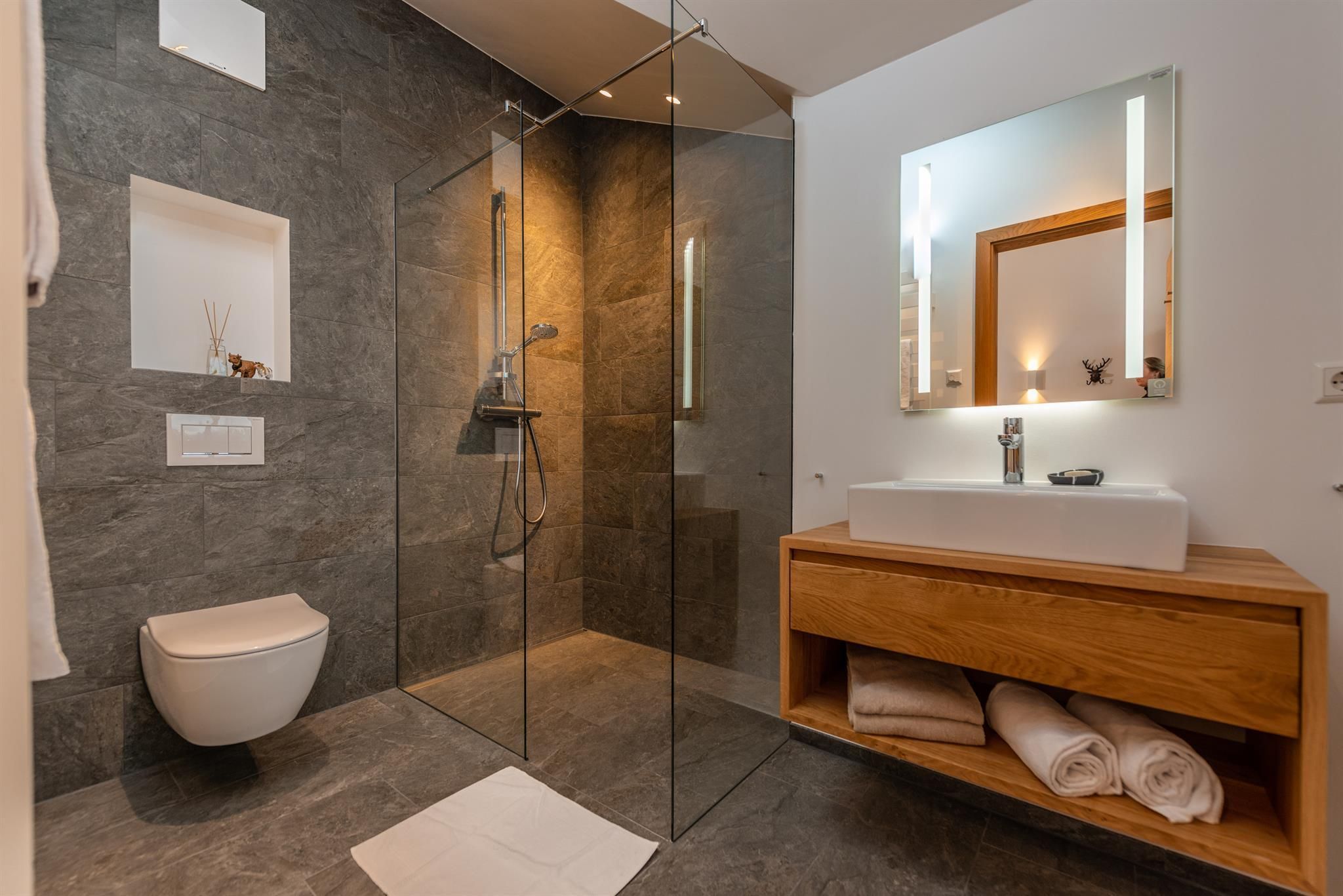 Privatheit und Service sind keine Widersprüche, sondern etwas, das hervorragend harmoniert. Deine Privatsphäre ist uns heilig. Wir sind aber da, wenn Du Hilfe brauchst, wir sind da, wenn Du Dir ein bisschen Chi-Chi im Urlaubsleben gönnen willst, sei es ein Brötchenservice, ein Frühstückskisterl, sei es ein Catering direkt ins Chalet geliefert oder ein guter Rat für ein Restaurant. Wir sind Möglichmacher und Wünsche-Erfüller und 365 Tage, 7 Tage in der Woche, 24 Stunden für jedes Anliegen erreichbar.