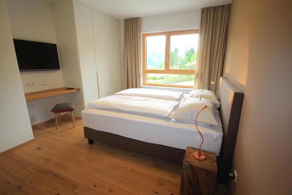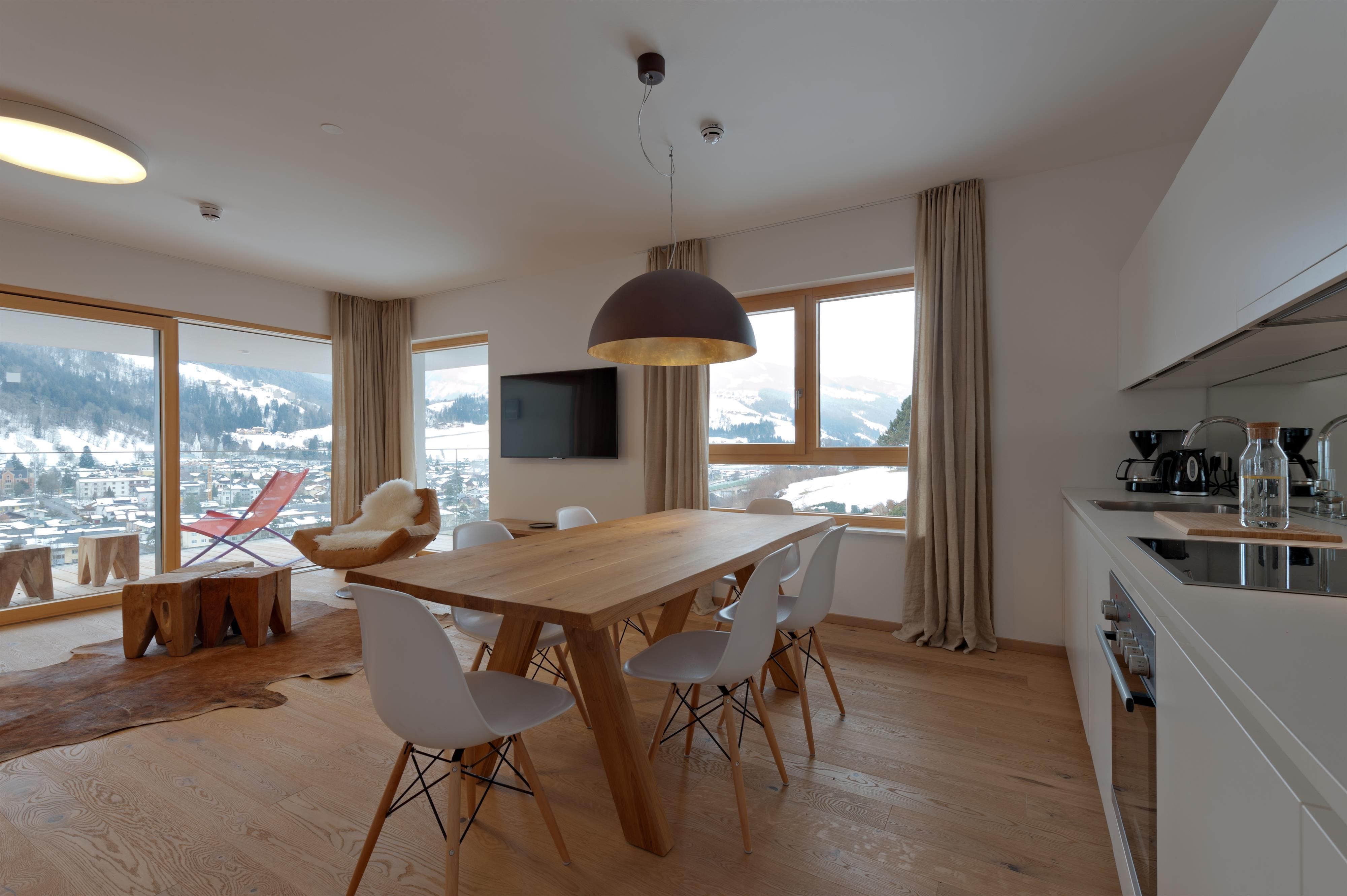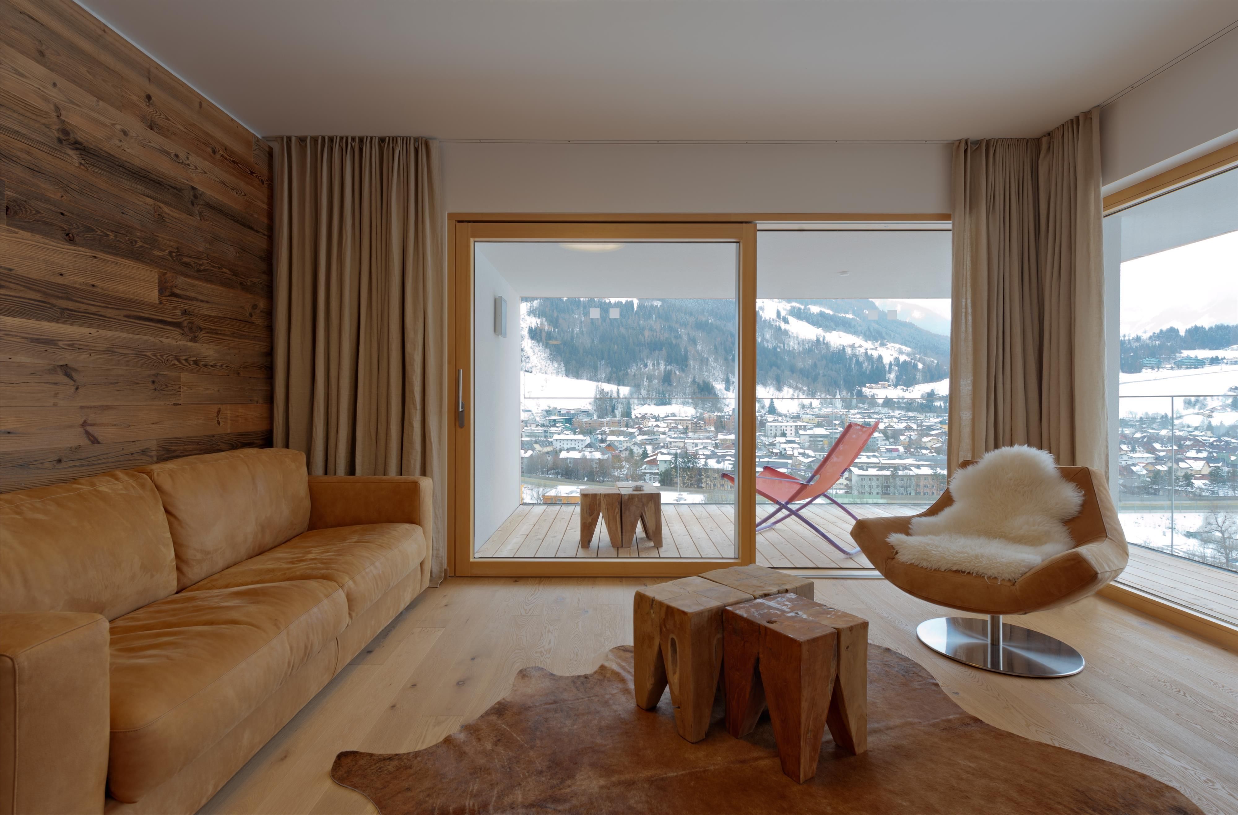 3 miteinander verbunden Häuser 38 servicierte Appartements, von 40m² Studios, Appartements mit einem, zwei oder drei Schlafzimmern bis hin zu 130m² Penthäusern, herrlichen Ausblick und Top Ausstattung inklusive! Die hochwertige Grundausstattung der Appartements mit heimischen Materialen wie Holz, Stein und Glas vermitteln ein modernes Wohlfühlambiente mit viel Licht und Aussicht, - eine Symbiose aus purem Lebensgefühl und Kraftplatz an der Sonne. Komplett ausgestattete Designküchen, großzügige Wohnräume zum Teil mit offenem Kamin, moderne & stylische Möbel, kostenfreies WLAN, Kabel TV in allen Schlaf- und Wohnräumen sowie moderne und lichtdurchflutete Badezimmer, lassen für den Gast, der seine private Freiheit schätzt, keine Wünsche offen .