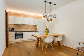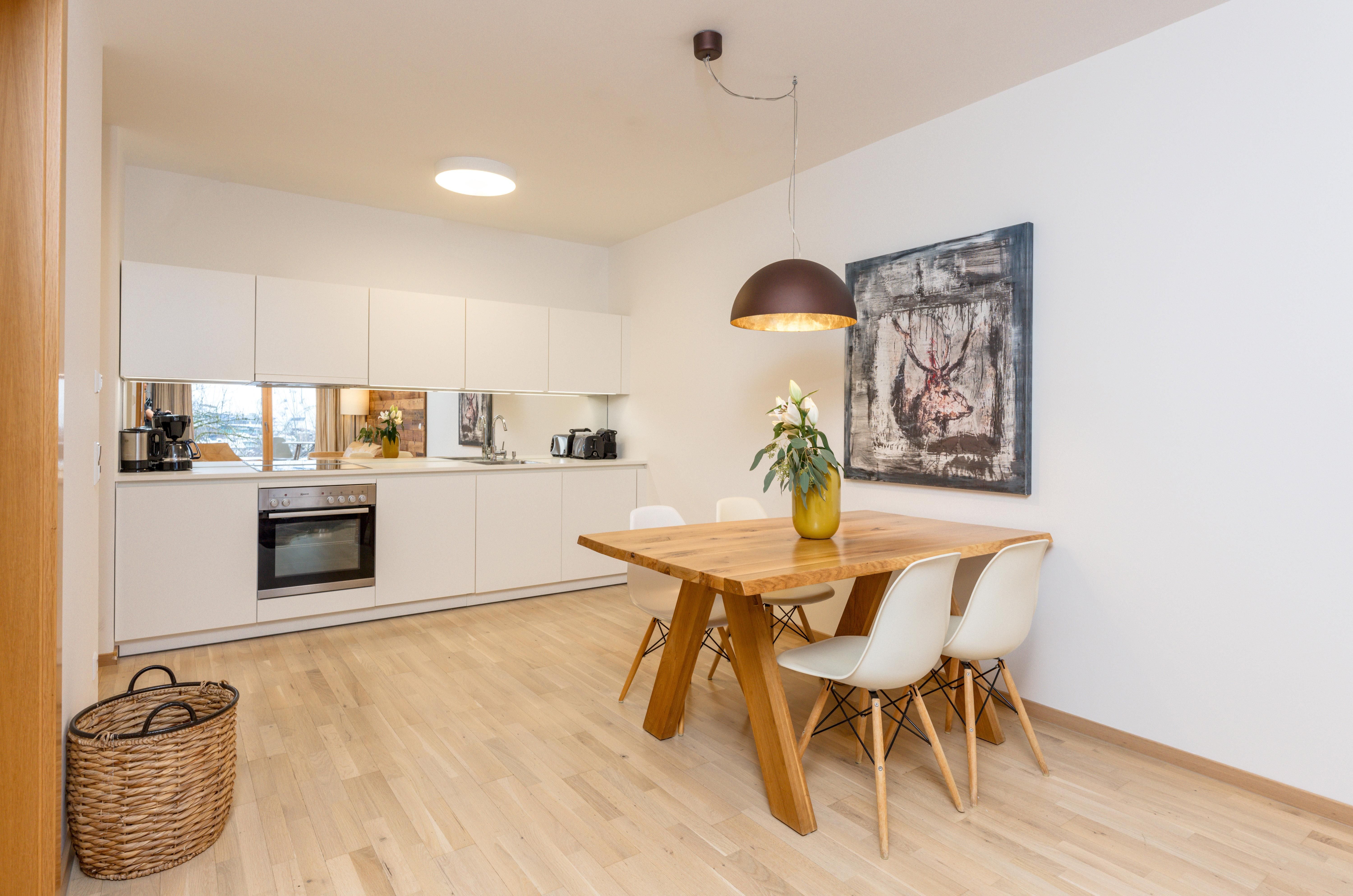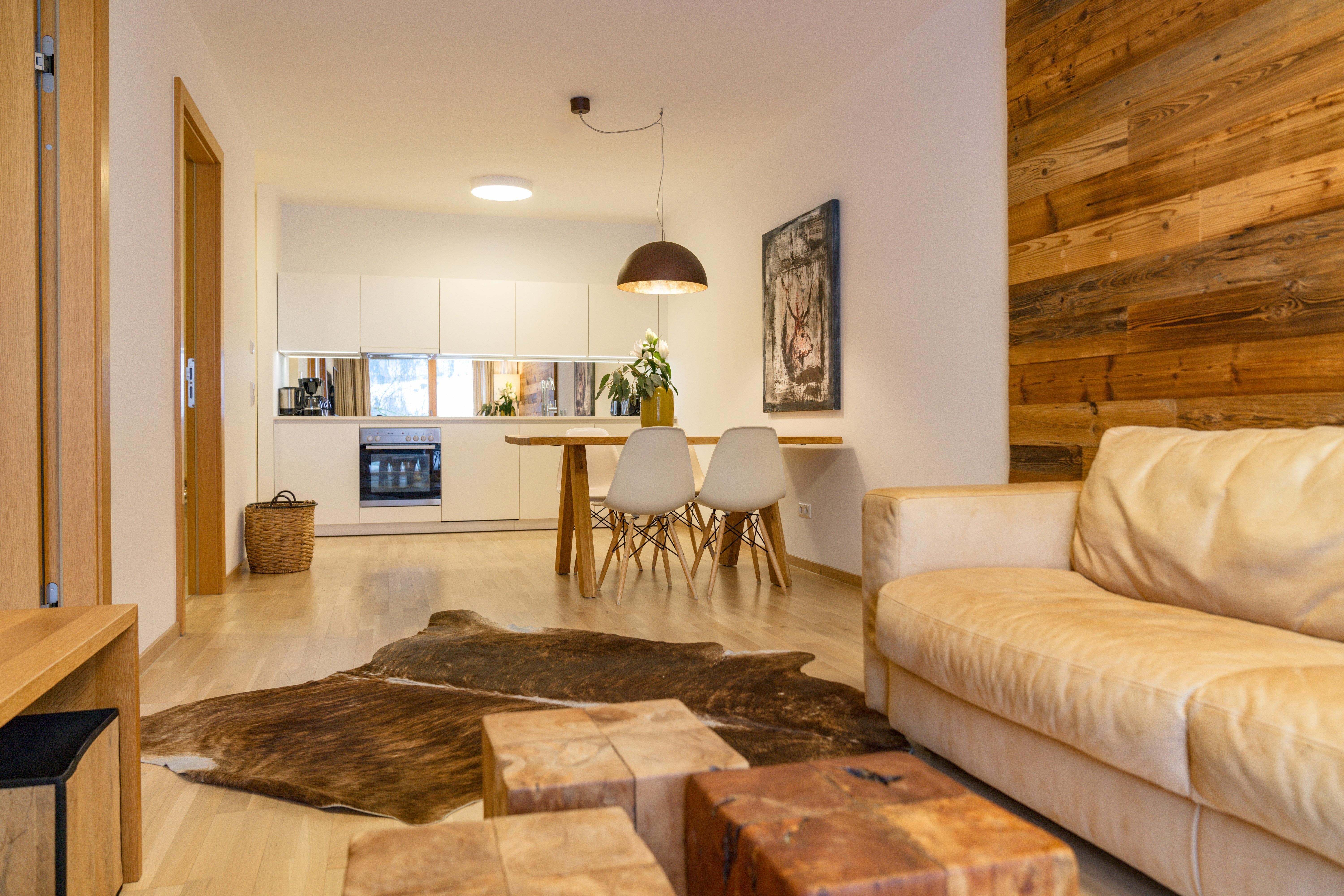 3 miteinander verbunden Häuser 38 servicierte Appartements, von 40m² Studios, Appartements mit einem, zwei oder drei Schlafzimmern bis hin zu 130m² Penthäusern, herrlichen Ausblick und Top Ausstattung inklusive! Die hochwertige Grundausstattung der Appartements mit heimischen Materialen wie Holz, Stein und Glas vermitteln ein modernes Wohlfühlambiente mit viel Licht und Aussicht, - eine Symbiose aus purem Lebensgefühl und Kraftplatz an der Sonne. Komplett ausgestattete Designküchen, großzügige Wohnräume zum Teil mit offenem Kamin, moderne & stylische Möbel, kostenfreies WLAN, Kabel TV in allen Schlaf- und Wohnräumen sowie moderne und lichtdurchflutete Badezimmer, lassen für den Gast, der seine private Freiheit schätzt, keine Wünsche offen .