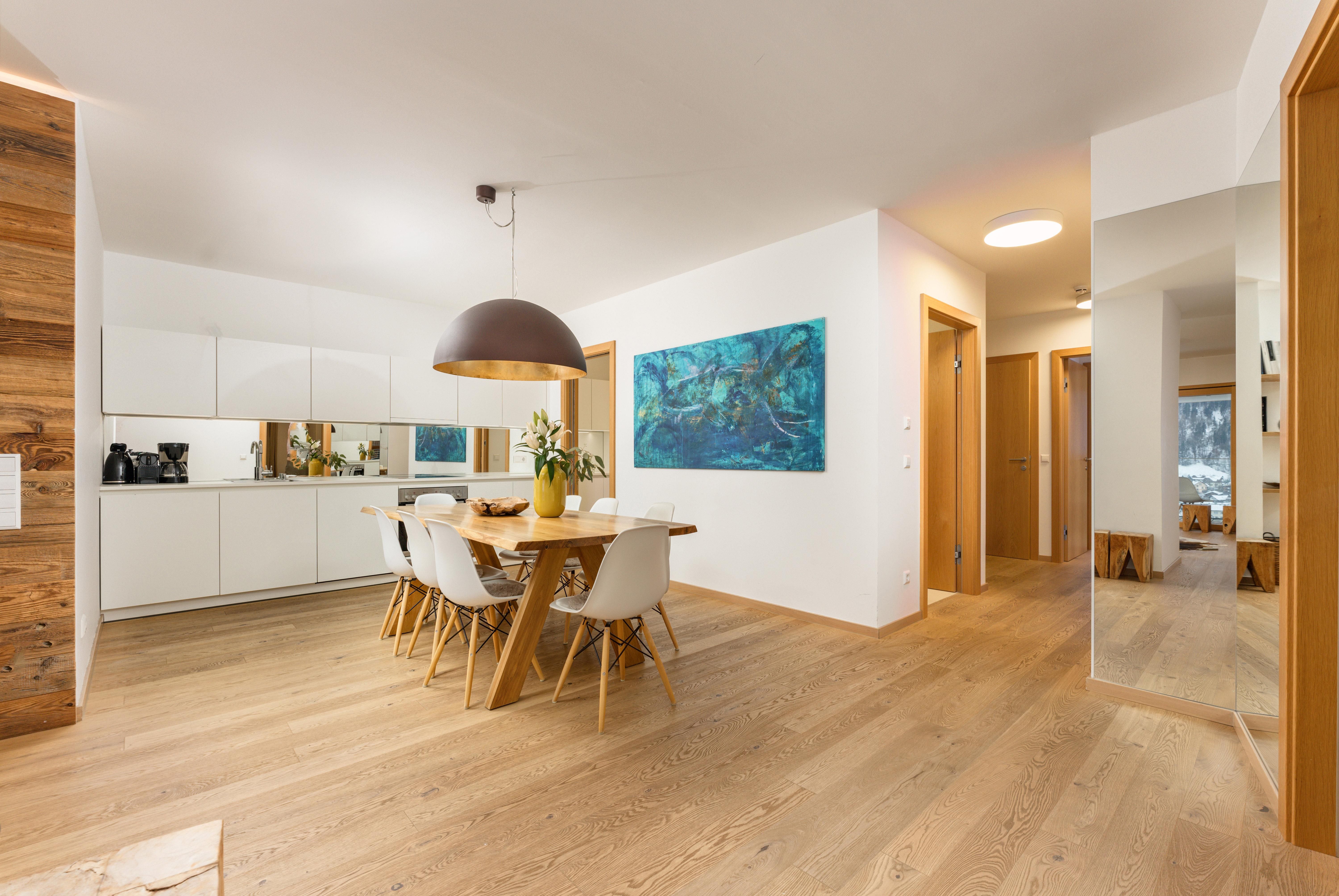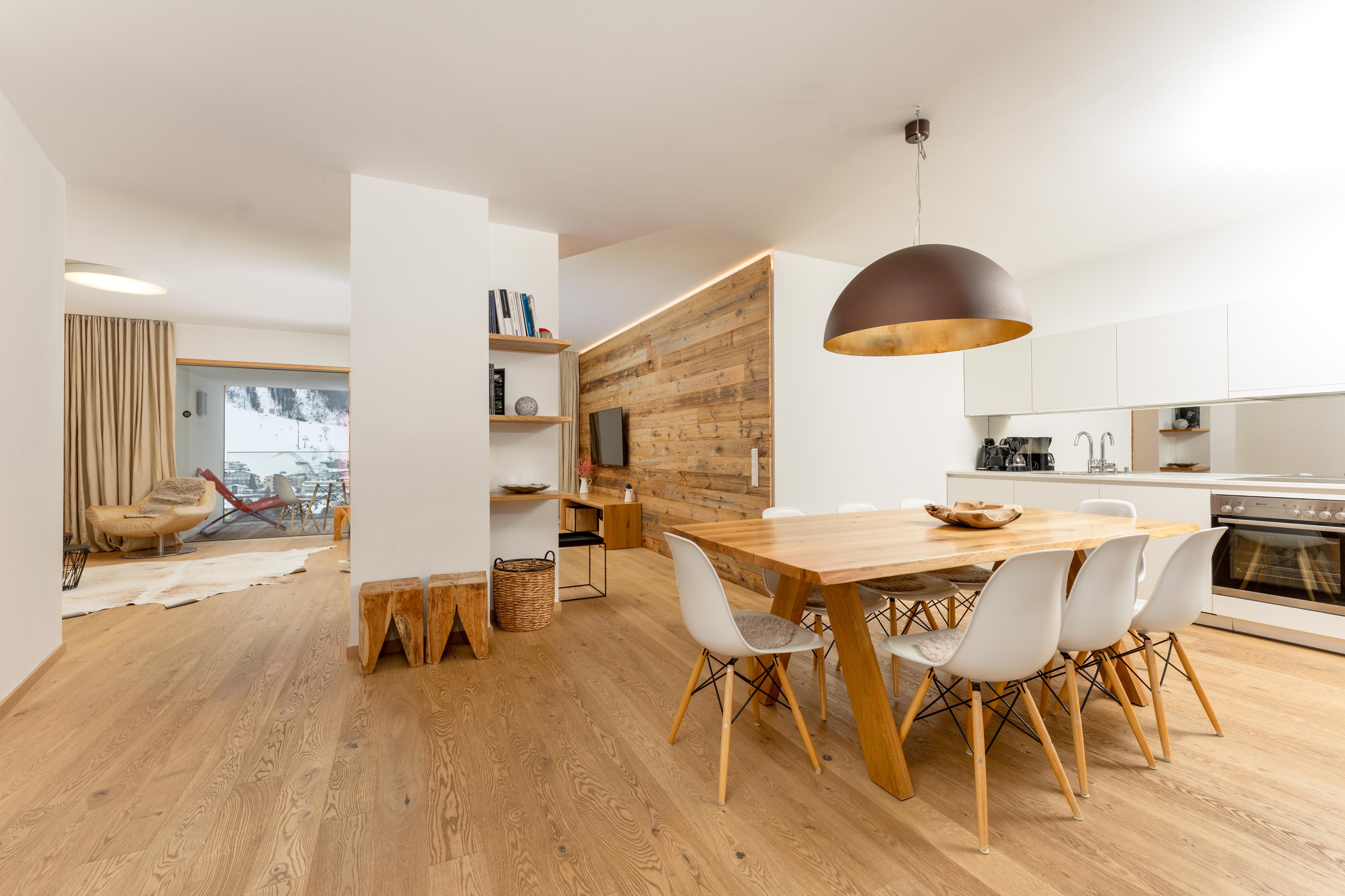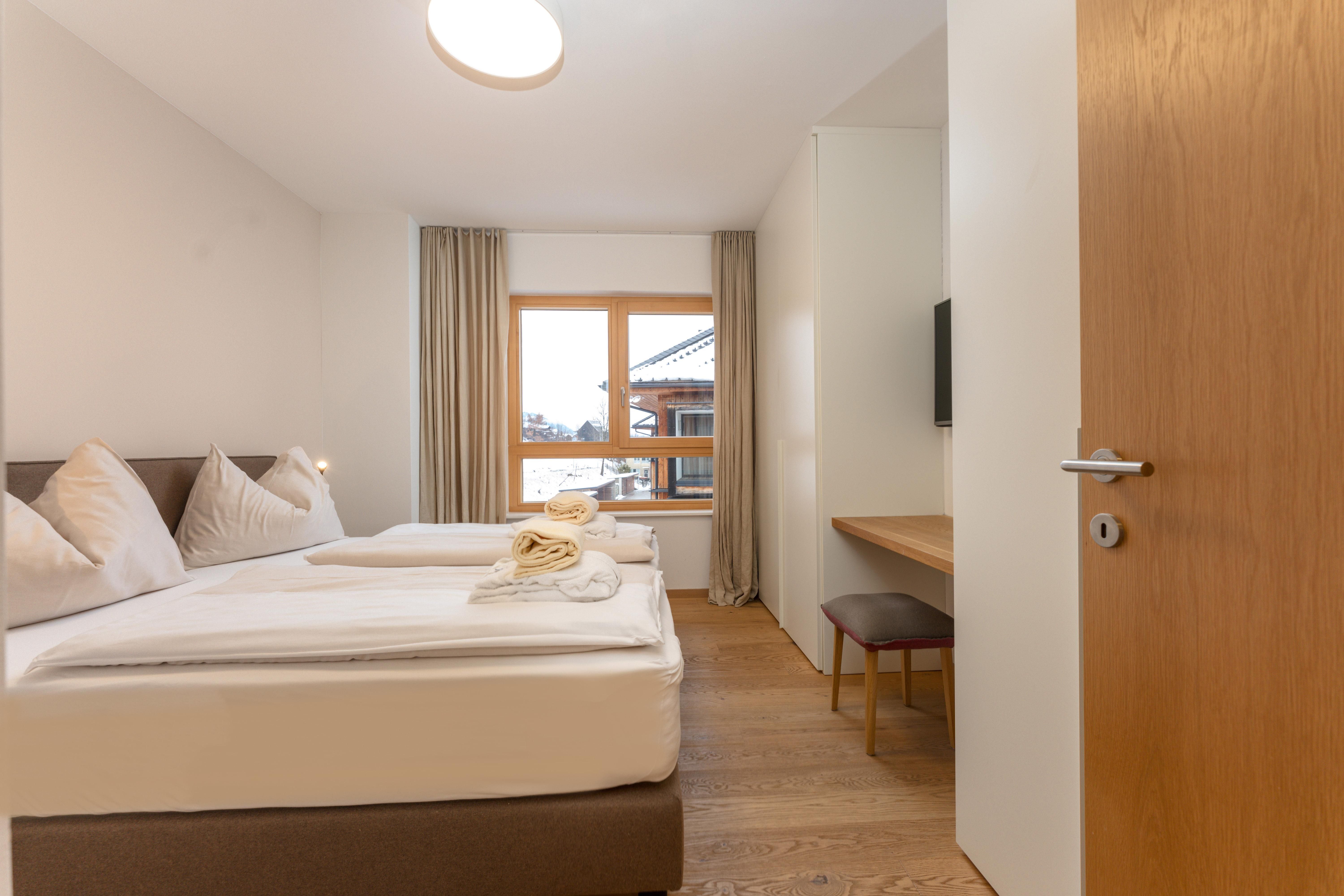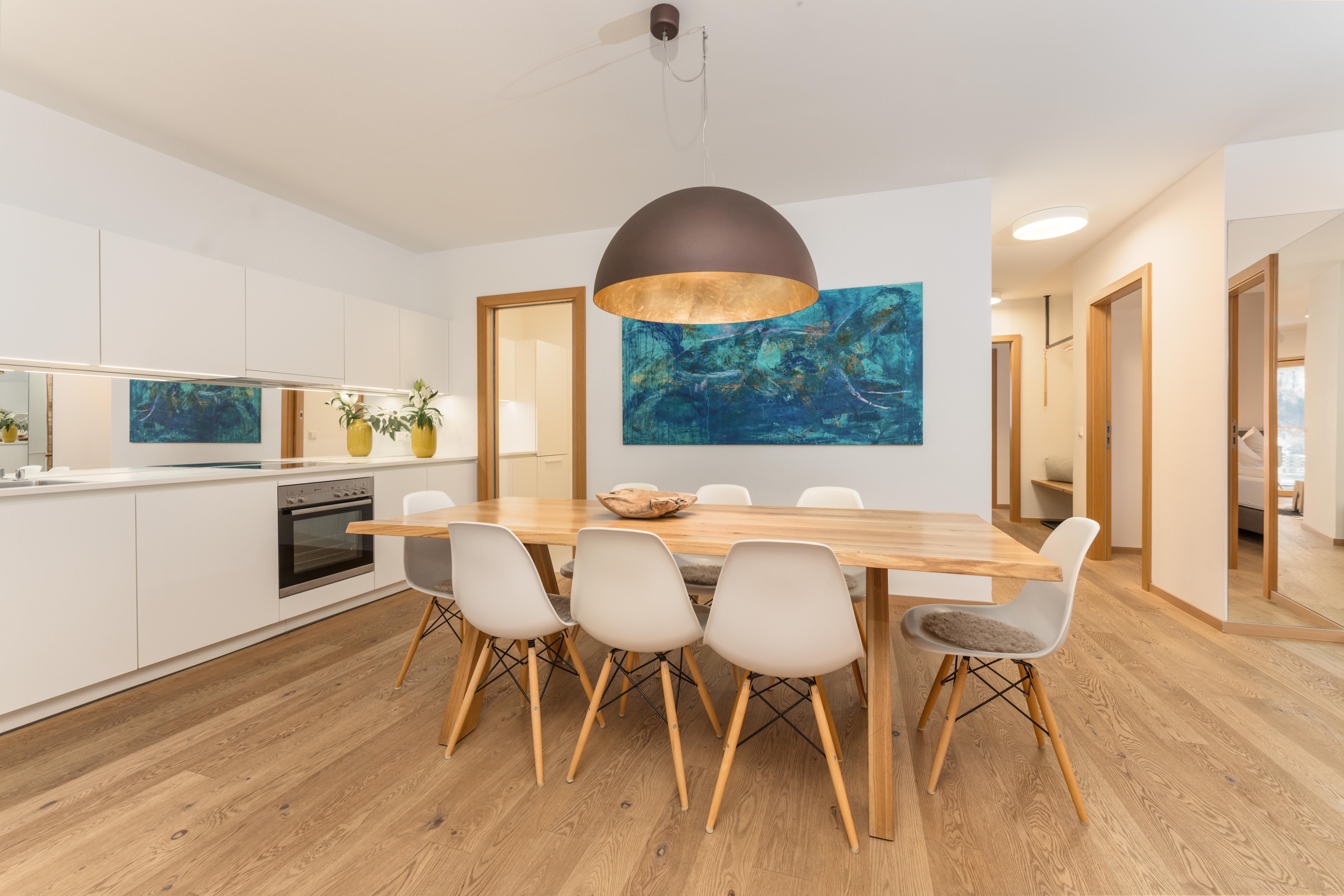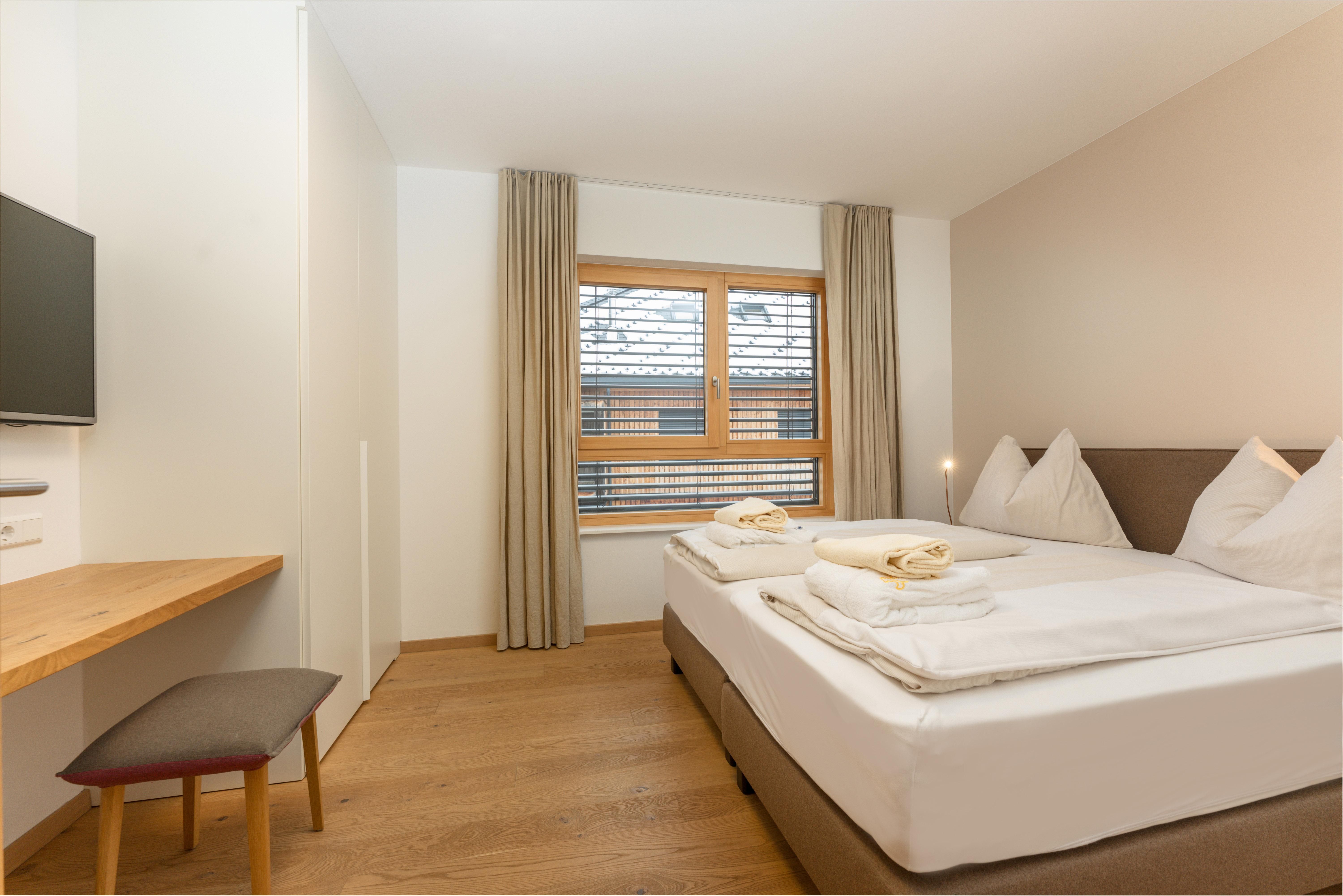 3 miteinander verbunden Häuser 38 servicierte Appartements, von 40m² Studios, Appartements mit einem, zwei oder drei Schlafzimmern bis hin zu 130m² Penthäusern, herrlichen Ausblick und Top Ausstattung inklusive! Die hochwertige Grundausstattung der Appartements mit heimischen Materialen wie Holz, Stein und Glas vermitteln ein modernes Wohlfühlambiente mit viel Licht und Aussicht, - eine Symbiose aus purem Lebensgefühl und Kraftplatz an der Sonne. Komplett ausgestattete Designküchen, großzügige Wohnräume zum Teil mit offenem Kamin, moderne & stylische Möbel, kostenfreies WLAN, Kabel TV in allen Schlaf- und Wohnräumen sowie moderne und lichtdurchflutete Badezimmer, lassen für den Gast, der seine private Freiheit schätzt, keine Wünsche offen .