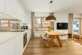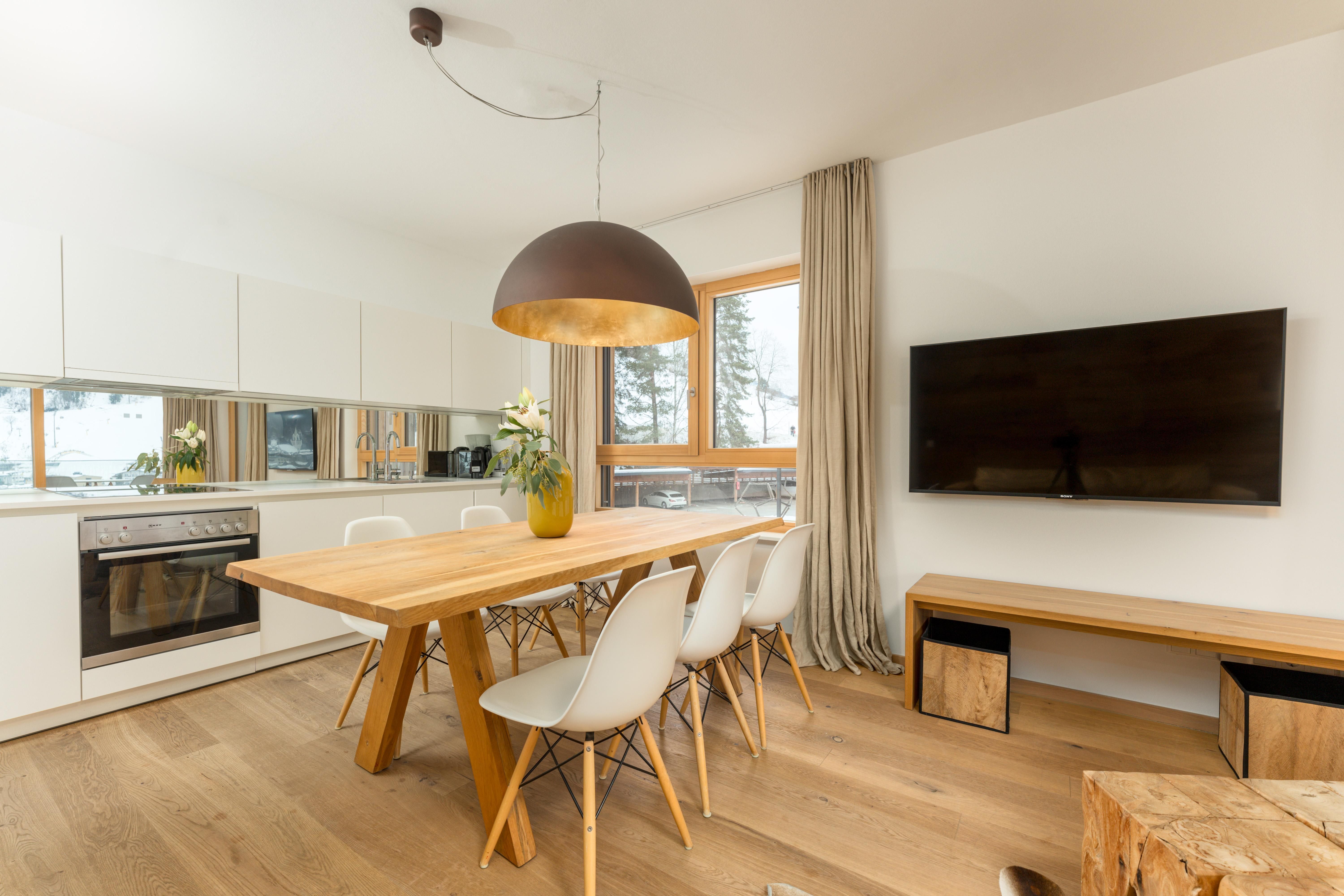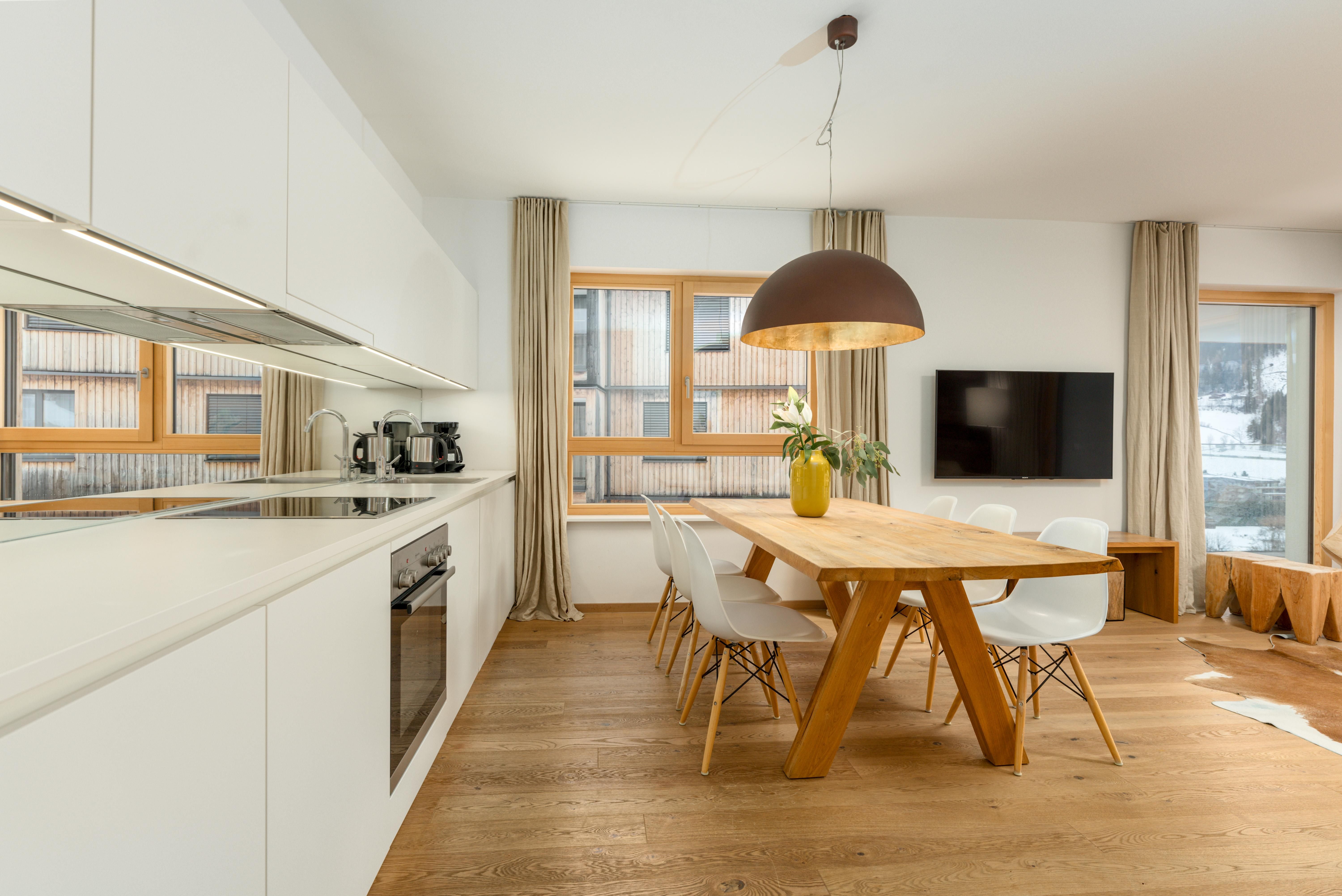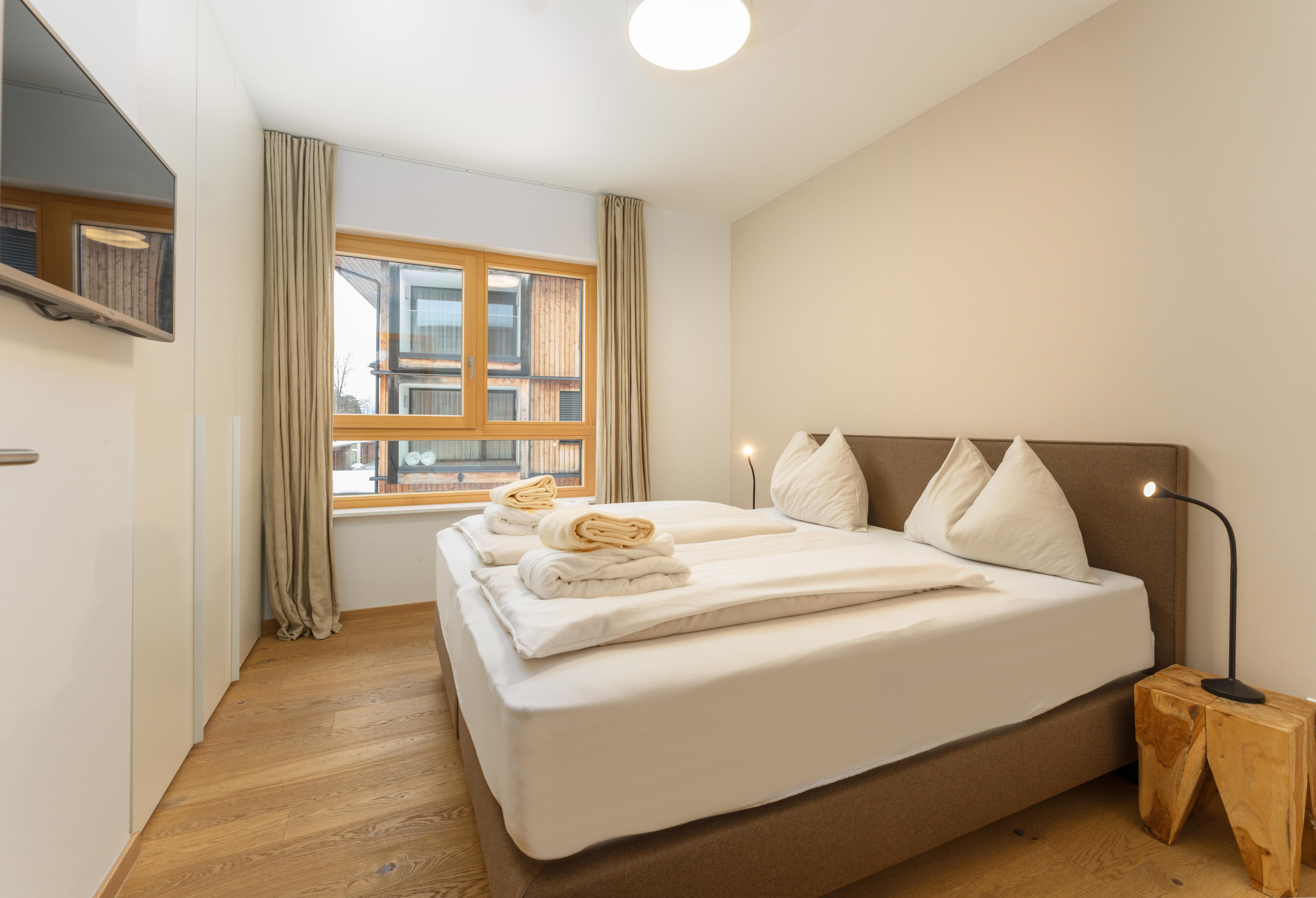 3 miteinander verbunden Häuser 38 servicierte Appartements, von 40m² Studios, Appartements mit einem, zwei oder drei Schlafzimmern bis hin zu 130m² Penthäusern, herrlichen Ausblick und Top Ausstattung inklusive! Die hochwertige Grundausstattung der Appartements mit heimischen Materialen wie Holz, Stein und Glas vermitteln ein modernes Wohlfühlambiente mit viel Licht und Aussicht, - eine Symbiose aus purem Lebensgefühl und Kraftplatz an der Sonne. Komplett ausgestattete Designküchen, großzügige Wohnräume zum Teil mit offenem Kamin, moderne & stylische Möbel, kostenfreies WLAN, Kabel TV in allen Schlaf- und Wohnräumen sowie moderne und lichtdurchflutete Badezimmer, lassen für den Gast, der seine private Freiheit schätzt, keine Wünsche offen .