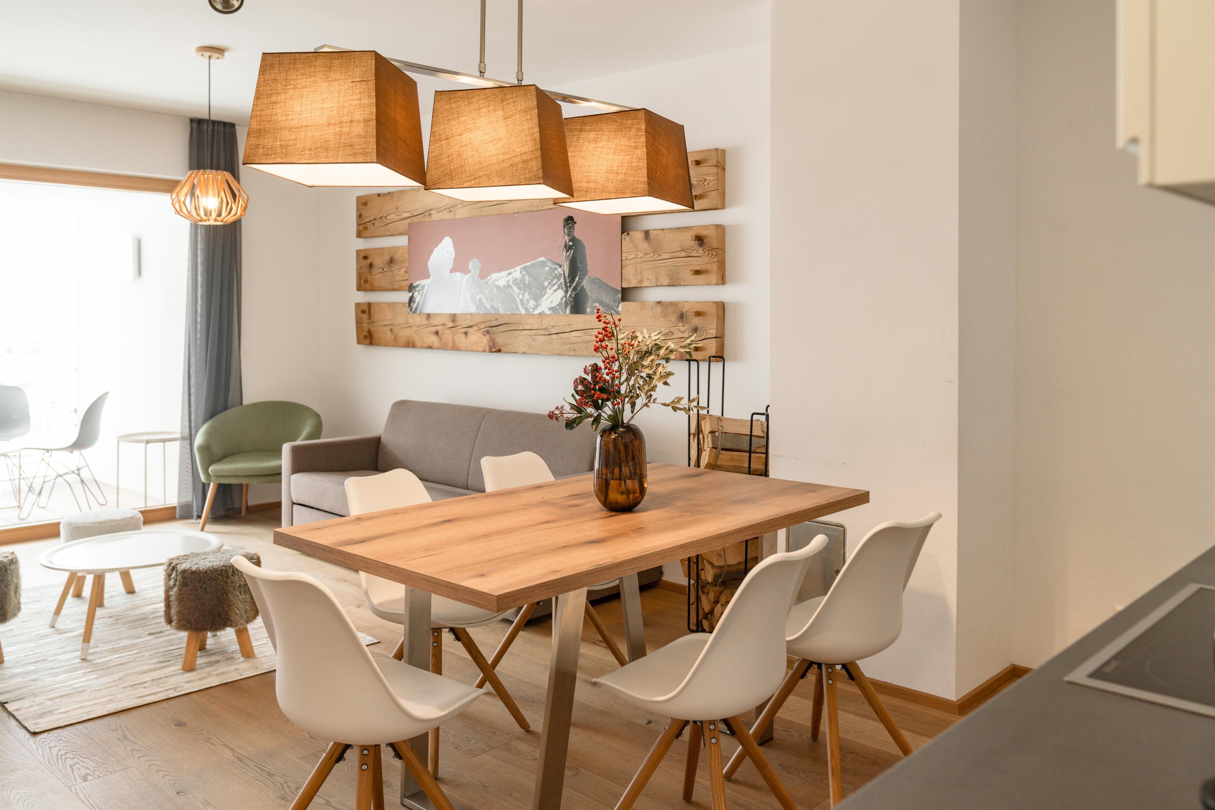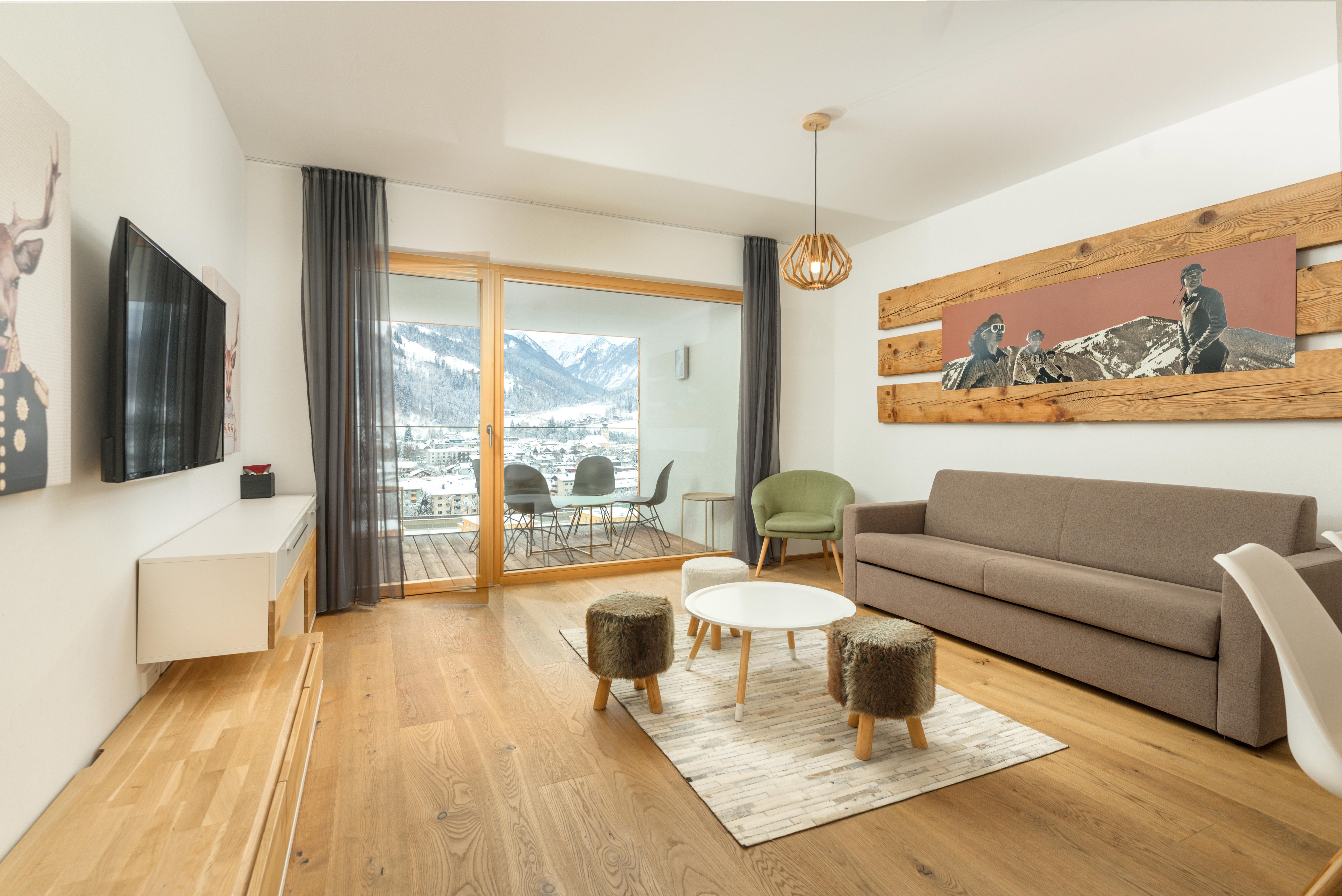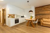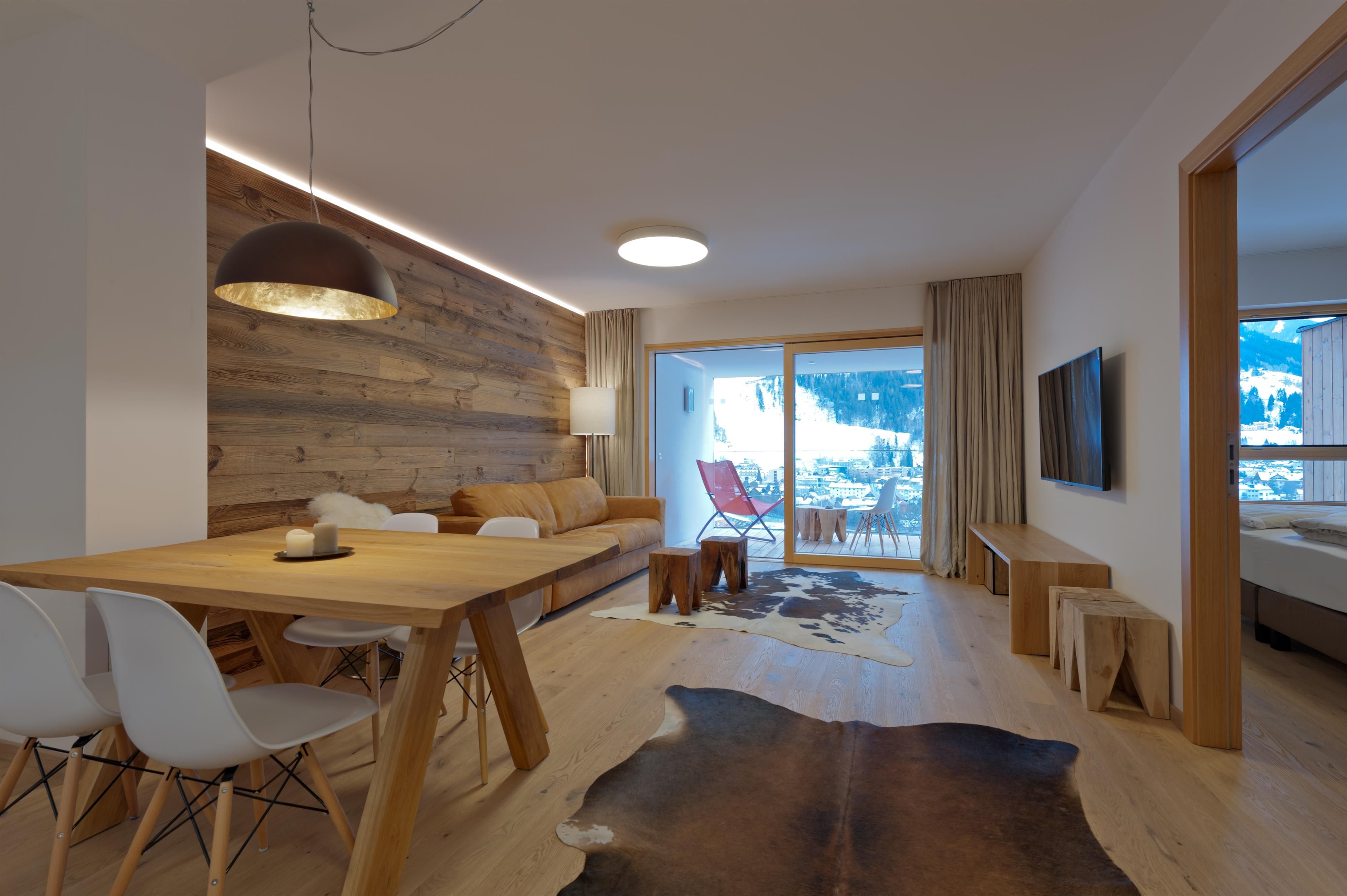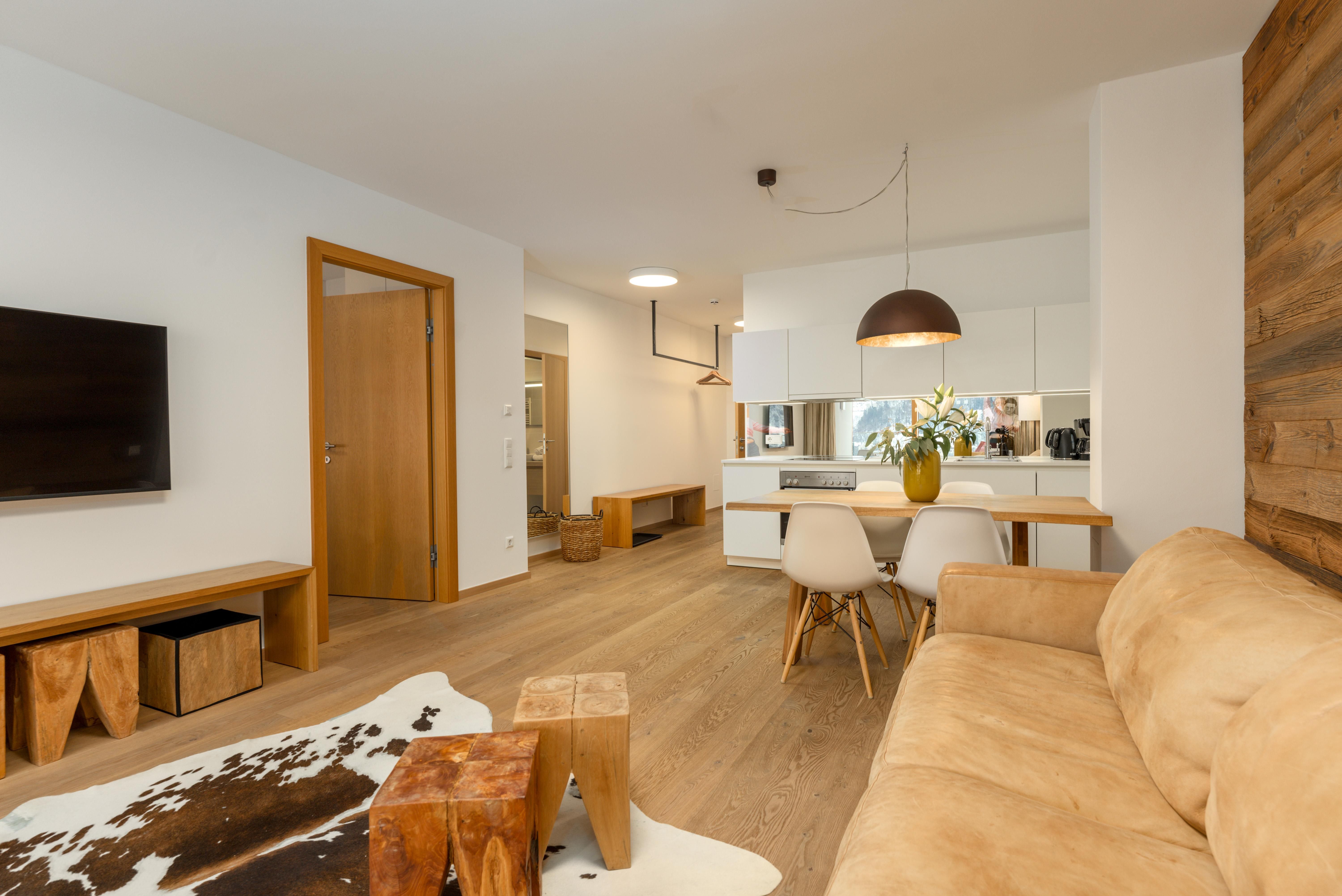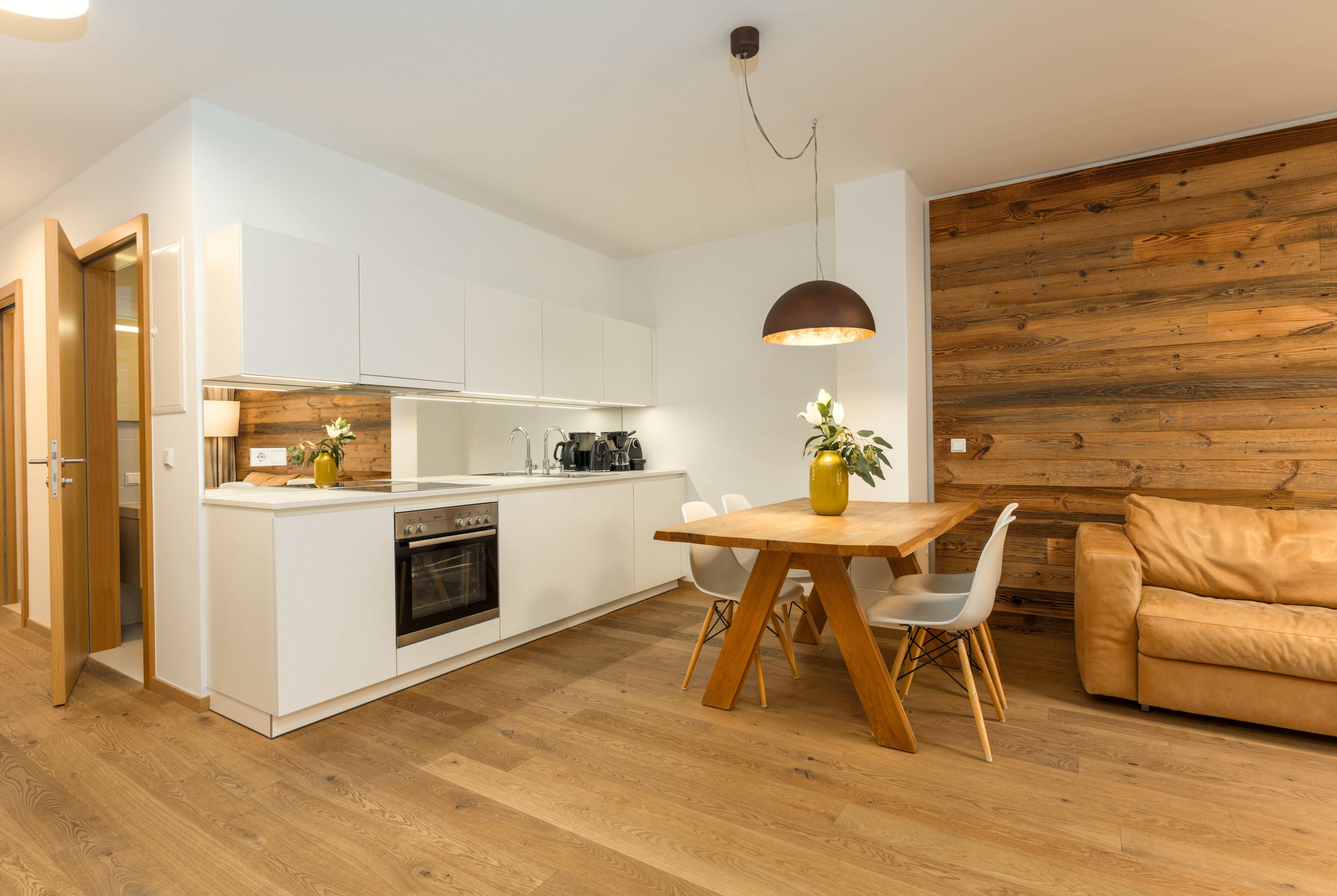 3 miteinander verbunden Häuser 38 servicierte Appartements, von 40m² Studios, Appartements mit einem, zwei oder drei Schlafzimmern bis hin zu 130m² Penthäusern, herrlichen Ausblick und Top Ausstattung inklusive! Die hochwertige Grundausstattung der Appartements mit heimischen Materialen wie Holz, Stein und Glas vermitteln ein modernes Wohlfühlambiente mit viel Licht und Aussicht, - eine Symbiose aus purem Lebensgefühl und Kraftplatz an der Sonne. Komplett ausgestattete Designküchen, großzügige Wohnräume zum Teil mit offenem Kamin, moderne & stylische Möbel, kostenfreies WLAN, Kabel TV in allen Schlaf- und Wohnräumen sowie moderne und lichtdurchflutete Badezimmer, lassen für den Gast, der seine private Freiheit schätzt, keine Wünsche offen .