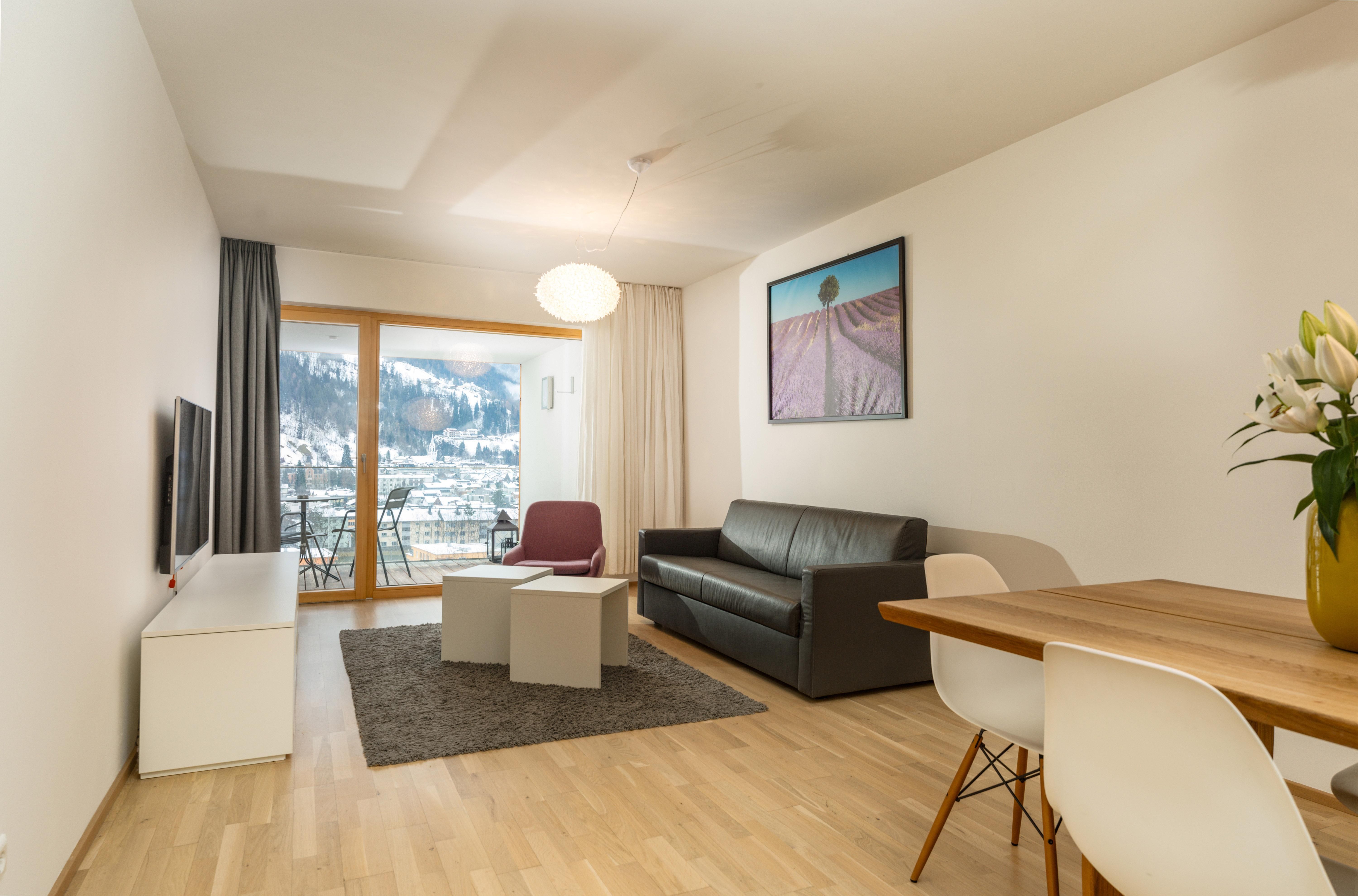 3 miteinander verbunden Häuser 38 servicierte Appartements, von 40m² Studios, Appartements mit einem, zwei oder drei Schlafzimmern bis hin zu 130m² Penthäusern, herrlichen Ausblick und Top Ausstattung inklusive! Die hochwertige Grundausstattung der Appartements mit heimischen Materialen wie Holz, Stein und Glas vermitteln ein modernes Wohlfühlambiente mit viel Licht und Aussicht, - eine Symbiose aus purem Lebensgefühl und Kraftplatz an der Sonne. Komplett ausgestattete Designküchen, großzügige Wohnräume zum Teil mit offenem Kamin, moderne & stylische Möbel, kostenfreies WLAN, Kabel TV in allen Schlaf- und Wohnräumen sowie moderne und lichtdurchflutete Badezimmer, lassen für den Gast, der seine private Freiheit schätzt, keine Wünsche offen .
