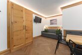 Jede Einheit bietet eine Küche, wahlweise ein oder zwei Schlafzimmer, ein Badezimmer mit Dusche und Doppelwaschtisch, separate Toilette sowie einen Garten oder Balkon. Zwei der Appartements sind für 2-4 Personen, die weiteren 4 für je 4-6 Personen geeignet. Alle Appartements sind mit natürlichen Materialen und viel Holz eingerichtet und schaffen ein gediegen-gemütliches Ambiente. Ein Gemeinschaftsraum mit Wintergarten und kleiner Küche sowie eine Terrasse mit angeschlossenem Garten, im Sommer mit Liegestühlen und Grillplatz, laden Familien oder Gruppen zum gemeinsamen Verweilen ein. Weitere Annehmlichkeiten wie ein kleiner Wellnessbereich mit Sauna und Ruheraum im Untergeschoss des Hauses, ein Skiabstellraum inklusive Skischuhtrockner sowie eine Waschmaschine mit Trockner werden Ihren Urlaub bereichern. Restaurants, Geschäfte und der Aprés Ski Tempel „die Alm Arena“ sind in wenigen Gehminuten erreichbar. Einem autofreien und entspannten Urlaub steht in dieser Toplage nichts mehr im Wege.