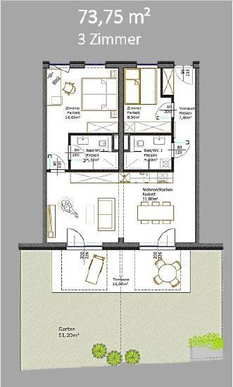 - 18 m² Terrasse mit Garten & Terrassenmöel