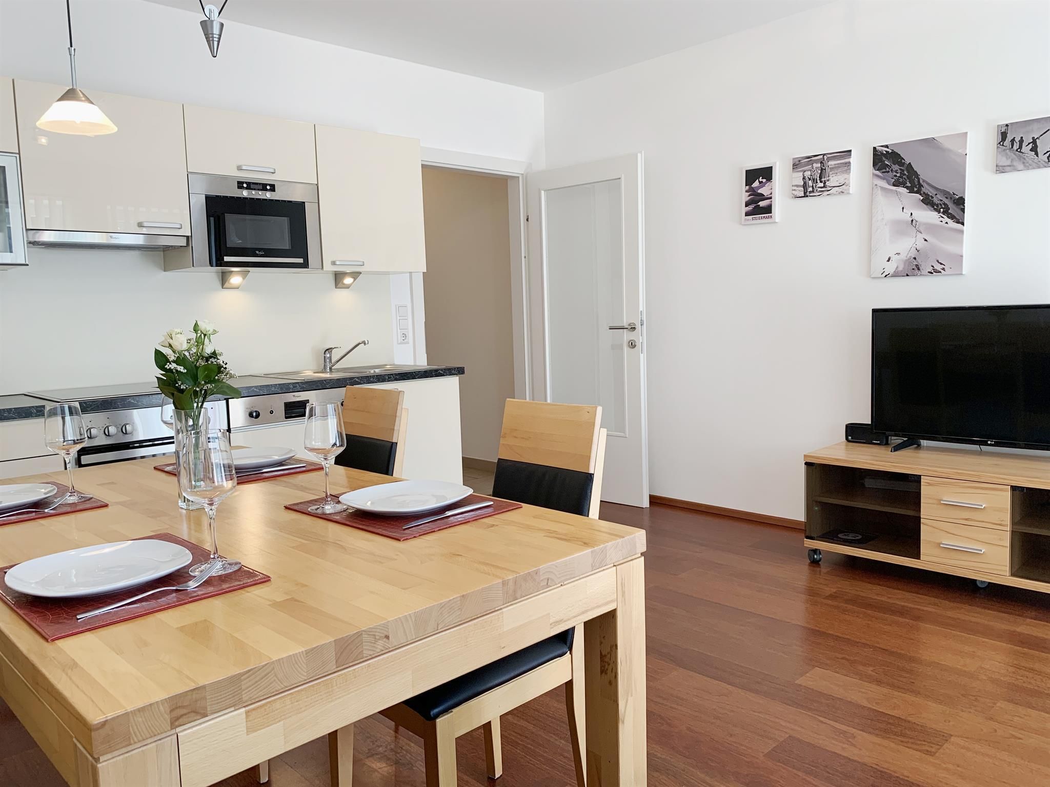 Das Appartement Jana ist sehr geschmackvoll und modern ausgestattet. Auf einer Wohnfläche von 50 m² verteilen sich ein großzügiger Wohnraum mit voll ausgestatteter Küche, Sofa mit TV, Balkon mit tollem Blick auf die Hochwurzen und Planai, ein separates Schlafzimmer mit Doppelbett und Doppelschlafsofa und ein Badezimmer mit Dusche. Gelegen ist das Appartement im 1. Stock des Appartementhauses und insgesamt finden 6 Personen Platz. Ein eigener Skiabstellraum sowie ein Parkplatz im Carport direkt vor dem Haus runden das Angebot ab. Verbringen Sie im App. Jana einen tollen Sommer- wie Winterurlaub – gerne Autofrei.