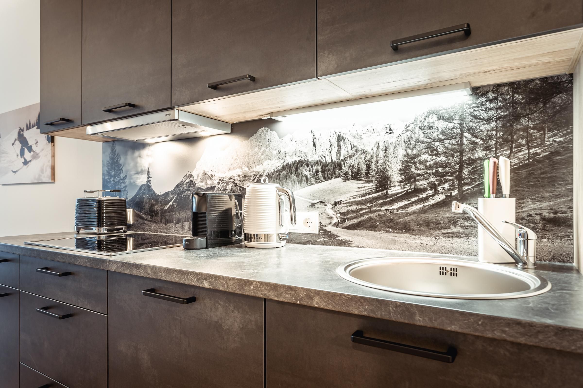 Eben alles was man so braucht. By the way: Das Auto kannst du in der Tiefgarage lassen. Servus im Gustav – 8 Appartements von Smart bis Sky – außerdem mit dabei: Private Sauna im Appartement, eigene Terrasse oder Balkon Top 8 hat keine Balkon, komplett ausgestattete Küchen mit allem PiPaPo, 1-2 Schlafzimmer und Bäder sowie eine Aussicht nach Westen auf die Hochwurzen und das eine oder andere Chi-Chi.