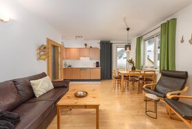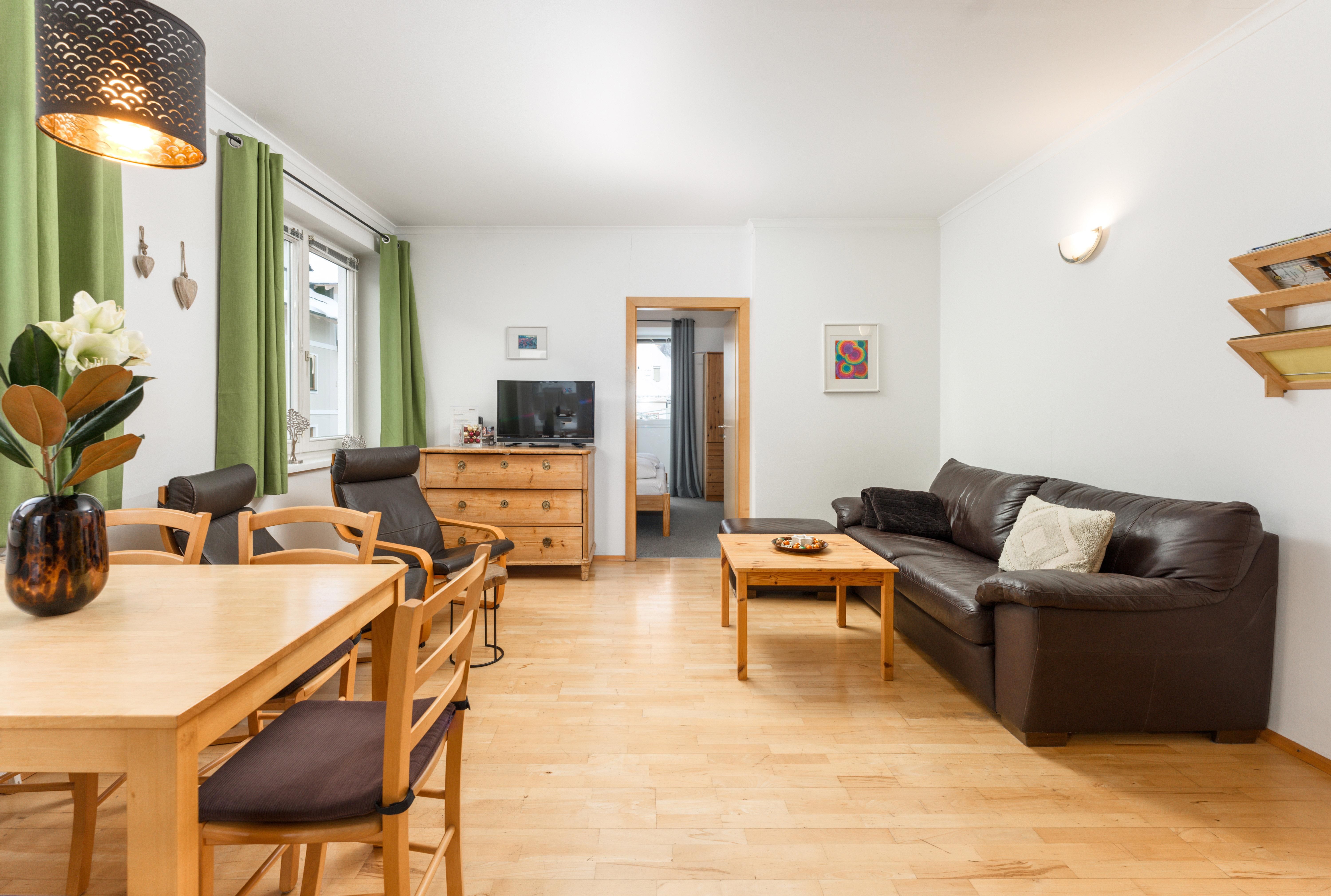 Centro Top 8 - dieses Appartement liegt im 1. Obergeschoss des Hauses Centro und bietet auf 56 m² Wohnfläche Platz für 2-4 Personen. Es verfügt über ein separates Schlafzimmer, ein Badezimmer sowie eine gemütliche Wohnküche. Von dieser erreichen Sie auch einen kleinen, südseitigen Balkon mit Ausblick auf die Planai und das Stadtzentrum. Das Appartement besticht durch seine Gemütlichkeit. Es ist einfach aber komfortabel ausgestattet.