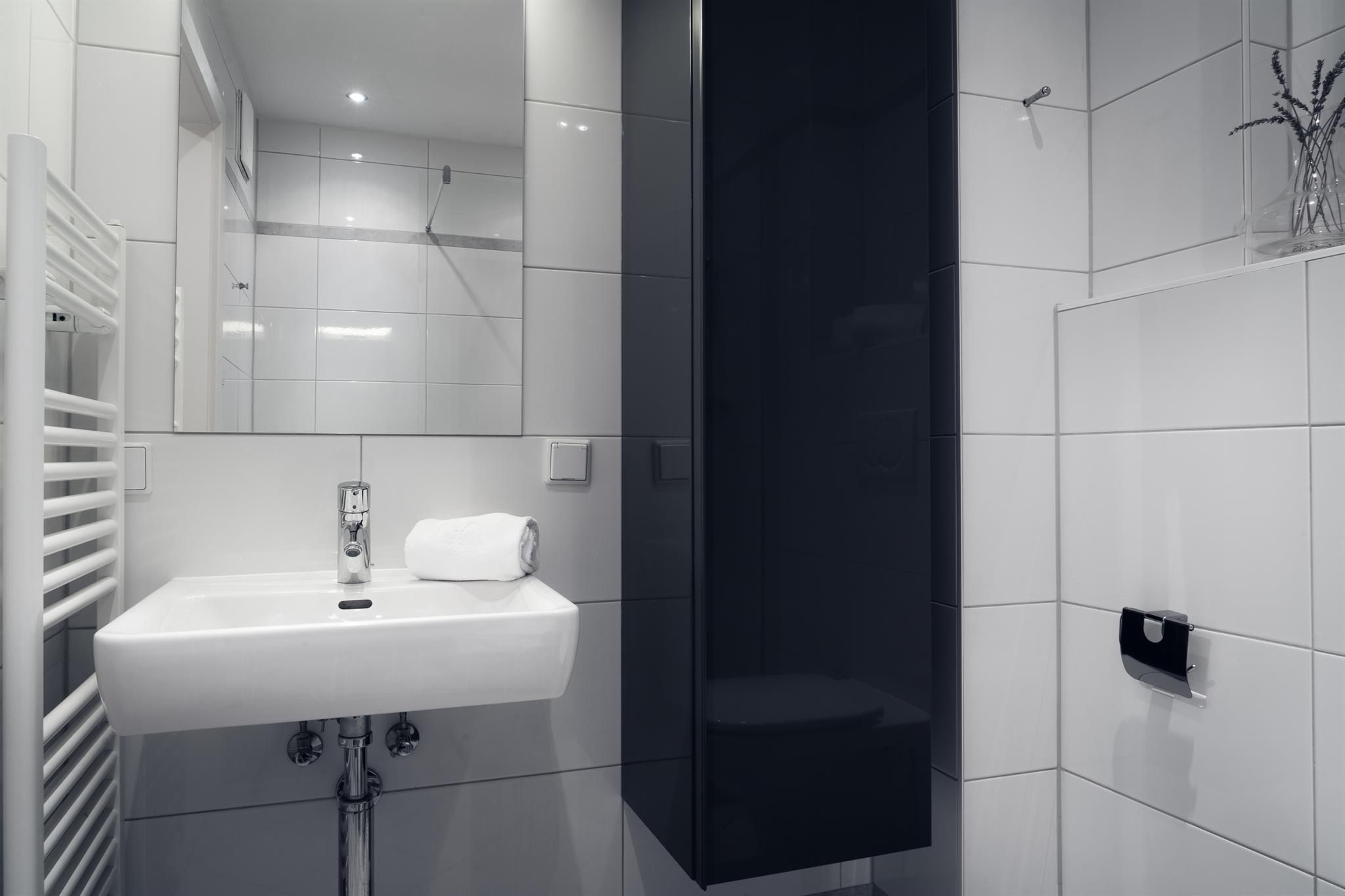 - 1 Badezimmer mit Dusche, Waschtisch und WC