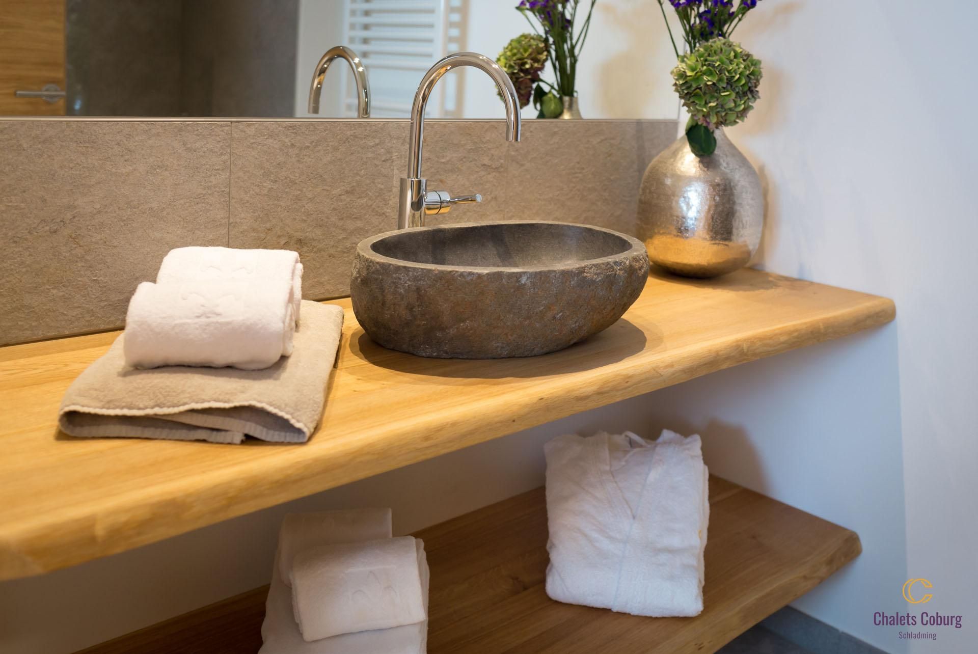 • 1 Bad mit Natursteinbecken undRegendusche