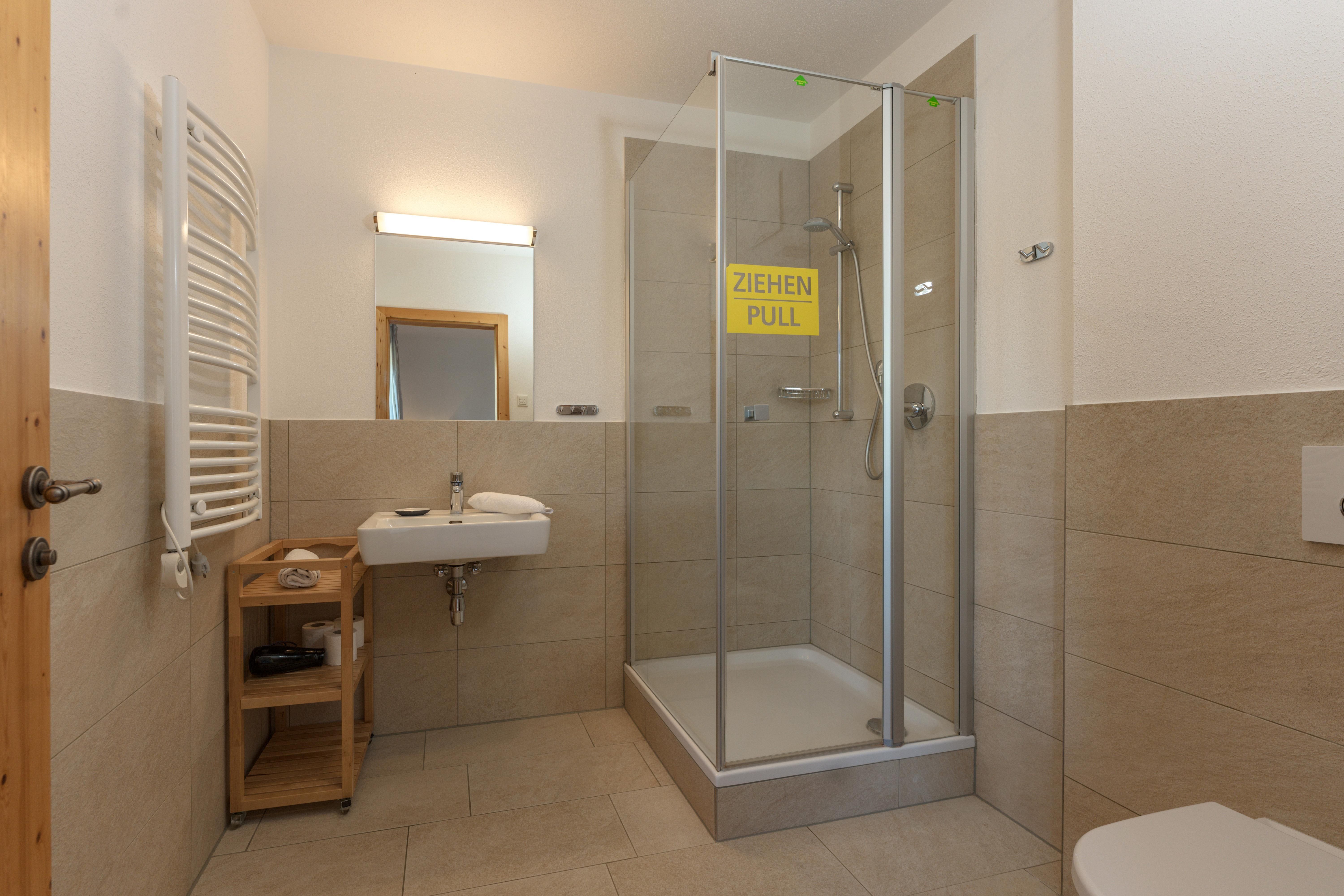 - 1 Schlafzimmer mit Doppelbett und einem Einzelbett + Badezimmer (Dusche, WC)