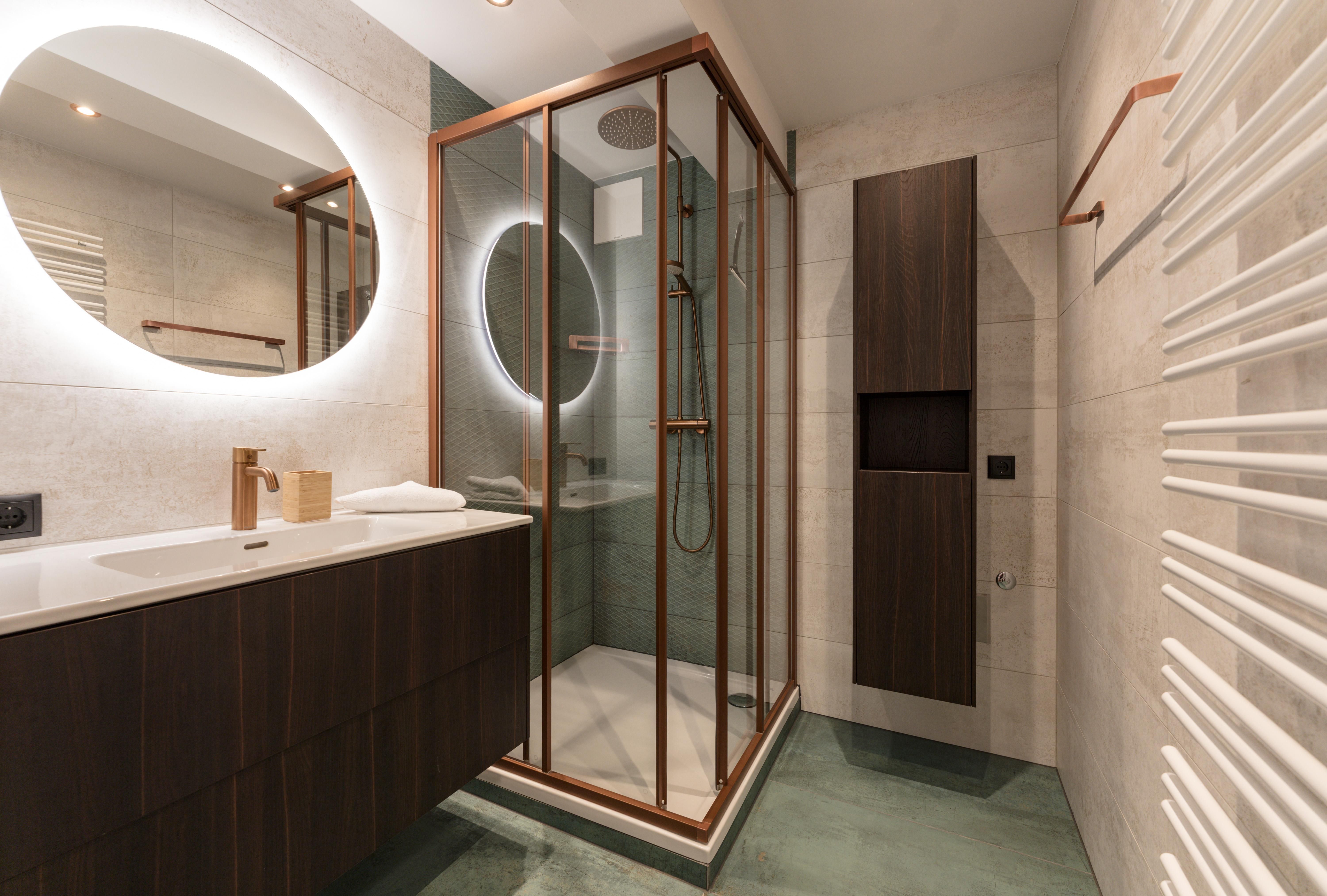 - 2 Badezimmer mit Dusche und Waschtisch