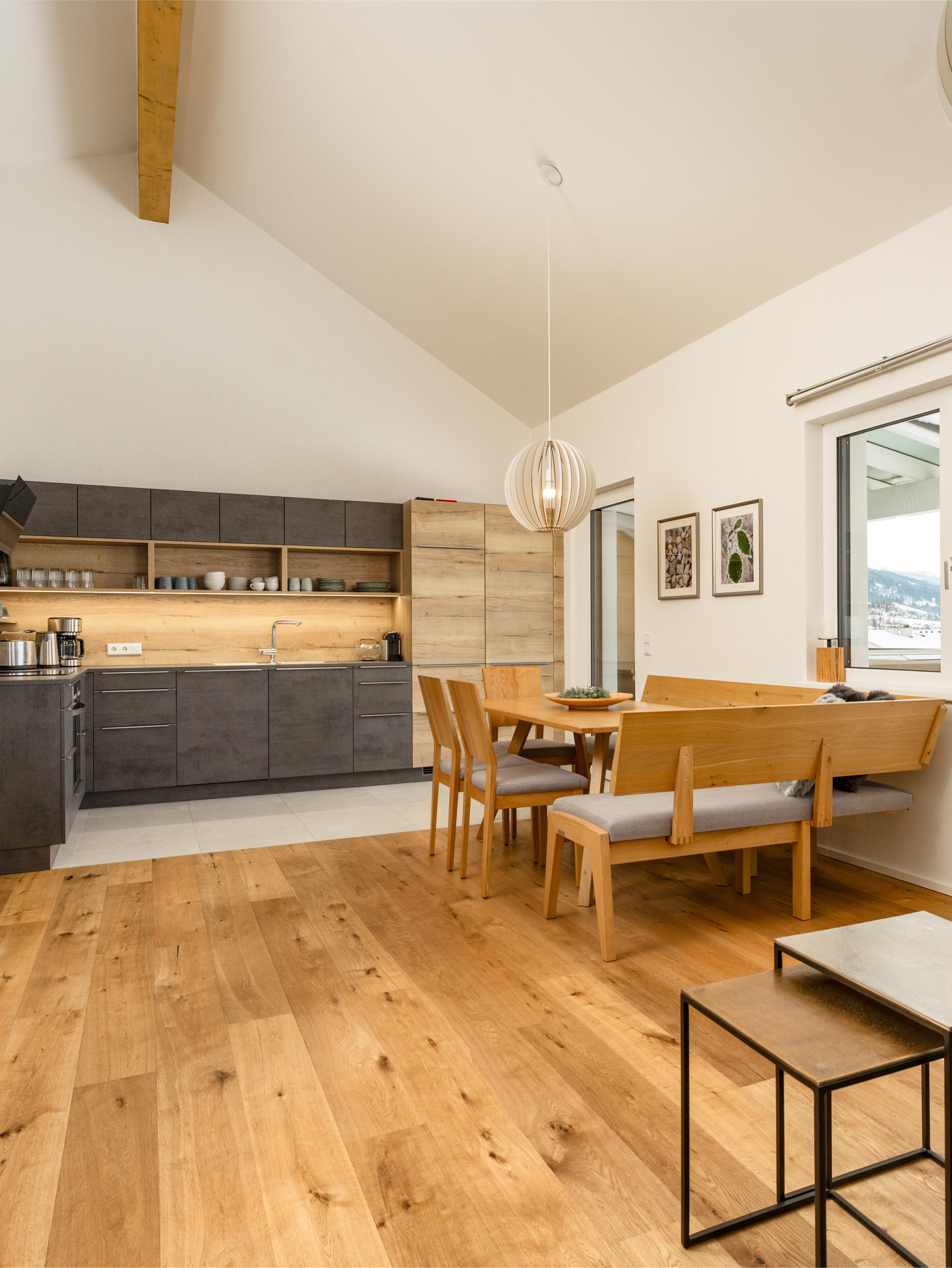 Das wunderschöne und top ausgestattete Appartement „The Nest in Aich“ verfügt über eine Wohnfläche von 78m² und bietet Platz für 8 Personen. Die Räumlichkeiten teilen sich in eine großzügige, voll und hochwertig ausgestattete Wohnküche mit Esstisch und Schlafsofa, in 3 separate Schlafzimmer (2x Doppelbett + 1x Stockbett), ein Badezimmer mit Dusche, Waschmaschine & Trockner und WC sowie in ein separates WC. Annehmlichkeiten wie 2 Carport Parkplätze, kostenfreies Wlan, Kabel TV sowie ein Skiabteil mit Skischuhheizung stehen kostenfrei zur Verfügung.