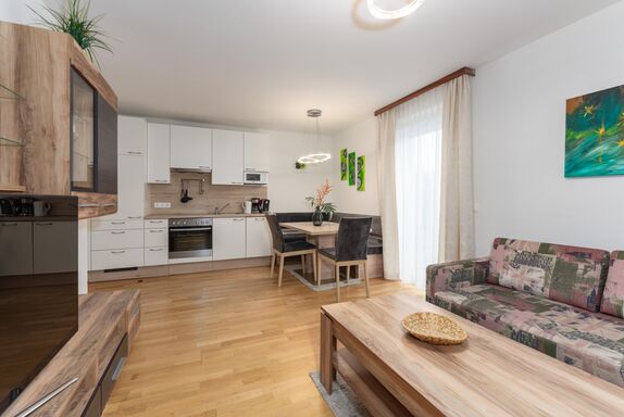 Geboten werden im Haus Martina 4 Nichtraucher-Appartements, die auf Wohnflächen von 45-60 m², Platz für 2 - 6 Personen bieten. Jede Einheit bietet eine voll ausgestattete Küchenzeile, mit Esstisch, ausziehbarem Sofa und Flatscreen, wahlweise ein oder zwei Schlafzimmer mit Zirbenbett, ein Badezimmer mit Dusche, separate Toilette sowie eine Terrasse oder Balkon mit tollem Ausblick auf die umliegende Bergwelt. Neben den bereits erwähnten Annehmlichkeiten stehen zusätzlich ein Skiraum mit Skischuhheizung sowie Parkplätze direkt vor dem Haus bereit. Einem entspannten Urlaub steht in diesem Feriendomizil nichts mehr im Wege.