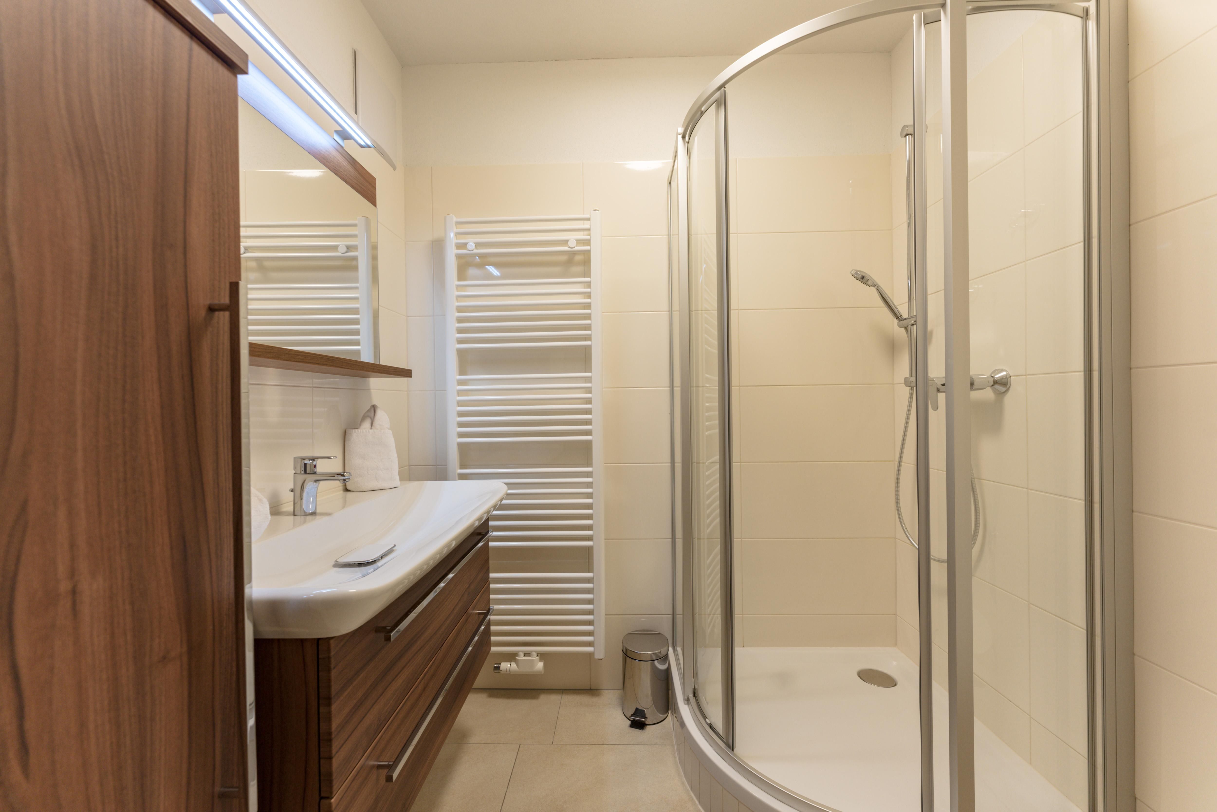 - 1 Badezimmer mit Dusche und Waschtisch