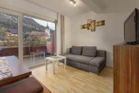 Moderne Architektur verbunden mit modernem angenehmen Interieur Design - das zeichnet die 4 Ferienwohnungen im Haus Crystal aus. Das Appartement- und Geschäftshaus befndet sich in unmittelbarer Nähe zum Zentrum von Schladming und zur Planai Talstation. Frühmorgens liegt schon ein köstlicher Duft von frischen Brötchen und Kaffee aus der gegenüberliegenden Bäckerei in der Luft. Einem guten Start in den Tag steht nichts mehr entgegen! Wir bieten 4 Ferienwohnungen im Haus Crystal an, zwei für je 4 bis 6 Personen und zwei für 8 Personen. Jedes Appartement verfügt über ein sehr schöne sonnige Terrasse mit einem herrlichen Ausblick, 3 davon südseitig, eine Wohnung befindet sich ostseitig. Pro Appartement steht ein Tiefgaragenplatz zur Verfügung und alle verfügen über WLAN Internet. Die Busstation direkt vor dem Haus uvm. garantieren einen angenehmen und autofreien Urlaub! Im Parterre befindet sich ein Friseur, eine Tee/Kaffeebar und Bistro sowie ein Blumengeschäft. Wenn Sie Ruhe, modernes Design und die Nähe zum Zentrum schätzen, dann ist das Haus Crystal das Richtige für Sie!