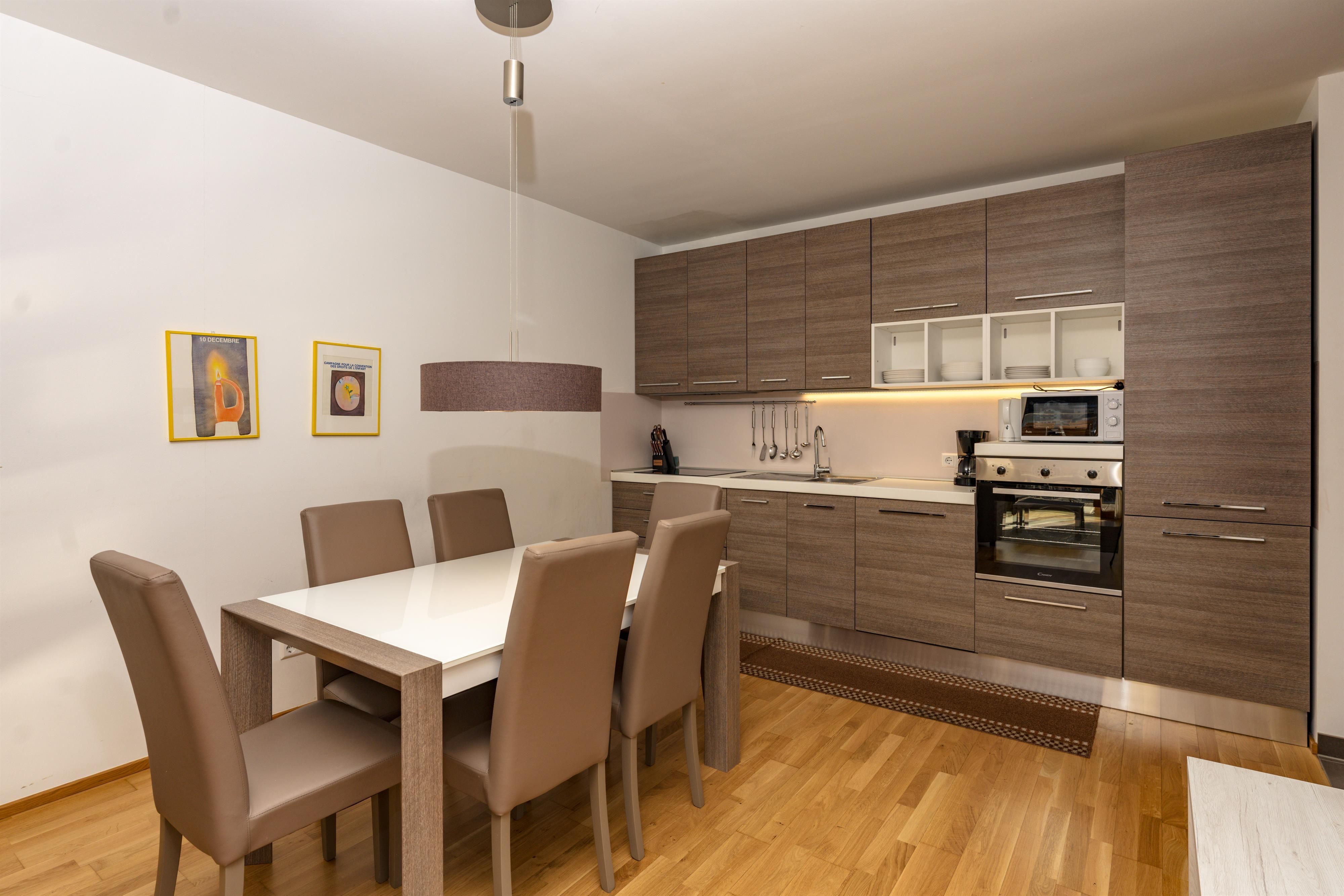 Zu dem Appartement gehört eine Loggia, ausgerichtet nach Süden, die vom Wohnraum sowie von einem Schlafzimmer aus zugänglich ist. Kostenfreies WLAN & Kabel TV lassen für den Gast keine Wünsche offen