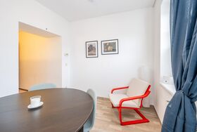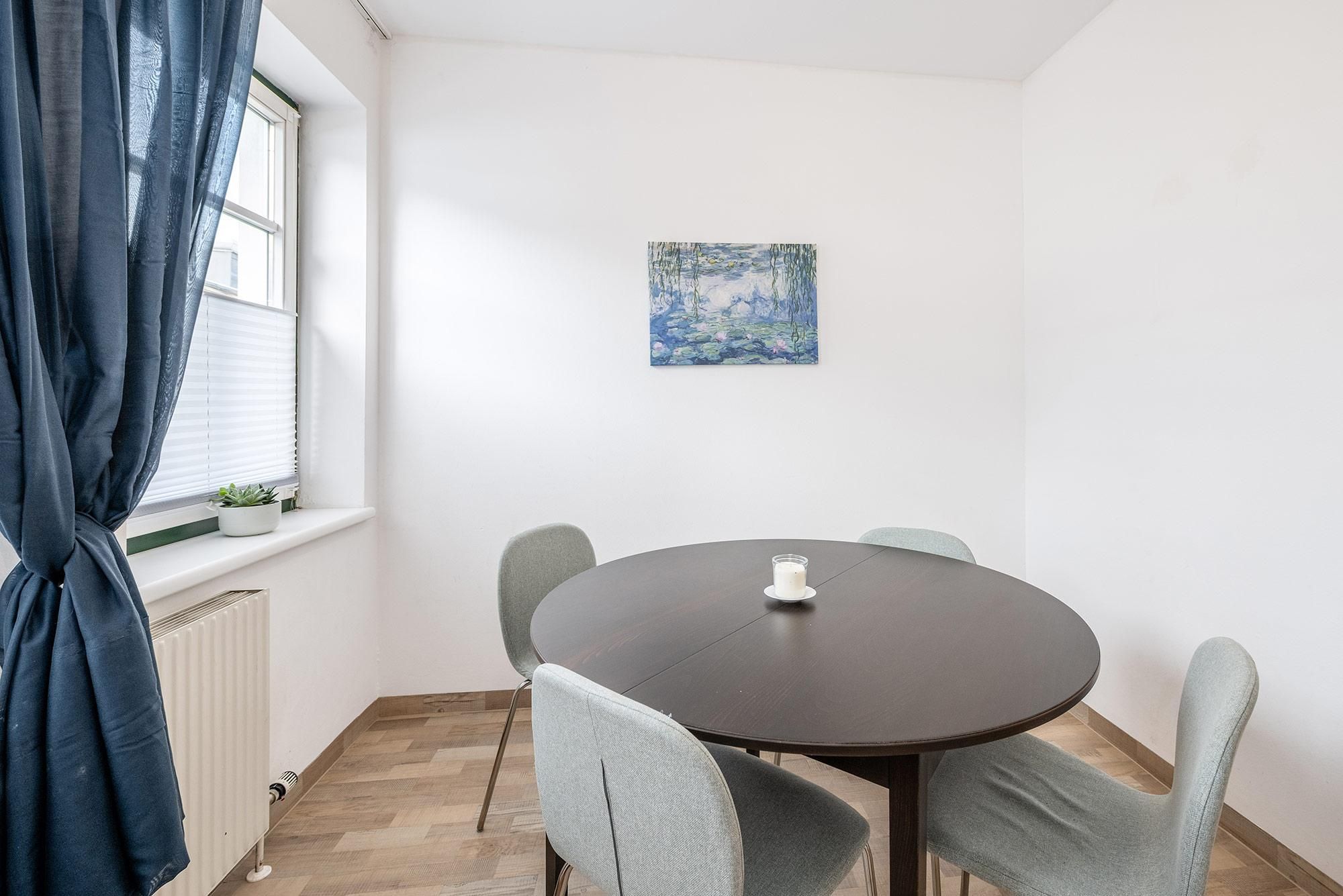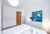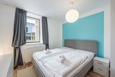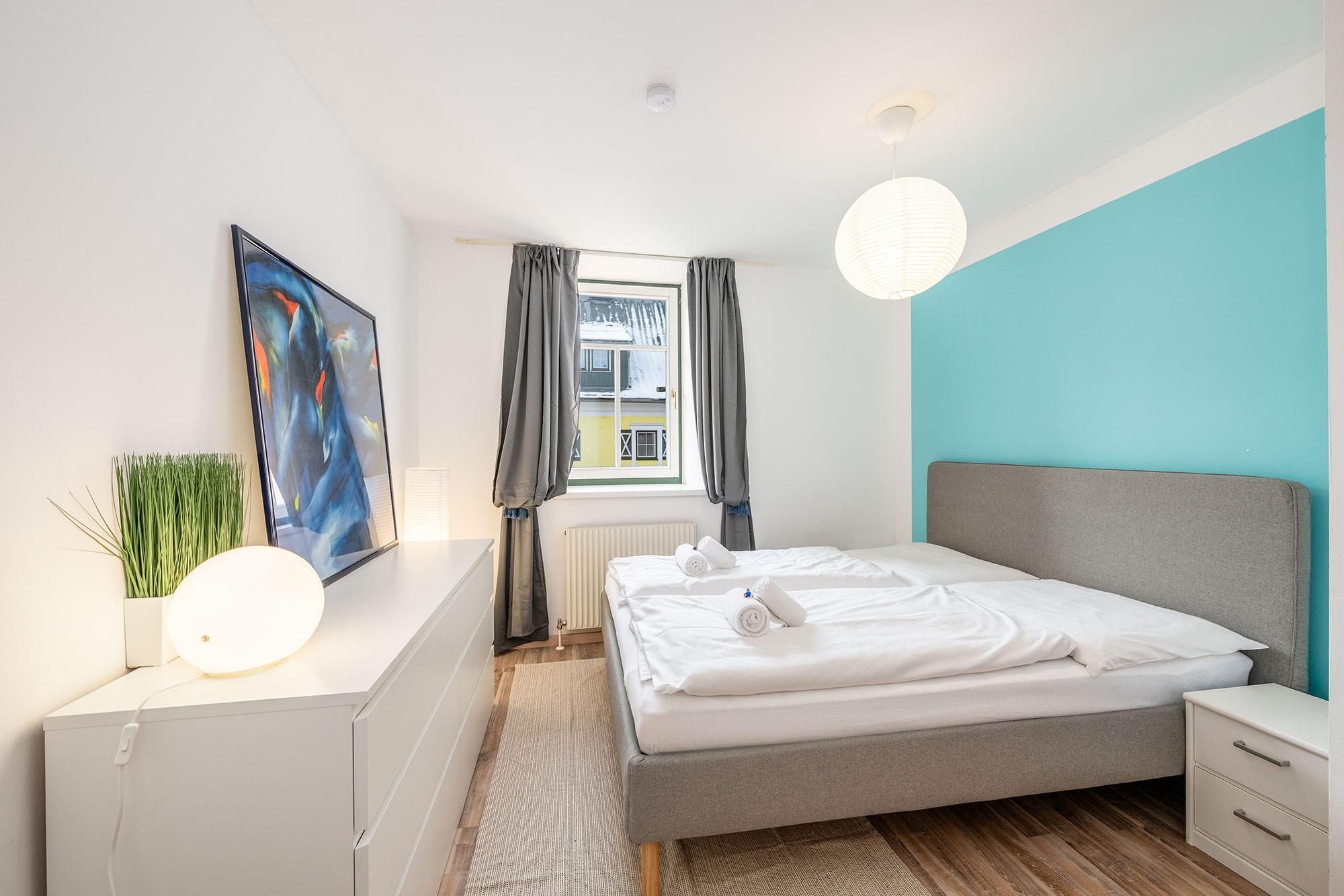 Auf 33 m² im 1. Stock bietet das Apartment ein komfortables 180 cm Doppelbett, WLAN, ein Badezimmer mit separater Toilette sowie eine funktionale Küche mit allem, was man für einen kurzen Aufenthalt benötigt.