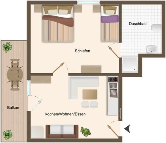 Ferienwohnung Nr. 5 hat 1 Wohnküche mit Flach-TV,