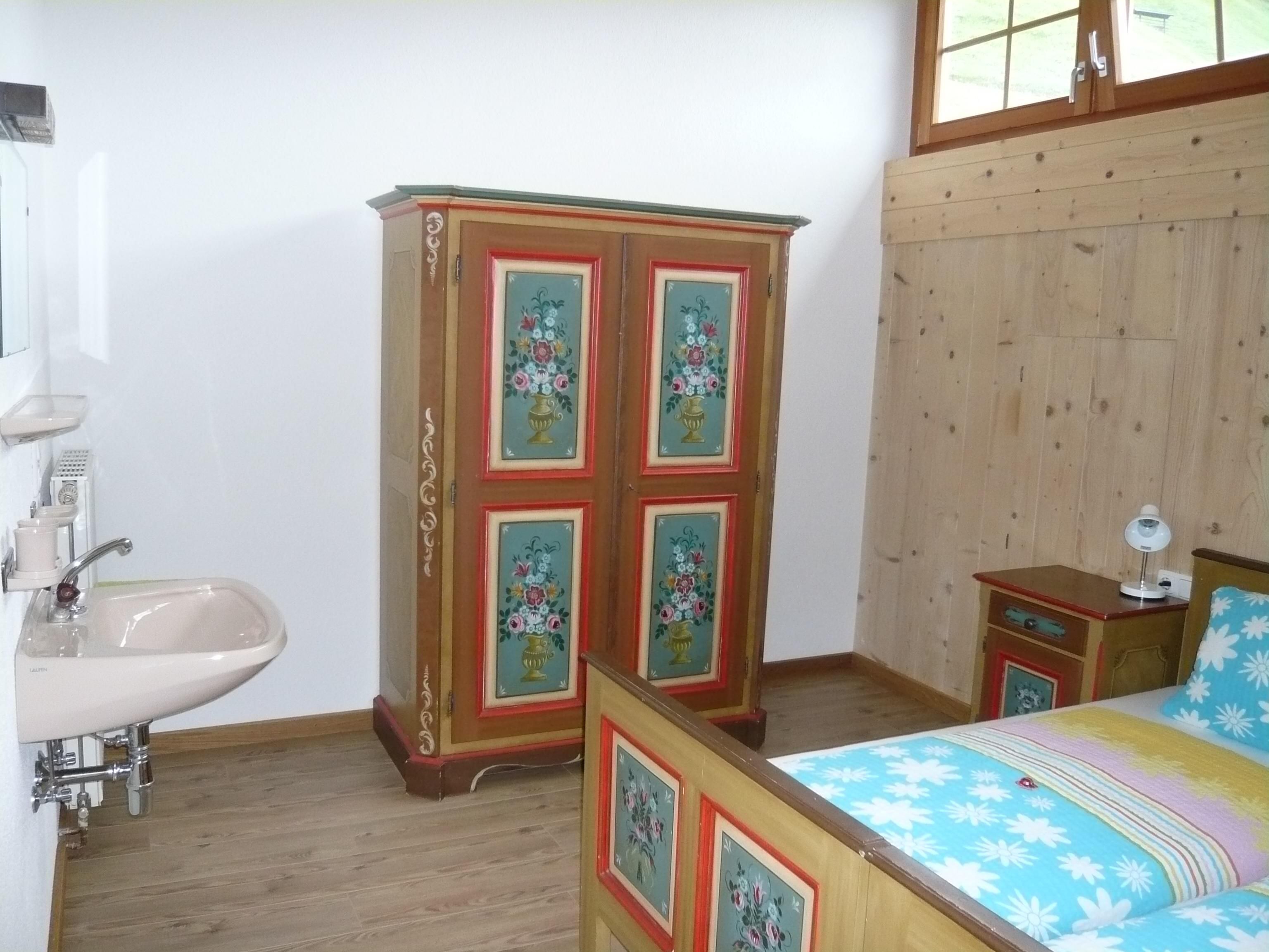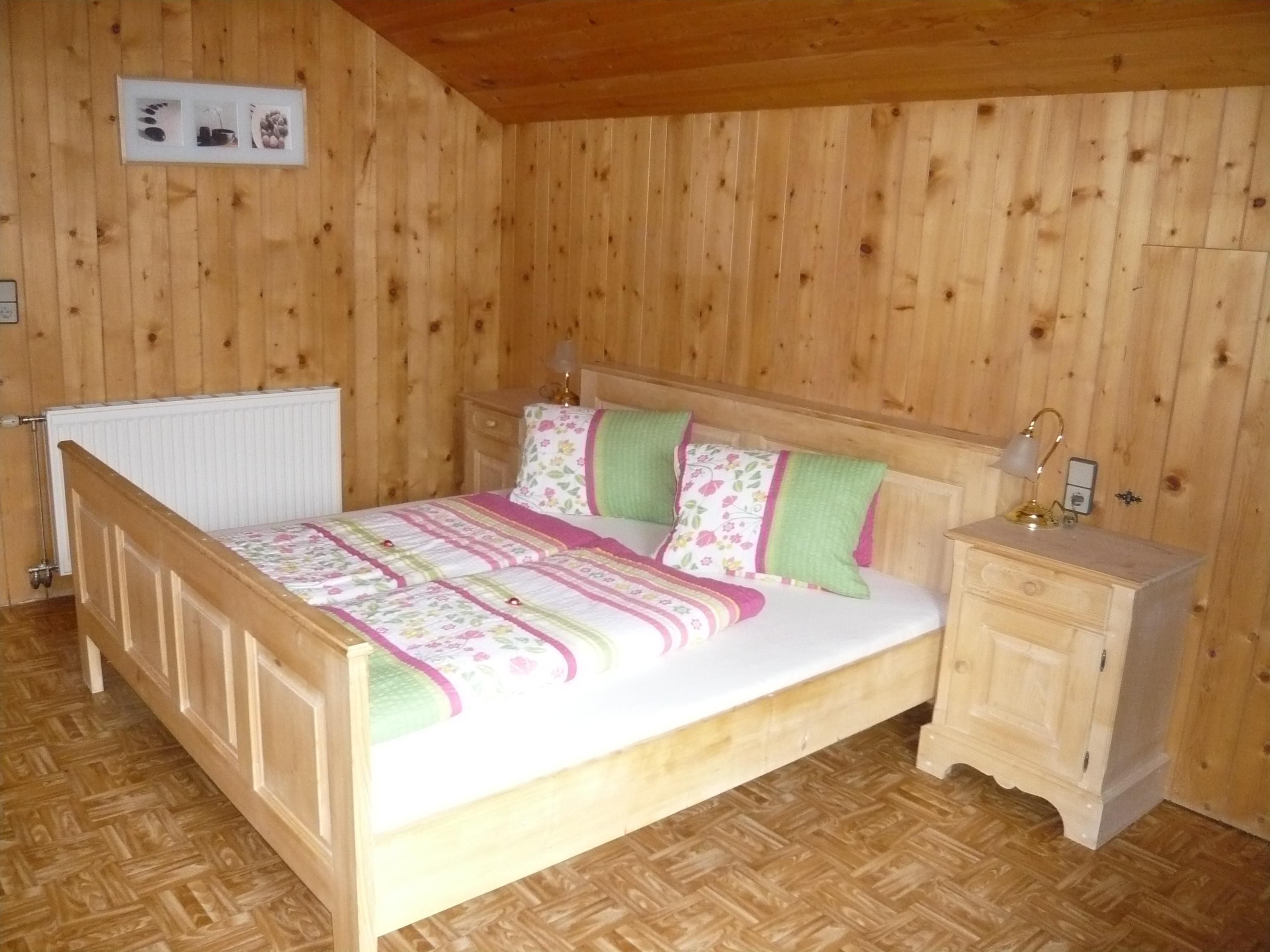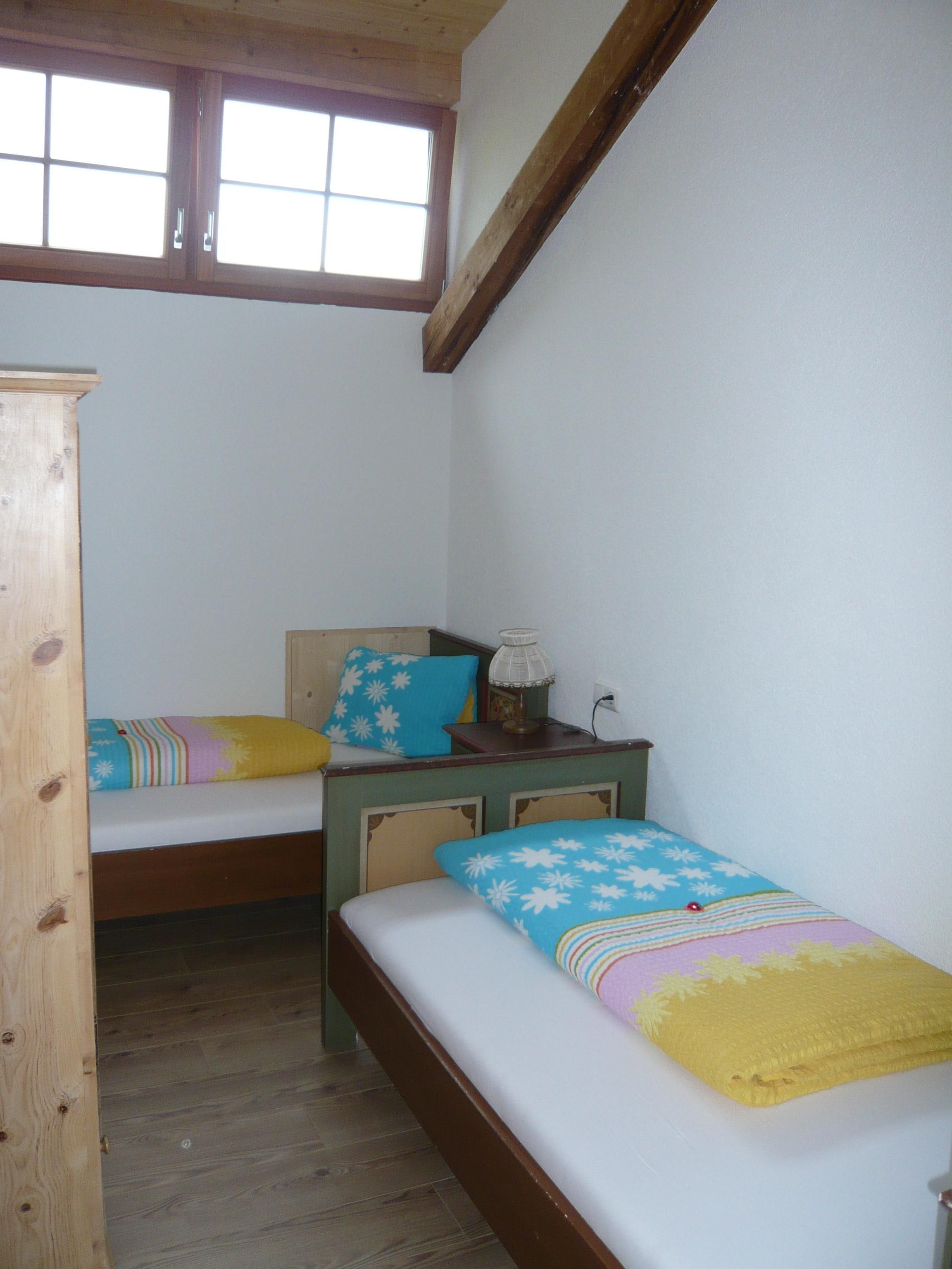 Die Ferienwohnung Bergblick mit 40m² verfügt über 2 Schlafzimmer, eine geräumige Wohnküche und Bad mit Dusche und WC.