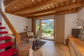 Die ca. 80m² großen Ferienwohnungen sind weitgehend gleich ausgestattet. Jede Wohnung erstreckt sich über zwei Stockwerke. Dem Erdgeschoss ist eine große Terrasse vorgelagert, von der man einen herrlichen Blick über den See und die Berge hat. Im Obergeschoss kann man denselben Blick von einem großen Balkon aus genießen.