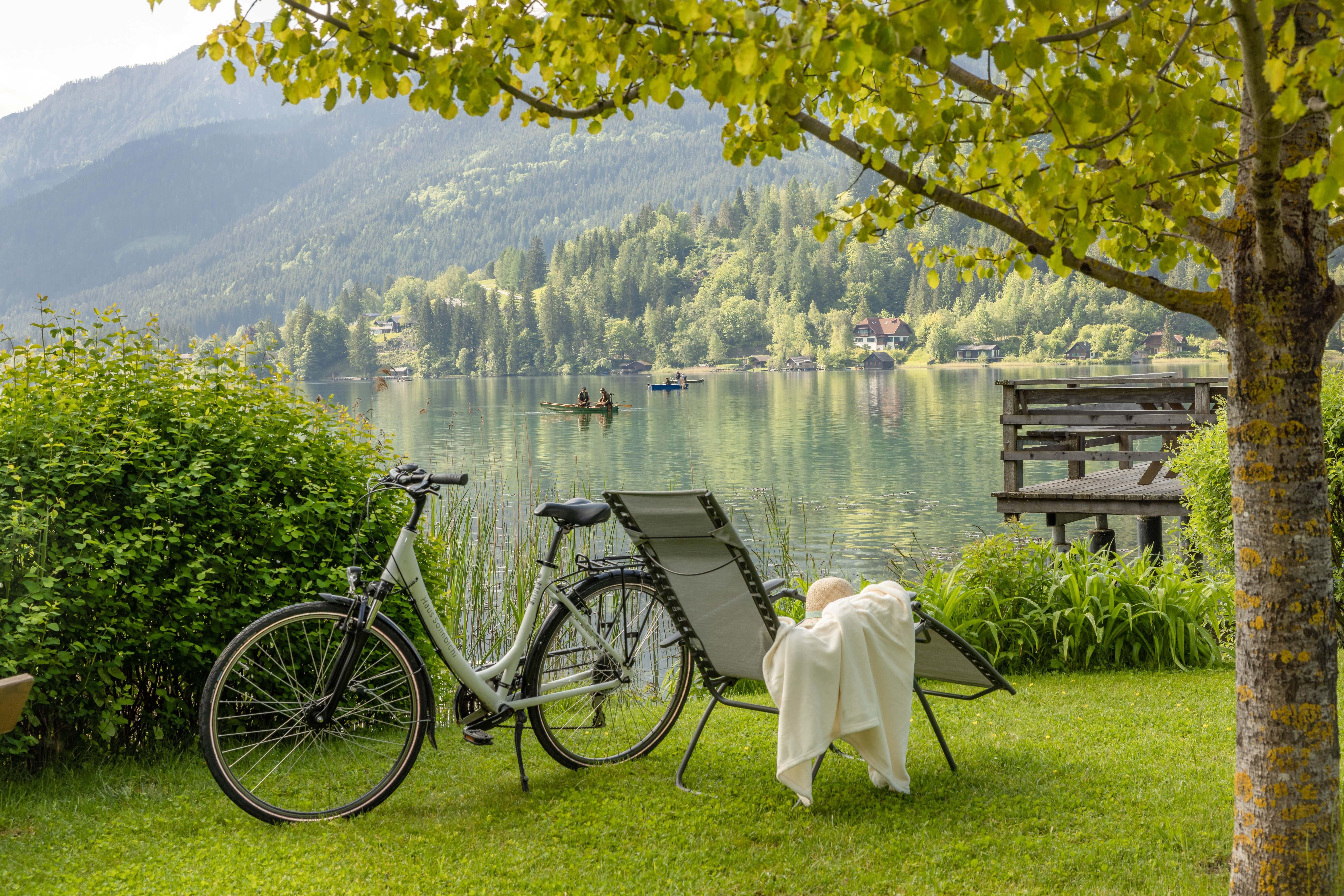 Der hauseigene Badeplatz befindet sich direkt vor Ihrer Ferienwohnung. Entspannen Sie sich am Strand oder erkunden Sie die nahe Bergwelt zu Fuß oder mit dem Rad.