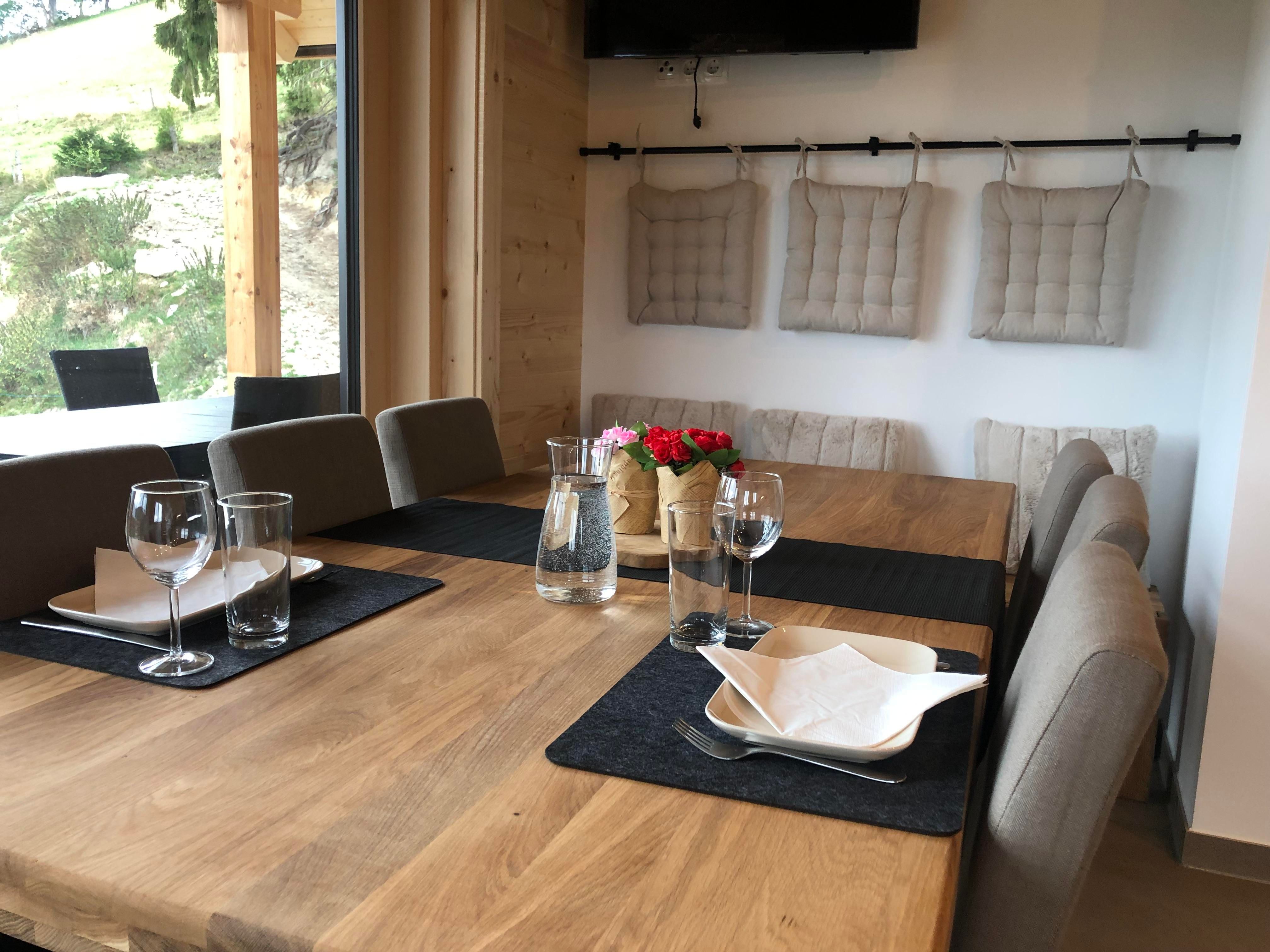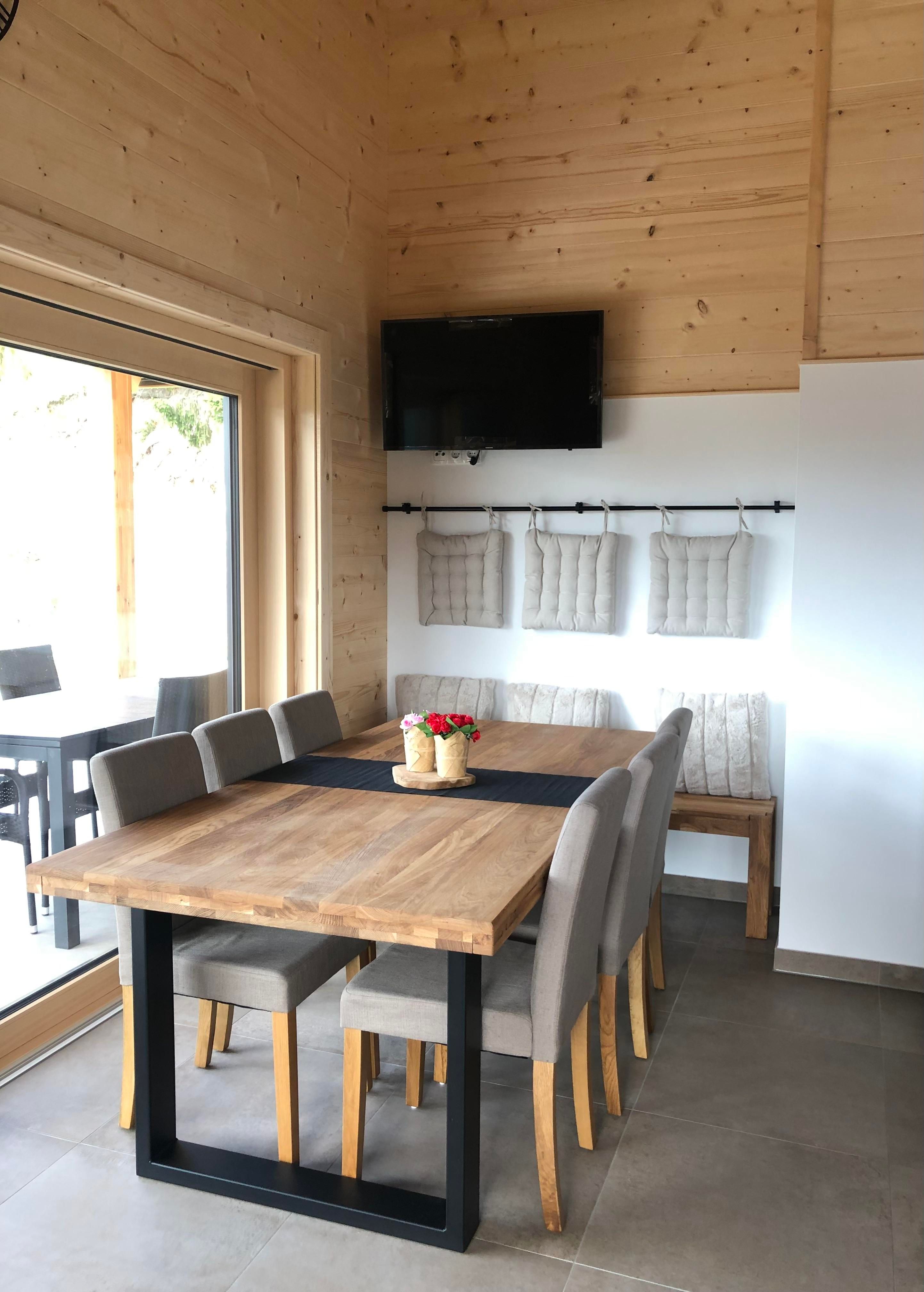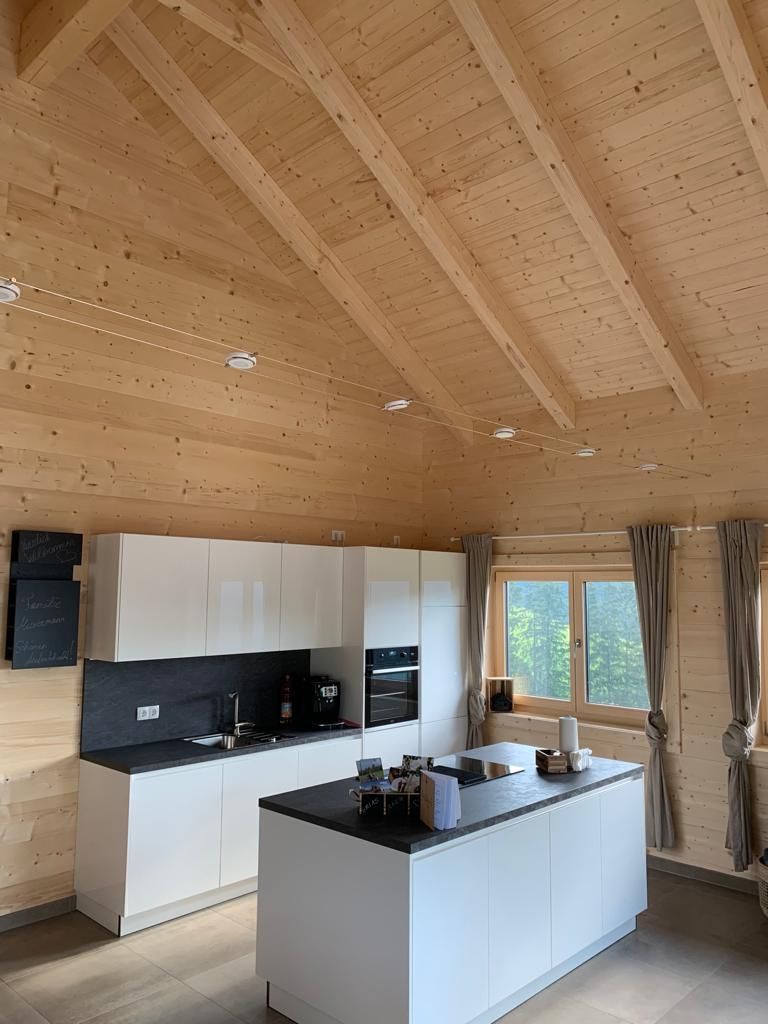 Im Wohn-/Essbereich können Sie den Abend auf der Couch vor dem Fernseher oder auf der Terrasse vor dem Haus ausklingen lassen. Die voll ausgestattete Küche verfügt über Geschirrspüler, Mikrowelle, E- Herd, Backrohr, Kaffeemaschine, Wasserkocher, Eierkocher, Toaster und genügend Geschirr.