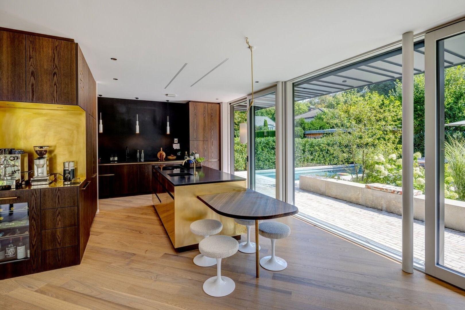Der großzügige Wohn-, Ess- und Küchenbereich mit Designküche (u. a. Quooker, Dampfgarer, Weinkühlschrank, Siebträgermaschine) lädt zu gemeinsamen Stunden ein. Vier Schlafzimmer, drei Bäder (teilweise en suite), ein zusätzlicher Familienbereich, Arbeitszimmer sowie eine private Sauna bieten höchsten Komfort.