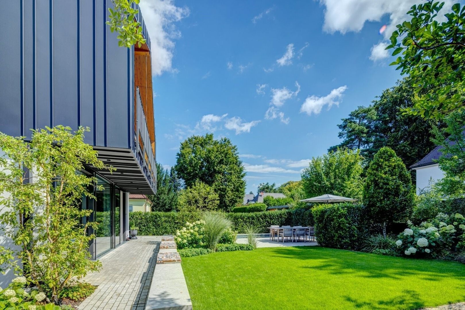 Der preisgekrönte Garten mit Außenpool sorgt für erholsame Urlaubstage. Zwei Garagenstellplätze (inkl. E-Ladestation) sowie weitere Parkmöglichkeiten stehen zur Verfügung. Haus-, Garten- und Poolpflege sind im Mietpreis enthalten.