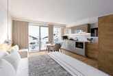 Vivo sportivo mit ca. 25 m² und Balkon steht für maximale Nähe zum Berg. Das Apartment mit einem separaten Doppelzimmer ist das Basecamp für Alle. Weiters bietet es ein separates WC, ein separates Badezimmer mit Dusche und eine voll ausgestattete Wohnküche mit einer großen Couch (Schlafsofa für eine 3. Person), Geschirrspüler, Kühlschrank, 2-Platten-Induktionskochfeld, Mikrowelle mit Heißluftfunktion, Essbereich, Weinkühlschrank uvm.