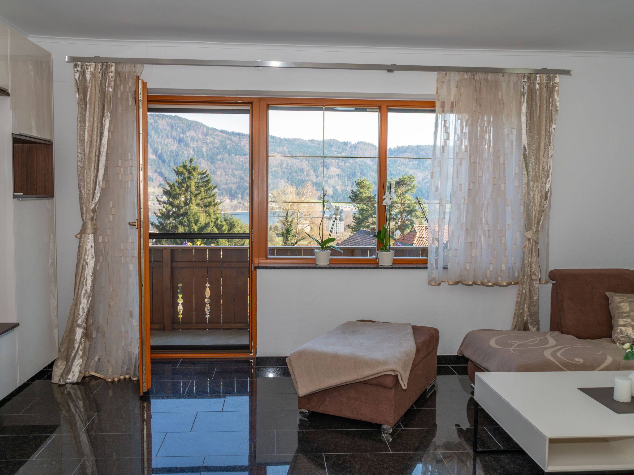 Ossiacher Seeblick, 3-Zimmer-Wohnung im Obergeschoss. Objekt geeignet für 4 Erwachsene. Geräumig und hell, sehr schön eingerichtet: Wohnzimmer mit Sat-TV (Flachbildschirm). Ausgang zum Balkon. 1 Zimmer mit 2 Betten (90 cm, Länge 200 cm), Dusche/WC und Sat-TV. 1 Doppelzimmer mit begehbarem Kleiderschrank. Grosse Küche (Backofen, Geschirrspüler, 4 Induktionskochplatten, Toaster, Wasserkocher, Mikrowelle, elektrische Kaffeemaschine) mit Esstisch. Bad/Dusche, sep. WC. Bodenheizung, Fussbodenheizung. Grosser Balkon. Balkonmöbel. Sehr schöne Panoramasicht auf den See und die Berge. Zur Verfügung: Waschmaschine, Wäschetrockner, Haartrockner. Internet (WLAN, gratis). Parkplatz (1 Auto) beim Haus. Bitte beachten: geeignet für Familien. Nichtraucher-Unterkunft. Rauchmelder. Im Kinderzimmer Beamer mit Leinwand. Im Wohnzimmer riesiger TV.