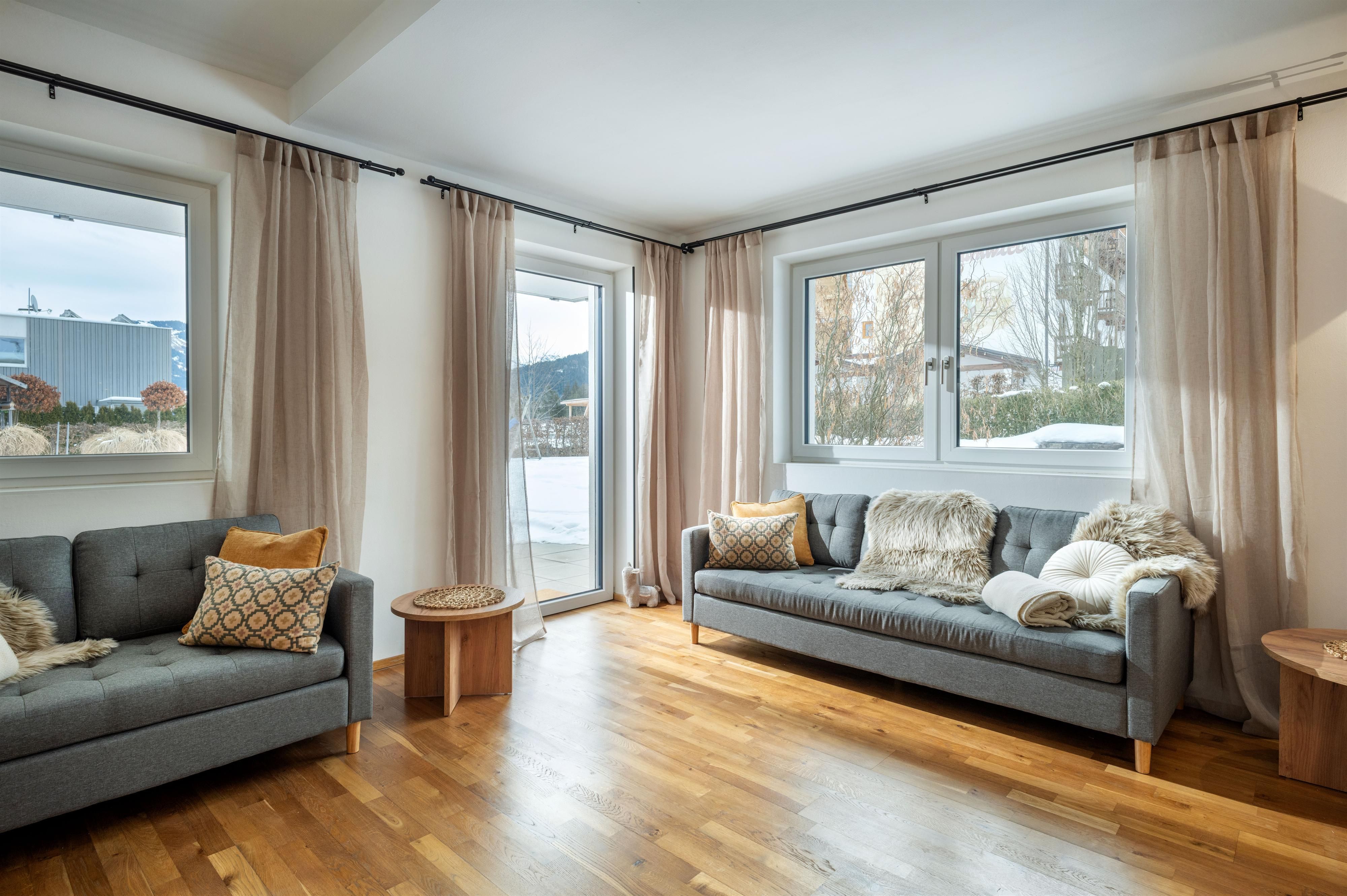 Bei ausreichender Schneelage verläuft die Langlaufloipe direkt hinter dem Haus. Die Wohnung bietet einen wunderschönen Panoramablick auf die Berge.