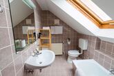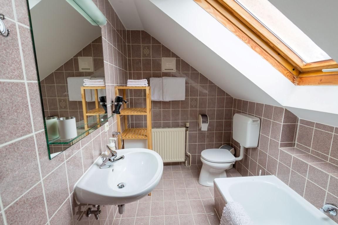 Badezimmer mit Badewanne; schräge Wände