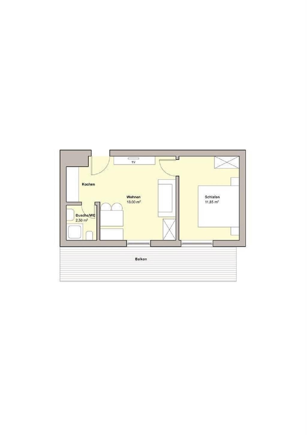 Neu renovierter Wohn-/Schlafraum mit Eßecke und Doppelcouch zum Ausziehen, Küchenblock, 1 Doppelzimmer, DU/WC und Balkon zur Südseite.
