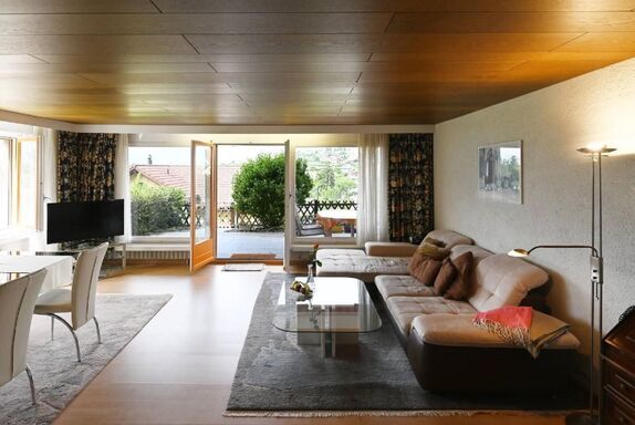 Appartement Alpenblick, 2-Zimmerwohnung, Grundfläche zirka 80 m2, mit Terrasse, an zentraler, sonniger Lage gegen Süd-West mit schöner Sicht auf See und Berge,etwa 100 Meter vom See entfernt, klassifiziert mit 4 Sternen. Die Wohnung verfügt über ein Schlafzimmer mit Doppelbett und Kleiderschrank, TV. Im Wohn-Esszimmer finden Sie einen Esstisch mit 4 Stühlen, Polstermöbel, Telefon, Farb-Kabel-TV. vor dem Wohnzimmer möblierter Terrasse. Auf Wunsch 1 oder 2 Betten im hinteren Teil des Wohnzimmers(Mehrpreis für Belegung durch mehr als 2 Personen, plus Fr. 10.- je zusätzliche Person pro Nacht) . Elektrische Küche mit 4-Plattenkochherd, Kühlschrank mit Tiefkühlabteil, Geschirrspüler, Kaffeemaschine, alles komplett eingerichtet. Badzimmer mit WC, Lavabo, Badewanne und Waschmaschine mit Tumbler. Restaurant und Hallenbad finden Sie im rückwärtigen Haus, Sauna, Biosauna, Solarium und Wärmekabine können mitbenutzt werden. Garage für Gäste mit einem Motorfahrzeug obligatorisch. Ausflugsmöglichkeiten: z.B Berge, See, Dampfschiffe, Museen, Tierpark, etc. Sonstige Wohnzimmerausstattung (Wohnzimmer1): Auf Wunsch mit zusatz Bett Sportmöglichkeiten in der Umgebung: Angeln, Eislaufen, Golfplatz, Mountainbiking, Paragliding, Radtouren, Reitplatz / Reitmöglichkeiten, Rudern, Ski (alpin), Ski (Langlauf), Tauchen, Tennis, Segeln Basisinformationen - Erlaubte Haustiere: keins - Etage, auf der sich das Objekt befindet: EG - letzte umfassende Renovierung: 2019 - keine Einsicht von der Straße - Schlafzimmeranzahl: 1 - Badezimmeranzahl: 1 Top Merkmale - WLAN - Klimaanlage: keine - Heizung: überall - Garten: zur alleinigen Nutzung - komplett eingefriedet (mit Mauer, Zaun oder Hecke) - Outdoorpool - ㄴ zur alleinigen Nutzung - Private PKW-Stellplätze insgesamt für diese Unterkunft: 1 Schlafen im Wohnbereich - 2x Zustellbett - Schlafzimmer abdunkelbar Schlafzimmer 1 - Doppelbett (1,80m Breite) Badezimmer Badezimmer 1 - Badewanne mit Duschvorrichtung - Waschbecken - Toilette - Föhn Gäste-WC - Toilette Sanitäre Einrichtungsgegenstände in der Ferienunterkunft - Solarium Wellness - Sauna Kochen/Wohnen - Kaffeemaschine: Kaffeemaschine - Kühl-/Gefrierschrank: Tiefkühlschrank, Kühlschrank - Herd: Elektroherd, Herd - Dunstabzugshaube - Backofen - Toaster - Mikrowelle - Wasserkocher - Spülmaschine - Anzahl Wohnzimmer: 1 Entertainment - Fernseher: TV - Radio - CD-Player Hauswirtschaft - Waschmaschine: zur gemeinschaftlichen Nutzung im Gebäude - Wäschetrockner: zur alleinigen Nutzung im Objekt - Staubsauger Barrierefreiheit - Aufzug Außenbereich - Outdoormöbel Umgebung - Aussicht: Berg - nächstgelegene Ortsmitte: 20,0 km - Lebensmittelhandel: 50 m - Cafés/Restaurants: 50,0 km - Bahnhof: 7,0 km - Flughafen: 60,0 km - Autobahn: 8,0 km - See: 100 m - Bootsverleih - Berg-/Seilbahn: 2,0 km Besonderheiten - Anglerfreundlich