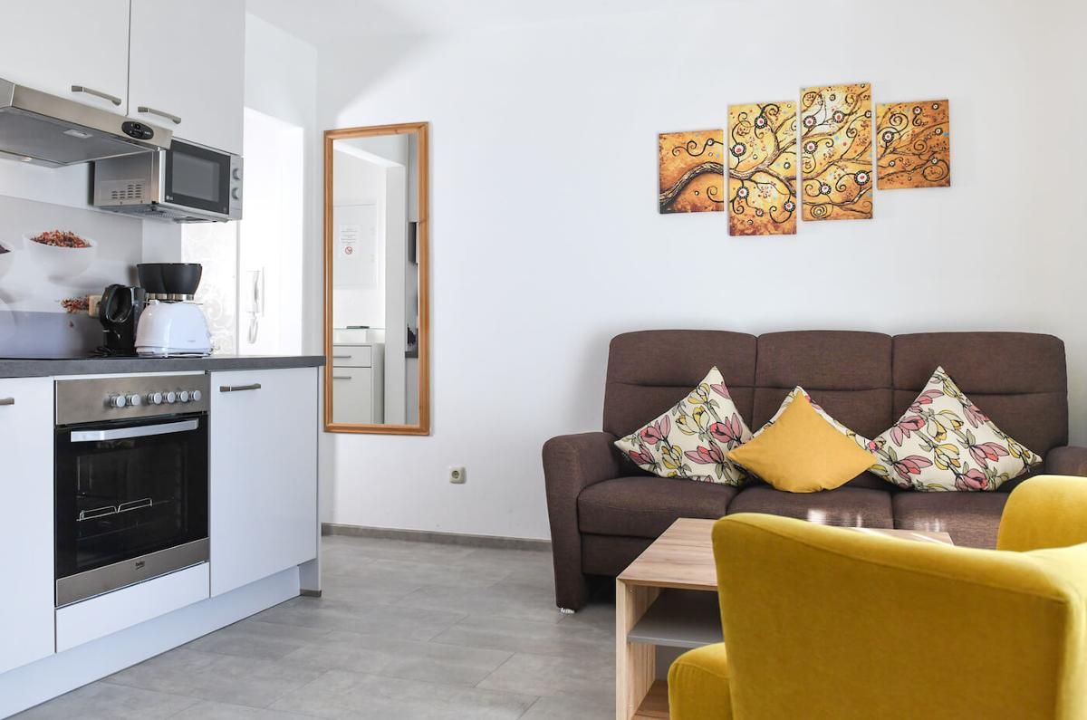 bequemer Couch, und einem kleinen Schlafzimmer mit zwei getrennten Betten. Dieses Appartement hat vom Deutschen