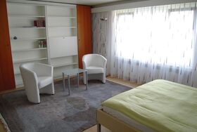 Appartement Alpemblick mit 4 Sternen klassifiziert an zentraler, ruhiger Lage mit Aussicht auf See und Berge. 1-Zimmer-Wohnung, Grundfläche zirka 45 m2, ohne Balkon, 1 französisches Bett für 2 Personen, Esstisch mit 2 Stühlen, Polstermöbel, genügend Schränke, Radio, Kabel-Farb-TV, Internet, Telefon. Badzimmer mit Badewanne und WC. Elektrische Küche mit 2 - Platten-Kochherd, Kühlschrank mit Tiefkühlabteil, Geschirrspüler. Hallenbad 28°C, Sauna, Biosauna, Solarium, Wärmekabine, Dachterrasse. Gemeinschaftswaschküche im Keller kann mitbenutzt werden. Für Gäste mit einem Motorfahrzeug steht ein Garagenplatz in der hauseigenen Einstellhalle auf der gleichen Ebene wie die Wohnung gegen Berechnung zur Verfügung.Gäste welche mit oeffentlichen Verkehrsmitteln anreisen, werden bei der Schiffstation abgeholt.Einkaufsmöglichkeiten, Bushaltestelle, Bankomat sind zirka 50 Meter vom Haus entfernt. Sonstige Schlafzimmereinrichtung (Schlafzimmer1): genügend Schränke, Polstermöbel, Esstisch mit 4 Stühlen, Radio, Farb-Kabel-TV, Telefon. Sicht auf See und Berge. Sportmöglichkeiten in der Umgebung: Angeln Basisinformationen - Erlaubte Haustiere: keins - Etage, auf der sich das Objekt befindet: OG2 - letzte umfassende Renovierung: 2009 - keine Einsicht von der Straße - Nichtraucherunterkunft - Schlafzimmeranzahl: 1 - Badezimmeranzahl: 1 Top Merkmale - WLAN - Heizung: teilweise - komplett eingefriedet (mit Mauer, Zaun oder Hecke) - Indoorpool - Private PKW-Stellplätze insgesamt für diese Unterkunft: 1 - ㄴ davon Garagenstellplätze: 1 Schlafen Schlafzimmer 1 - Schlafzimmer abdunkelbar Badezimmer Badezimmer 1 - Badewanne mit Duschvorrichtung - Waschbecken - Toilette Gäste-WC - Toilette Sanitäre Einrichtungsgegenstände in der Ferienunterkunft - Solarium Wellness - Sauna Kochen/Wohnen - Kaffeemaschine: Kaffeemaschine - Kühl-/Gefrierschrank: Gefrierfach, Kühlschrank - Herd: Zwei-Platten-Herd - Dunstabzugshaube - Toaster - Spülmaschine - Größe der Küche: 3 m² Entertainment - Fernseher: TV, Sat.-TV - Radio Hauswirtschaft - Waschmaschine: zur gemeinschaftlichen Nutzung im Gebäude - Wäschetrockner: zur gemeinschaftlichen Nutzung im Gebäude - Staubsauger Barrierefreiheit - Aufzug Außenbereich - Outdoormöbel Umgebung - Lebensmittelhandel: 50 m - Cafés/Restaurants: 50 m - Bahnhof: 7,0 km - Flughafen: 60,0 km - Autobahn: 8,0 km - See: 100 m - Bootsverleih Besonderheiten - Anglerfreundlich - Inmitten der Natur gelegen