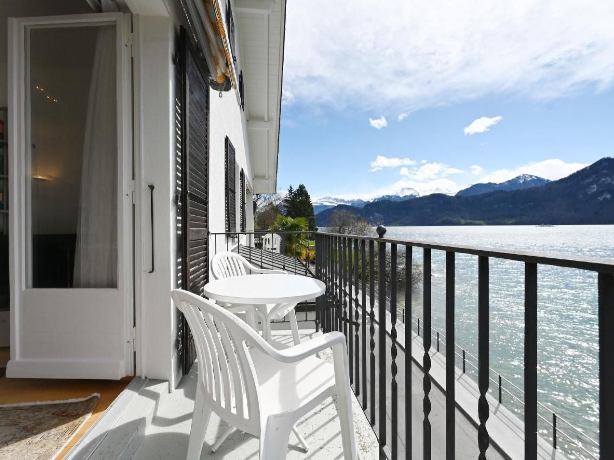 Haus Stirnemann, an ruhiger Lage am See, mit prächtiger Aussicht auf See und Berge. 2-Zimmer-Nichtraucher-Ferienwohnung, Grundfläche zirka 40 m2, mit Balkon. Die Wohnung ist mit 4 Sternen klassifiziert. Die Wohnung umfasst 1 Schlafzimmer mit 1 Bett für 2 Personen mit 2 Matrazen, grosser Einbauschrank. Wohnzimmer mit Esstisch, 4 Stühle, 2 Fauteuils, Wohnwand, Radio, Farb-Kabel-TV, Internet. Vor dem Wohnzimmer Balkon. WC und Dusche. Elektrische Küche mit 4-Platten Ceran-Kochfeld, Backofen, Geschirrspüler, Kühlschrank mit Tiefkühlabteil, Kaffeefiltermaschine. Alles komplett eingerichtet. Die Wohnung liegt auf der zweiten Etage. Für unsere Gäste steht ein reservierter privater Parkplatz zur Verfügung. Am Seeufer steht für unsere Gästeeine private Liegewiese mit Gartenmöbeln und Gartencheminé bereit. Sonstige Sport- und Freizeitmöglichkeiten: Wandern, Spaziergänge, Ausflüge auf See und Berge, Museen, Passfahrten, Kurkonzert u.s.w. Ausflugsmöglichkeiten: Ausflüge mit dem Schiff, viele Berge (Bergbahnen), Naturgebiete, Stadt Luzern, Passfahrten u.s.w. Sonstige Wohnzimmerausstattung (Wohnzimmer1): Esstisch mit 4 Stühlen, Wohnwand, 2 Fauteuils, Radio, Farb-Kabel-TV. Balkon. Sonstige Schlafzimmereinrichtung (Schlafzimmer1): 4-türiger Einbauschrank Sportmöglichkeiten in der Umgebung: Angeln, Radtouren, Ski (alpin), Tennis Basisinformationen - Erlaubte Haustiere: keins - Etage, auf der sich das Objekt befindet: OG2 - letzte umfassende Renovierung: 2010 - Nichtraucherunterkunft - Schlafzimmeranzahl: 1 - Badezimmeranzahl: 1 Top Merkmale - WLAN - Klimaanlage: keine - Heizung: teilweise - Balkon - Private PKW-Stellplätze insgesamt für diese Unterkunft: 1 - ㄴ davon private Außenstellplätze: 1 Schlafen im Wohnbereich - Schlafzimmer abdunkelbar Schlafzimmer 1 - Doppelbett (1,80m Breite) - Schlafzimmer abdunkelbar Badezimmer Badezimmer 1 - Dusche - Waschbecken - Toilette - Tageslicht Gäste-WC - Toilette Kochen/Wohnen - Kaffeemaschine: Kaffeemaschine - Kühl-/Gefrierschrank: Gefrierfach, Kühlschrank - Herd: Elektroherd, Herd - Dunstabzugshaube - Backofen - Toaster - Spülmaschine - Größe der Küche: -1 m² - Anzahl Wohnzimmer: 1 Entertainment - Fernseher: TV - Radio Hauswirtschaft - Staubsauger Außenbereich - Outdoormöbel - Grill: Grill Umgebung - nächstgelegene Ortsmitte: 20,0 km - Lebensmittelhandel: 1,5 km - Cafés/Restaurants: 1,0 km - Bahnhof: 7,0 km - Flughafen: 60,0 km - Autobahn: 8,0 km - See: 10 m - Bootsverleih - Fahrrad-Verleih: 1 m Besonderheiten - Anglerfreundlich - Inmitten der Natur gelegen