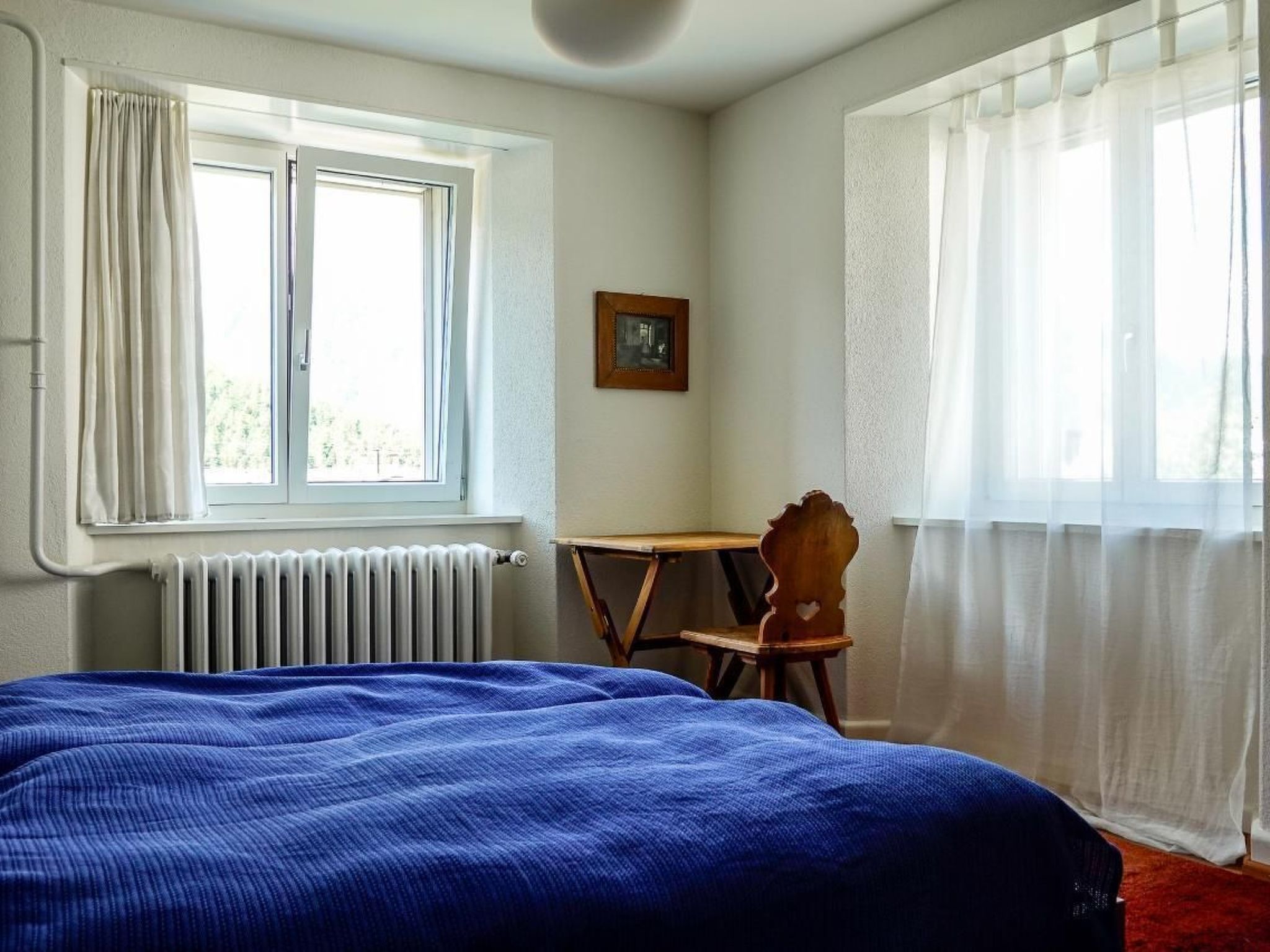 Herzlich willkommen in unserer geräumigen und hellen Ferienwohnung im Herzen des Engadins! Unsere heimelig eingerichtete 4-Zimmerwohnung von 88 m² mit traditioneller Arven-Stube verspricht ein tolles Ferienerlebnis für Familien mit Kindern. Renoviert im Jahr 2011 und mit einer neuen Küche aus dem Jahr 2020, bietet diese südlich ausgerichtete Unterkunft alles, was Sie für einen gemütlichen Aufenthalt benötigen – und das alles in ruhiger Lage, nur fünf Gehminuten vom Dorfzentrum und idyllischen Wanderwegen entfernt. Die Innenausstattung lässt keine Wünsche offen: Der Wohnraum ist mit einem bequemen Sofa, Sesseln, Fernseher, Radio, WiFi und einem Regal voller Bücher ausgestattet, wobei eine Bring- und Hol-Bibliothek zum Schmökern einlädt. Alle Räume sind durchgehend mit Parkettboden versehen. Die geräumige und gut ausgestattete Küche lädt zu gemeinsamen Kocherlebnissen ein. Zum Ruhen stehen Ihnen ein Schlafzimmer mit Doppelbett, ein weiteres mit zwei Einzelbetten und ein Schlafzimmer mit einem zu zwei Betten ausziehbaren Einzelbett zur Verfügung. Das Badezimmer bietet eine Kombination aus Badewanne und Dusche für entspannende Augenblicke. Der Außenbereich der Wohnung bietet praktische Annehmlichkeiten wie die Mitbenutzung der Waschmaschine und des Tumblers im Keller nach Absprache, einen Skiraum und einen Raum für Fahrräder im Haus sowie einen überdachten Veloständer im Garten. Ein Parkplatz steht für Gäste bereit, und die Nichtraucherwohnung ist auch im Sinne einer Allergiker-Freundlichkeit haustierfrei gehalten. Pontresina, der feine Genuss der Hochalpen, umgibt unsere Ferienwohnung mit alter Engadiner Architektur und eleganten Hotelbauten aus der Belle Epoque. Eingebettet in eine atemberaubende Kulisse majestätischer Bergspitzen, darunter der höchste Gipfel der Ostalpen, der Piz Bernina, ist der sonnige, windgeschützte Höhenkurort der perfekte Ausgangspunkt für Wanderer, Kletterer und Kulturliebhaber. Erleben Sie die Kontraste der Natur auf den ausgedehnten Winterwanderwegen, genießen Sie Kutschenfahrten ins malerische Val Roseg oder Val Fex und erkunden Sie die unendlichen Skiläufe und die größte Steinwildkolonie der Schweiz im Sommer. Egal, ob Sie die atemberaubenden Berge mit ihren zahlreichen Wanderwegen erkunden, auf den anspruchsvollen Mountainbike-Trails Ihr Können unter Beweis stellen oder einfach nur in der inspirierenden Landschaft entspannen möchten - unsere Ferienwohnung im Engadin ist der ideale Ausgangspunkt für Ihr nächstes Abenteuer. Machen Sie sich bereit für einen Aufenthalt, der Sie mit unvergesslichen Erinnerungen und dem Wunsch, wiederzukommen, erfüllen wird. Basisinformationen - Erlaubte Haustiere: keins - Unterkunftstyp: Ferienwohnung - befindet sich in: nichts zutreffend - Etage, auf der sich das Objekt befindet: OG1 - Gesamtanzahl d. Stockwerke im Gebäude über EG: 2 - letzte umfassende Renovierung: 2020 - Nichtraucherunterkunft - Schlafzimmeranzahl: 3 - Badezimmeranzahl: 1 Top Merkmale - WLAN - Klimaanlage: keine - Heizung: überall - Fußbodenheizung: keine - Garten: zur gemeinschaftlichen Nutzung - komplett eingefriedet (mit Mauer, Zaun oder Hecke) - Private PKW-Stellplätze insgesamt für diese Unterkunft: 1 - ㄴ davon private Außenstellplätze: 1 Schlafen im Wohnbereich - Schlafzimmer abdunkelbar Schlafzimmer 1 - Doppelbett (von 1,51 m bis 1,79 m Breite) - Schlafzimmer abdunkelbar Schlafzimmer 3 - Doppelbett (von 1,51 m bis 1,79 m Breite) - Einzelbett - Schlafzimmer abdunkelbar Schlafzimmer 5 - 2x Einzelbett - Schlafzimmer abdunkelbar Badezimmer Badezimmer 1 - Badewanne mit Duschvorrichtung - Badewanne - Waschbecken - Toilette - Föhn - Tageslicht Kochen/Wohnen - Kaffeemaschine: Espressokanne, Kaffeemaschine - Kühl-/Gefrierschrank: Gefrierfach, Kühlschrank - Herd: Drei-Platten-Herd, Herd - Dunstabzugshaube - Backofen - Toaster - Wasserkocher - Spülmaschine - Größe der Küche: 11 m² - Anzahl Esstische: 1 - Gesamtzahl Sitzplätze: 6 - Anzahl Wohnzimmer: 1 Entertainment - Fernseher: TV - Radio Für Kinder - Kinderstuhl - Gesellschaftsspiele für Kinder Hauswirtschaft - Wäscheständer - Staubsauger - Reinigungsprodukte Nachhaltigkeit - Solarenergie - Wärmepumpe - Hausisolierung - Isoliertes Dach - Isolierte Fassade - Energiesparfenster Außenbereich - Outdoormöbel - Fahrradabstellplatz überdacht Umgebung - Aussicht: Berg, Garten, Wald, Wiese, Tal - Lebensmittelhandel: 200 m - Cafés/Restaurants: 100 m - Bahnhof: 1,2 km - Flughafen: 7,0 km - Autobahn: 70,0 km - See: 8,0 km - Fluss: 500 m - Bootsverleih - Spielplatz: 500 m - Öffentliches Schwimmbad: 500 m - Fahrrad-Verleih: 500 m - Wanderweg: 100 m - Ski - Skischule: 400 m - Skilanglauf: 800 m - Skibus: 200 m - Berg-/Seilbahn: 300 m