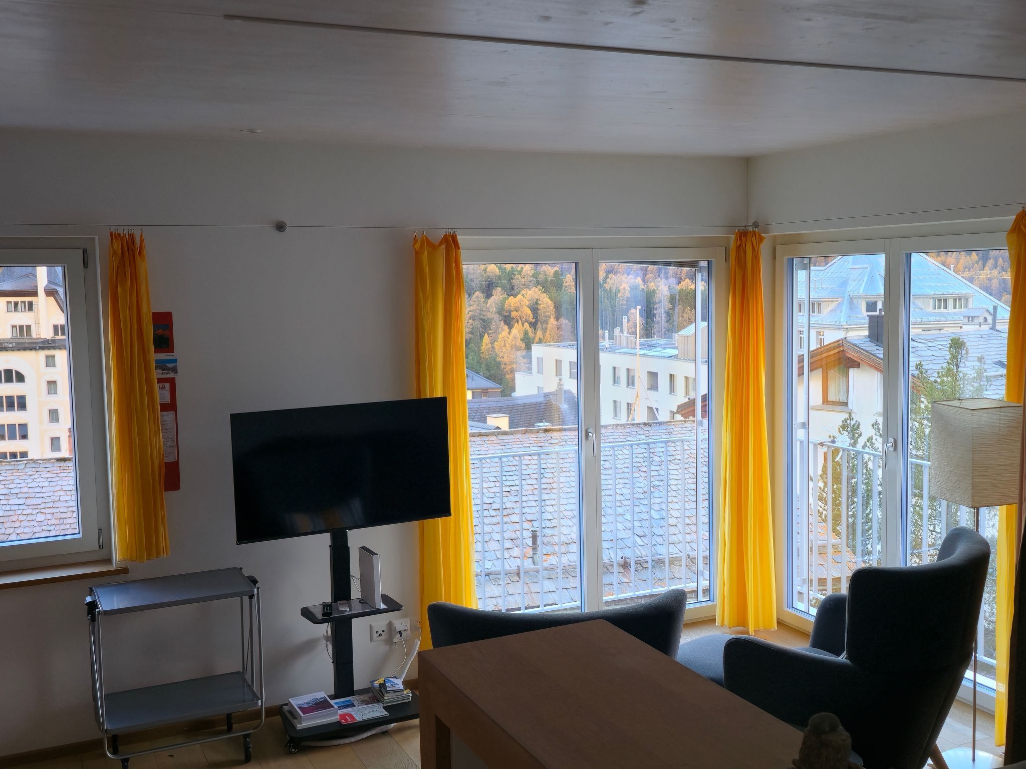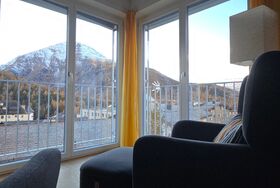 Entdecken Sie dieses charmante, großzügige Studio (44 qm) in Pontresina, das mit seinen großflächigen Fenstern, einem einladenden Ambiente und einer durchdachten Einrichtung begeistert. Die ruhige Lage garantiert nicht nur Erholung pur, sondern auch eine atemberaubende Aussicht nach Süd/Südwest über die Dächer bis hin zu den Gipfeln des Piz Rosatsch, Piz Julier und Corviglia. Zusätzlich können Sie hier spektakuläre Sonnenuntergänge erleben. Im Inneren wartet das Studio mit einem äußerst angenehmen Wohnraum auf, der sich durch ein praktisches Doppelbett (160cm), welches mit einem Vorhang für Privatsphäre abgetrennt werden kann, und bequeme Sessel auszeichnet. Zu den Annehmlichkeiten gehören Fernseh/Radio/WiFi und ein hochwertiger Parkettboden. Die offene Küche ist komplett ausgestattet mit einer Nespressomaschine (die Kapseln sind im lokalen Coop erhältlich), einer Bialetti Kaffeemaschine, einem Toaster, einem Wasserkocher und einem Mixer. Das Badezimmer verfügt über eine Kombination aus Badewanne und Dusche sowie ein Fenster, das Tageslicht hereinlässt. Im Außenbereich genießen Sie nicht nur den privaten Parkplatz und einen geschützten Velounterstand, sondern auch einen einladenden Gartensitzplatz, der zum Entspannen im Freien einlädt. Ein Ski-/Veloraum im Haus bietet zusätzlichen Komfort für sportlich Aktive. Die Umgebung von Pontresina ist perfekt für Naturliebhaber und Sportbegeisterte. Nur 5 Gehminuten vom Studio entfernt finden Sie das Dorfzentrum mit Busstation, Post, Einkaufsmöglichkeiten sowie diverse Läden. Die alpine Landschaft lädt zu Wanderungen und Mountainbiketouren ein, während im Winter die nahegelegenen Skigebiete Corviglia, Corvatsch und Diavolezza zum Skifahren und Snowboarden rufen. Kulturelle Angeboten wie Museumsbesuche oder Galerierundgänge runden das vielfältige Freizeitangebot ab. Lassen Sie sich diese Gelegenheit nicht entgehen, in einem traumhaften Studio inmitten der malerischen Bergwelt von Pontresina zu residieren. Ob Sie die Stille der Natur genießen, aktiv die Landschaft erkunden oder schlichtweg die Seele baumeln lassen möchten – hier finden Sie Ihr perfektes Urlaubszuhause. Basisinformationen - Erlaubte Haustiere: keins - Unterkunftstyp: Ferienwohnung - befindet sich in: nichts zutreffend - Art d. Wohnung: Dachgeschoss - Art d. Gebäudes: Mehrparteienhaus - Etage, auf der sich das Objekt befindet: OG2 - Gesamtanzahl d. Stockwerke im Gebäude über EG: 2 - letzte umfassende Renovierung: 2011 - Nichtraucherunterkunft - Schlafzimmeranzahl: Studio (kein separates Schlafzimmer) - Badezimmeranzahl: 1 Top Merkmale - WLAN - Klimaanlage: keine - Heizung: teilweise - Fußbodenheizung: teilweise - Garten: zur gemeinschaftlichen Nutzung - komplett eingefriedet (mit Mauer, Zaun oder Hecke) - Private PKW-Stellplätze insgesamt für diese Unterkunft: 1 - ㄴ davon private Außenstellplätze: 1 Schlafen im Wohnbereich - Doppelbett (1,80m Breite) - Schlafzimmer abdunkelbar Badezimmer Badezimmer 1 - Badewanne mit Duschvorrichtung - Waschbecken - Toilette - Föhn - Tageslicht Kochen/Wohnen - Kaffeemaschine: Espressokanne, Kaffeemaschine - Kühl-/Gefrierschrank: Gefrierfach, Kühlschrank - Herd: Drei-Platten-Herd, Herd - Dunstabzugshaube - Backofen - Toaster - Mikrowelle - Wasserkocher - Spülmaschine - Anzahl Esstische: 1 - Gesamtzahl Sitzplätze: 4 - Anzahl Wohnzimmer: 1 - Wohnzimmer abdunkelbar Entertainment - Fernseher: TV - DVD-Player - Radio - CD-Player - Gesellschaftsspiele für Erwachsene Hauswirtschaft - Waschmaschine: zur gemeinschaftlichen Nutzung im Gebäude - Wäschetrockner: zur gemeinschaftlichen Nutzung im Gebäude - Wäscheständer - Staubsauger Nachhaltigkeit - Erneuerbare Energien - Solarthermie (Wassererwärmung) - Geothermie - Wärmepumpe - Hausisolierung - Isoliertes Dach - Isolierte Fassade - Isolierte Fußböden - Energiesparfenster Außenbereich - Outdoormöbel Umgebung - Aussicht: Berg, Garten, Wald, Wiese, Tal - nächstgelegene Ortsmitte: 200 m - Lebensmittelhandel: 200 m - Bars/Clubs/Ausgehen: 200 m - Cafés/Restaurants: 100 m - Bahnhof: 1,2 km - Flughafen: 7,0 km - See: 8,0 km - Fluss: 2,0 km - Bootsverleih - Angelplatz: 15,0 km - Spielplatz: 2,0 km - Öffentliches Schwimmbad: 400 m - Golfplatz: 8,0 km - Fahrrad-Verleih: 400 m - Radwanderweg (touristisch): 1,0 km - Wanderweg: 500 m - Reitmöglichkeit: 1,0 km - Ski - Skiabfahrt: 300 m - Skischule: 300 m - Skilanglauf: 800 m - Skibus: 200 m - Berg-/Seilbahn: 300 m Besonderheiten - Inmitten der Natur gelegen