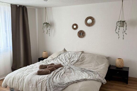 Im gemütlichem Wohnzimmer gibt es einen 4K Smart-TV und WLAn. Unsere moderne und gut ausgestattet Küche mit Induktions Herd, Backofen, Geschirrspühler, Kühlschrank, Gefrierschrank, Raclette Ofen, Fondue Caquelon, Toaster, Wasserkocher und einer Nespresso-Kaffeemaschine mit Milchschäumer ( Pro Person werden Kapseln zur Verfügung gestellt) und ein Soda Stream. Ein grosses Sofa im Wohnzimmer sowie ein Schlafzimmer mit einem Doppelbett (180cm breit), das zweite Schlafzimmer hat ein Etagenbett (90cm breit). Auf Wunsch kann ein Babybett bereitgestellt werden sowie auch ein Kinder Hochstuhl (bitte voranmelden).